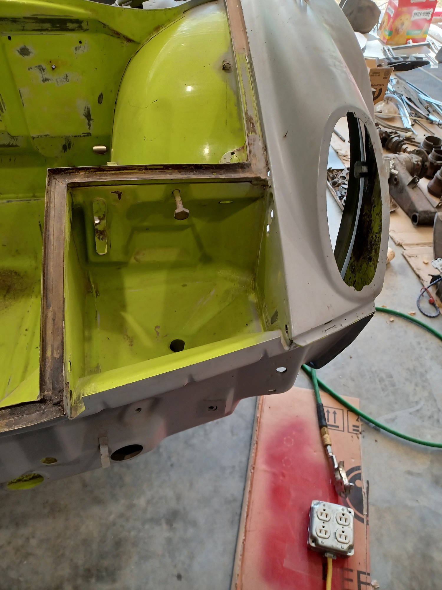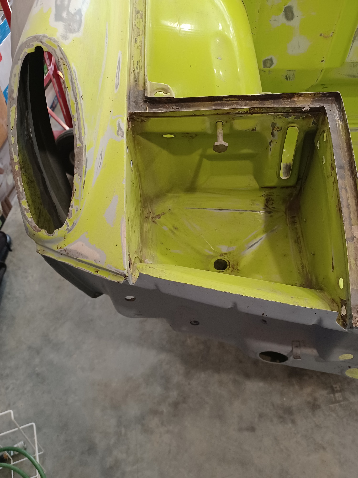 I did not know there were as many 914ers in this area, that is great to know. Would enjoy meeting some of my 914 neighbors in the near future. So as far as plans for the car....As you can see the front wheel arch has already been cut out for the fender flare. While in Colorado I had started those and the two on the other side are partially installed. I had also reconstructed the infamous hell hole. So now I will complete the other two flares and then it will be on to other minor body repairs. The good thing about this car is the longs were rock solid. So most of the work is going to be minor sheetmetal repair. I so want to convert it to a six cylinder, however on my retirement salary that doesnt seem very likely, so will probably just upsize the four to a 2056 and be happy with it. But for now at least the adventure begins.... |