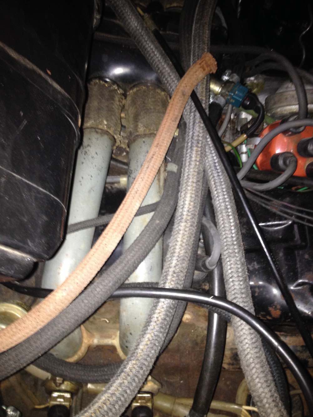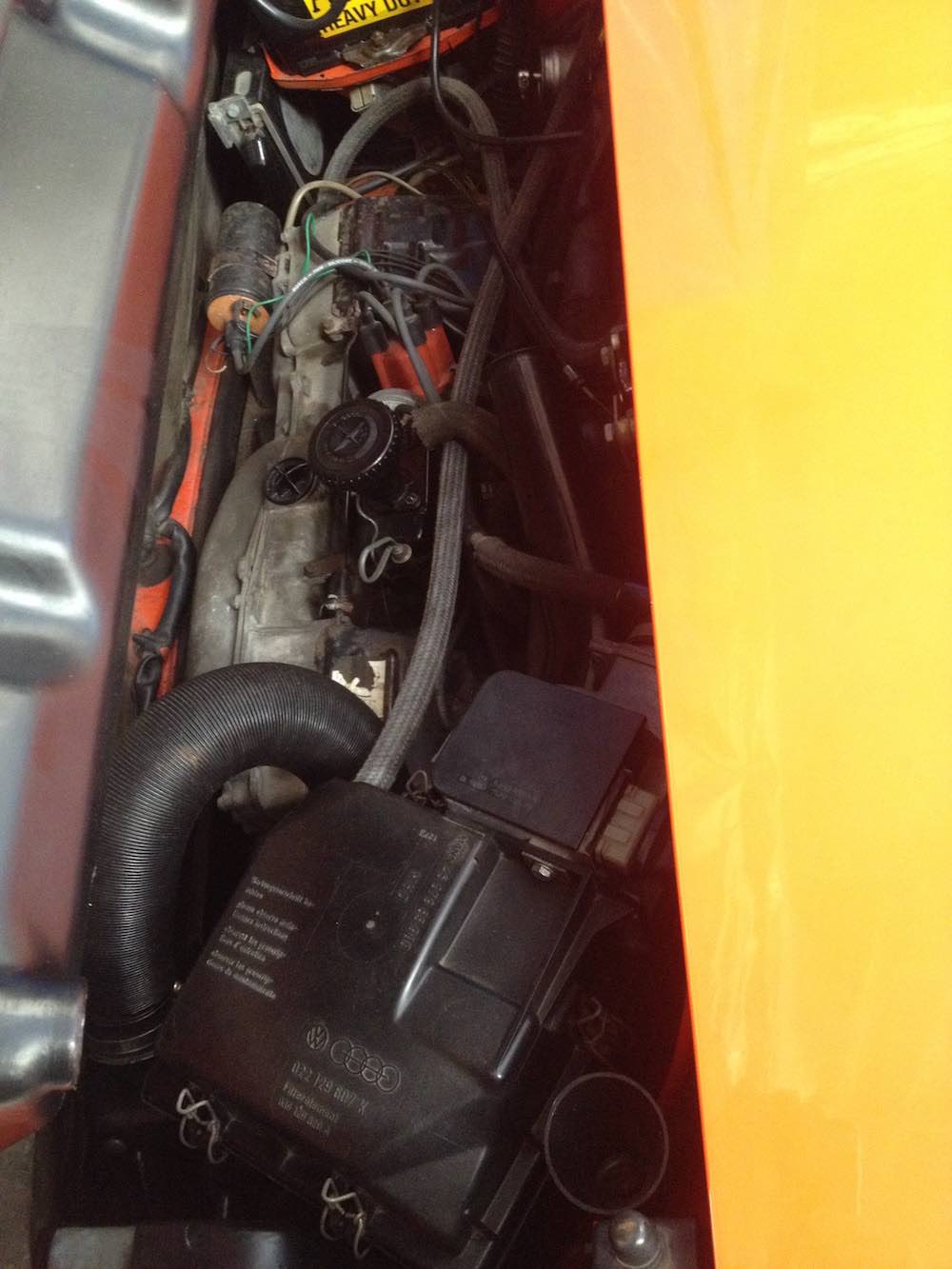another one exactly like wonki and starbear cars. or is it? plumbed up VW way, rather than porsche way? in this car the can appears to be reversed in orientation from wonki car, but the hose layout is the same (with the S curve hose off the fan cowl). so this one is plumbed porsche way? my car is after this one, mine is a late jan build. 914 mysteries continue. found quite a few of these confirming images re plumbing i've found trawling sales of very good condition original cars. this is the first one i have seen where the can is reversed in orientation (see the shape of the end of can). could have been taken out and put back in the other way around - or is evidence of a first installation set up by the factory - more questions. (if you put the can in this way, you would need a longer small hose to join the vapor line to get around to lhs of can. i did not change that hose in my car or alter the can). there are receipts in document files for all the usual work it takes to recommission a car dated 2020. this car sat for a long time somewhere in storage which explains its generally good condition. lots of fuel line work and injectors fuel tank etc done. so can could have come out and gone back in. i've never touched the can in mine. further evidence of 74 1.8 engine bay hose colors. i noticed that one line off the decel valve on my car was a very faded red or brown color. just one hose. along with green vacuum retard hose off the distributor. all other hoses were mid to dark grey color. this car shows clearly. one reddish brown hose off decel. green hose off dist. original hoses from wonki car (bagged after replacement). i left the green hose on the dist. |