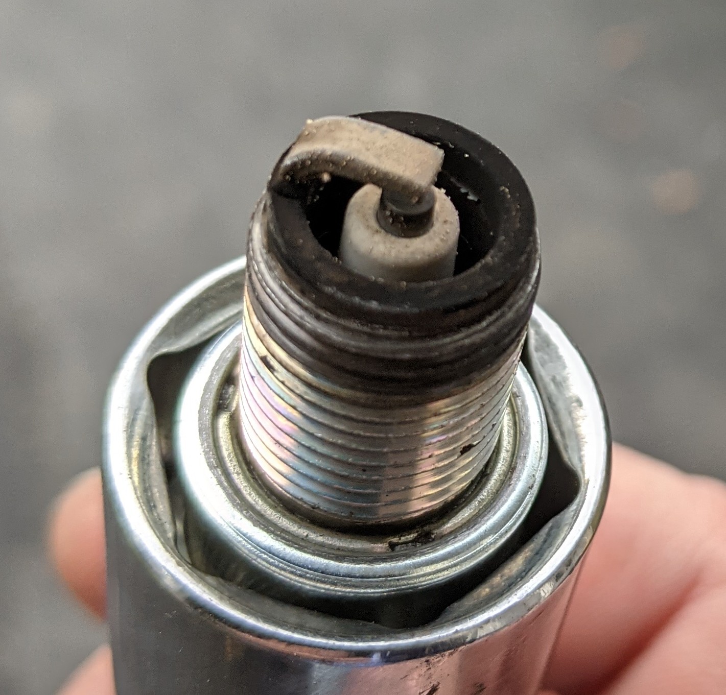 Got partial load in a good range centered around 13 to 13.5. Give it a little and it drops to 12, take of the gas a little it moves up to 14.7 (not sure why it hits it on the mark like that but there you go). I noticed that as I approached what seems to be good partial mixtures, my idle mix was changing and that as I get closer to where it probably should be that adjustment knob on the ECU is getting closer and closer to the factory setting. Still working on the WOT. Started out Lean across the board, backed out the stop screw and got that to around 12 never leaner than maybe 12.5 or 13 but I noticed after my partial load tuning it looks like my WOT is running a little lean again. Need to double check that when I get another chance. Sucks how all these adjustments interrelate. My 123dizzy is running on retard (A) at the moment. I cant stand high idle. Not sure why it bothers me so much, but it does. Luckily I can access the pot without removing the dizzy so it's easy for me to switch back and forth. When I am all done I might give advance a try again. Here is a plug after an hour of mixed driving. Looks pretty nice. |