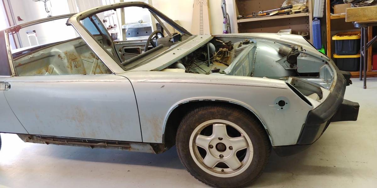 1974 Porsche 914 with title and current registration. $4500 or $4000 without wheels (bring your wheels to roll it out). Car is a roller and does not have interior, engine, transmission, windshield or rear glass. Both doors have glass. Has obligatory under battery tray rust. Please send your phone number if you would like to set a time to see it. Thanks. |