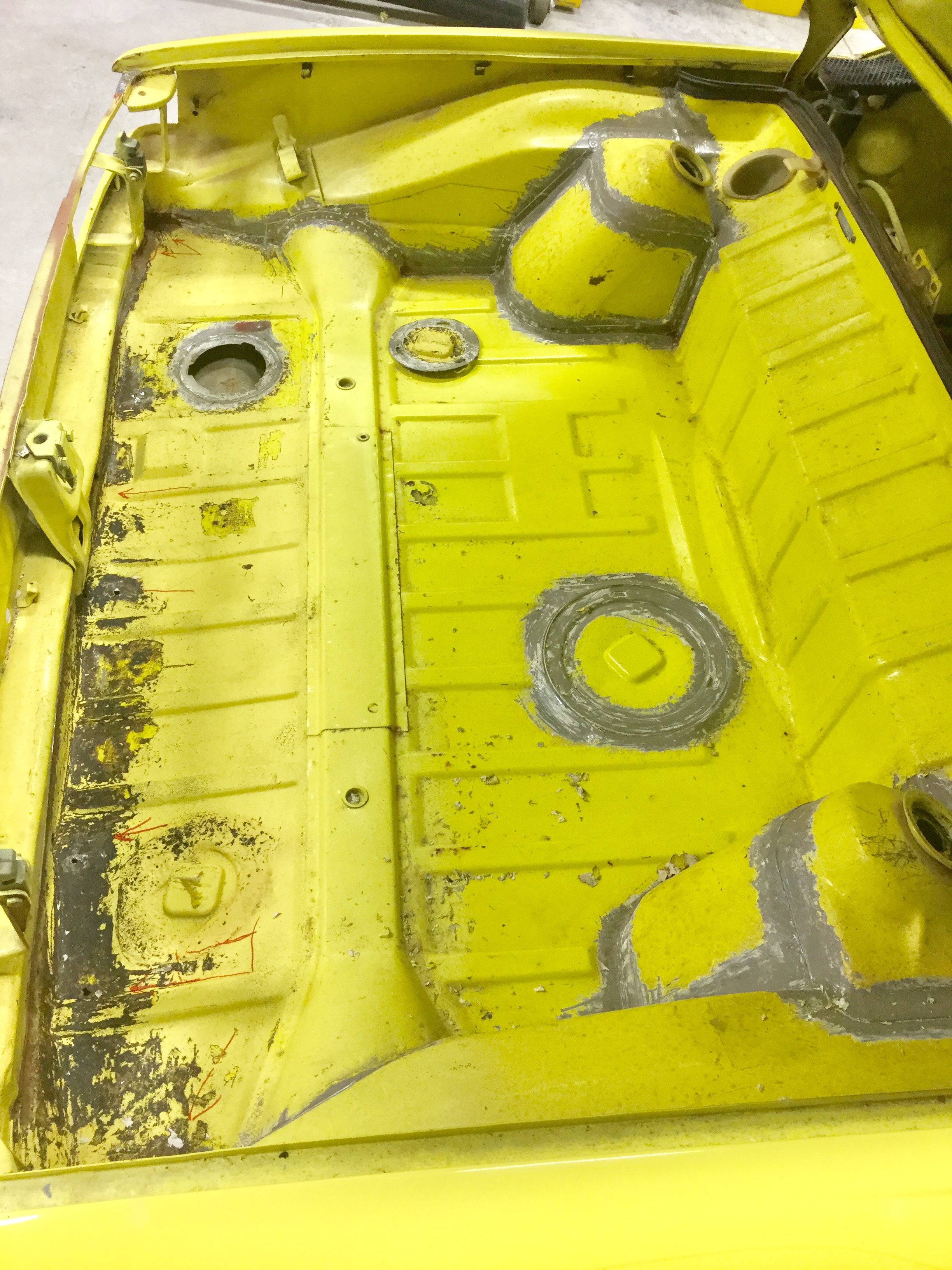I’m finally starting a build/progress page on my 72 914 project. About the car: I’ve owned it for over a decade, and had it set aside as a quick & easy restoration project, because I “fooled” myself into thinking I had a fairly “rust free” example. I work, a lot of hours (self employed) and own multiple project cars, so I didn’t start working on this car until recently. ...once I did “start” on it,,,, I became painfully aware of just how bad the car actually was. The plan, since I ended up stripping the car down to the bare tub, I decided to build my idea/vision of a true sports car..... In my opinion, the 914 is a perfect “canvas” for such a build. Focus will be on: Light weight, handling, simplicity, and fun t o drive. Goal weight is around 1800 pounds, using some carbon deck lids, GT style engine cover, etc. Goal HP around 250 plus, will come from a Subaru 6cyl. About me, My background is as an Indy mercedes mechanic for just over 40 years. I’ve never done rust repair or bodywork myself though, as I’ve always hired out those types of jobs. This little 914 is going to be my “tech school” into metal work as a spare time project. Hopefully I’ll be able to work on it one day per weekend on it and possible make monthly updates. I guess we’ll have to see........... Here she is... when I initially started |
