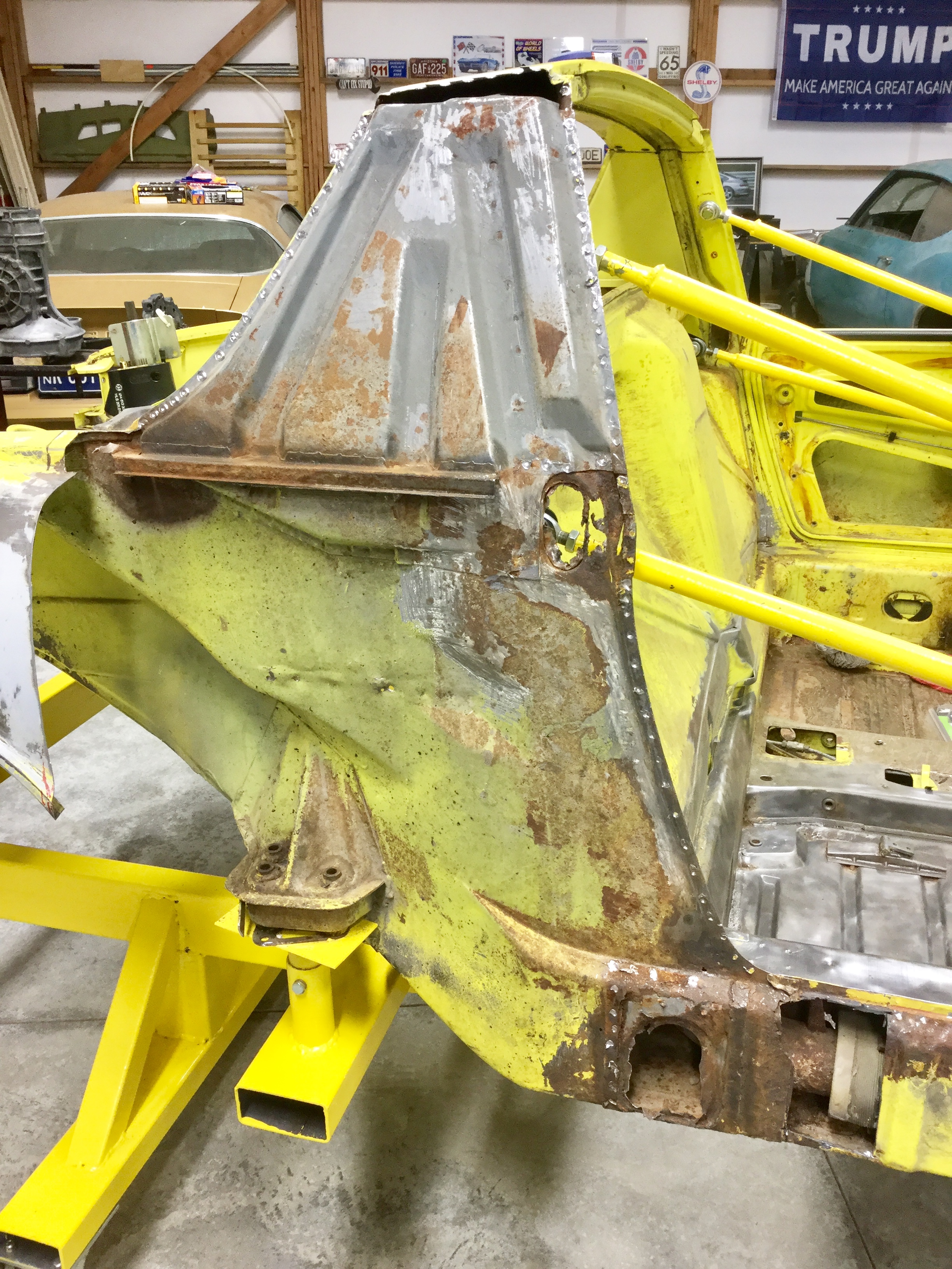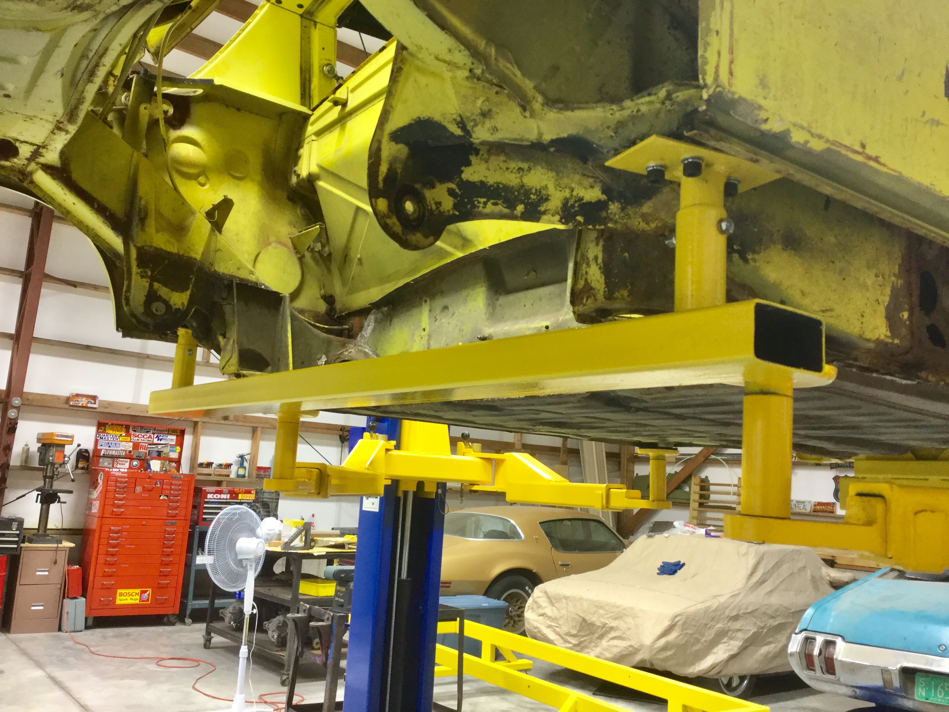 Rear suspension mount. Also added one at the trans mount area and a support under the firewall/floor pan area.