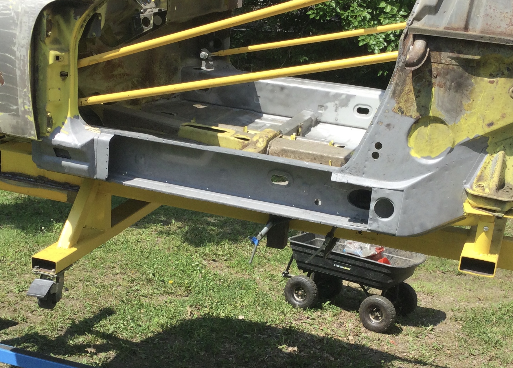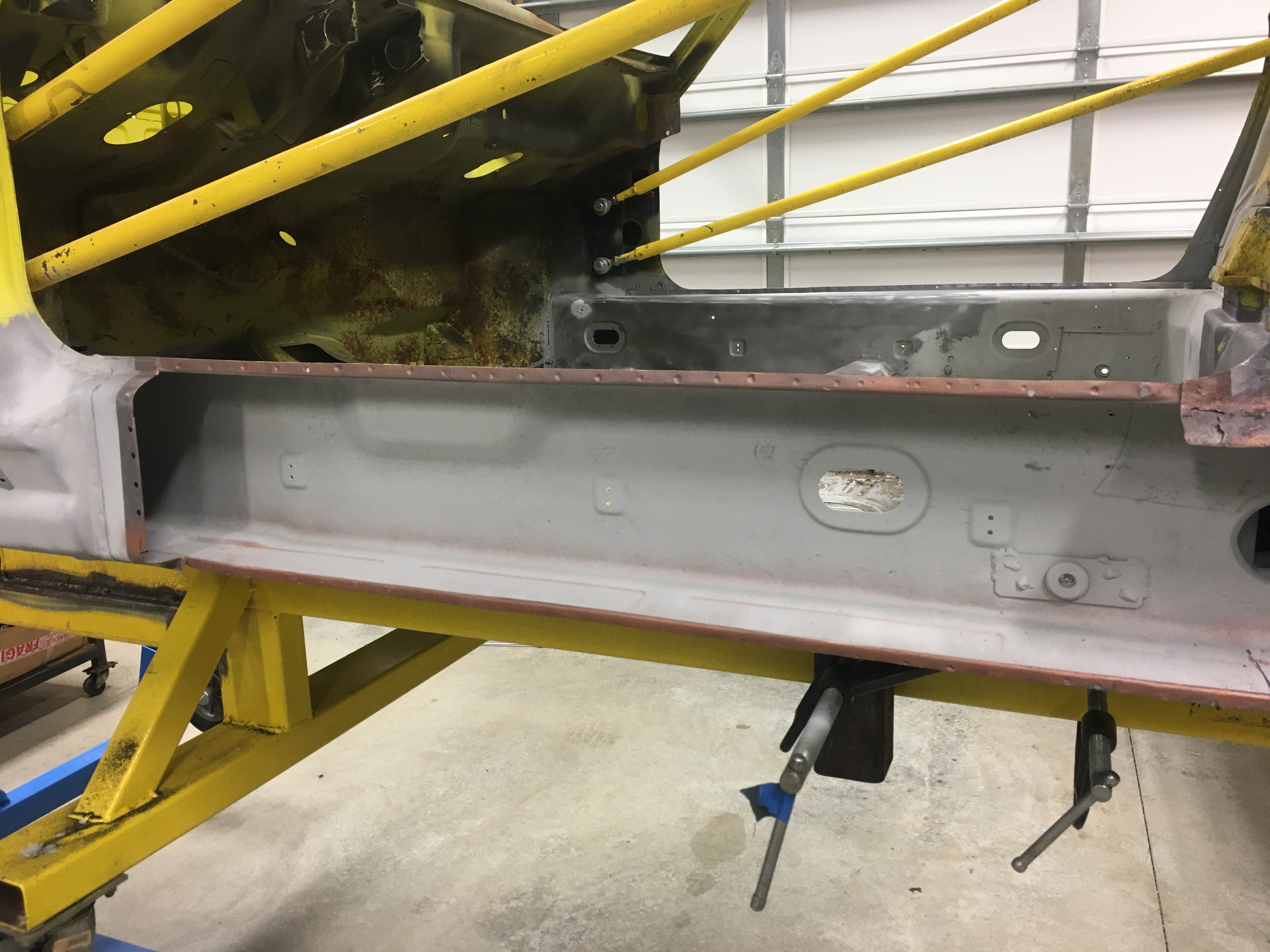 Some may notice that I welded the jack post holes shut. This is because I have decided that I won't ever use the factory jack & want to have smooth outer rocker covers when finished. |