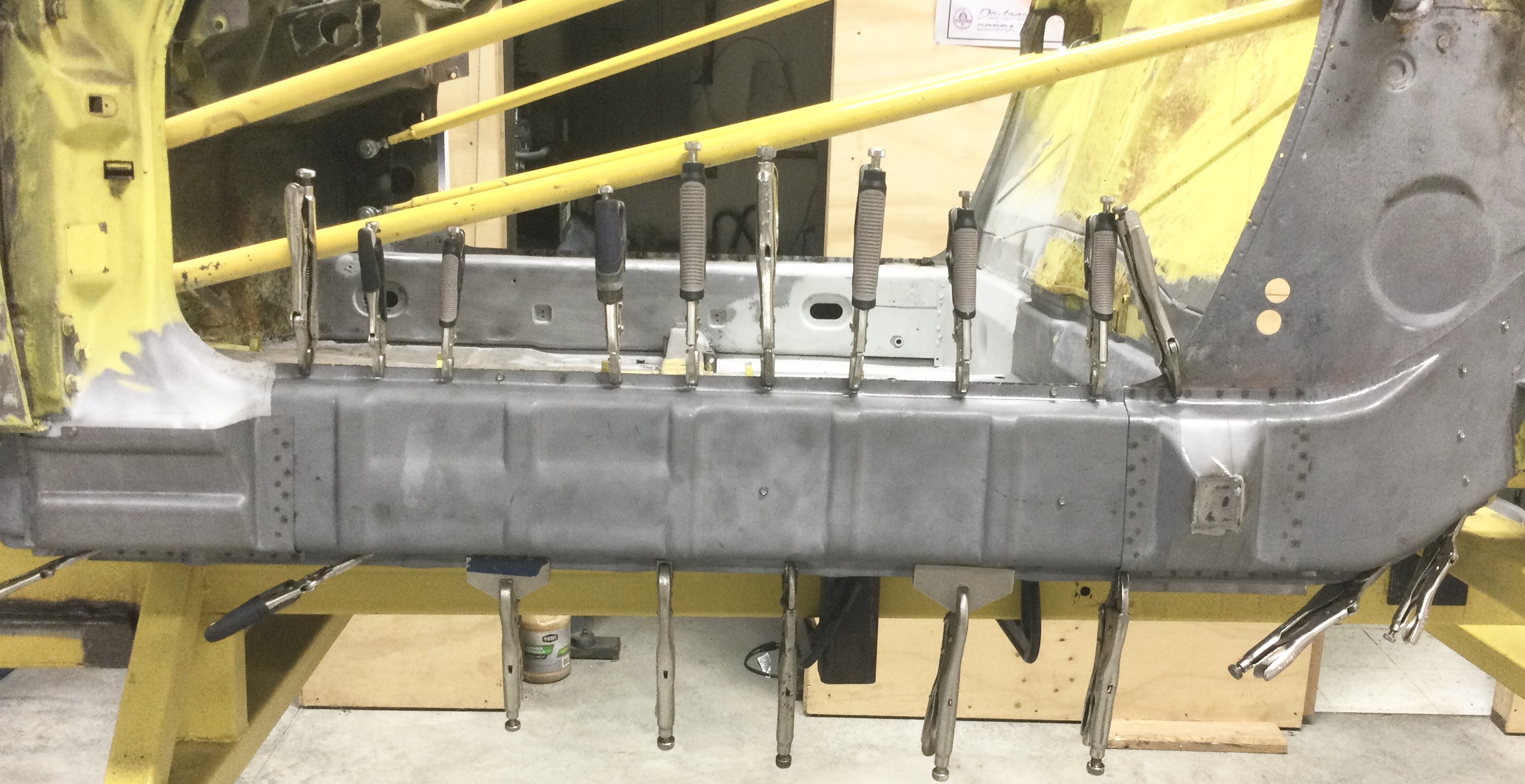after clamping it down with tek screws and every pair of vice grips in my shop, I got about 90% of the welding done. I know some of you have seen these repairs many times, but it seems like every 914 I've ever come across needs this done.