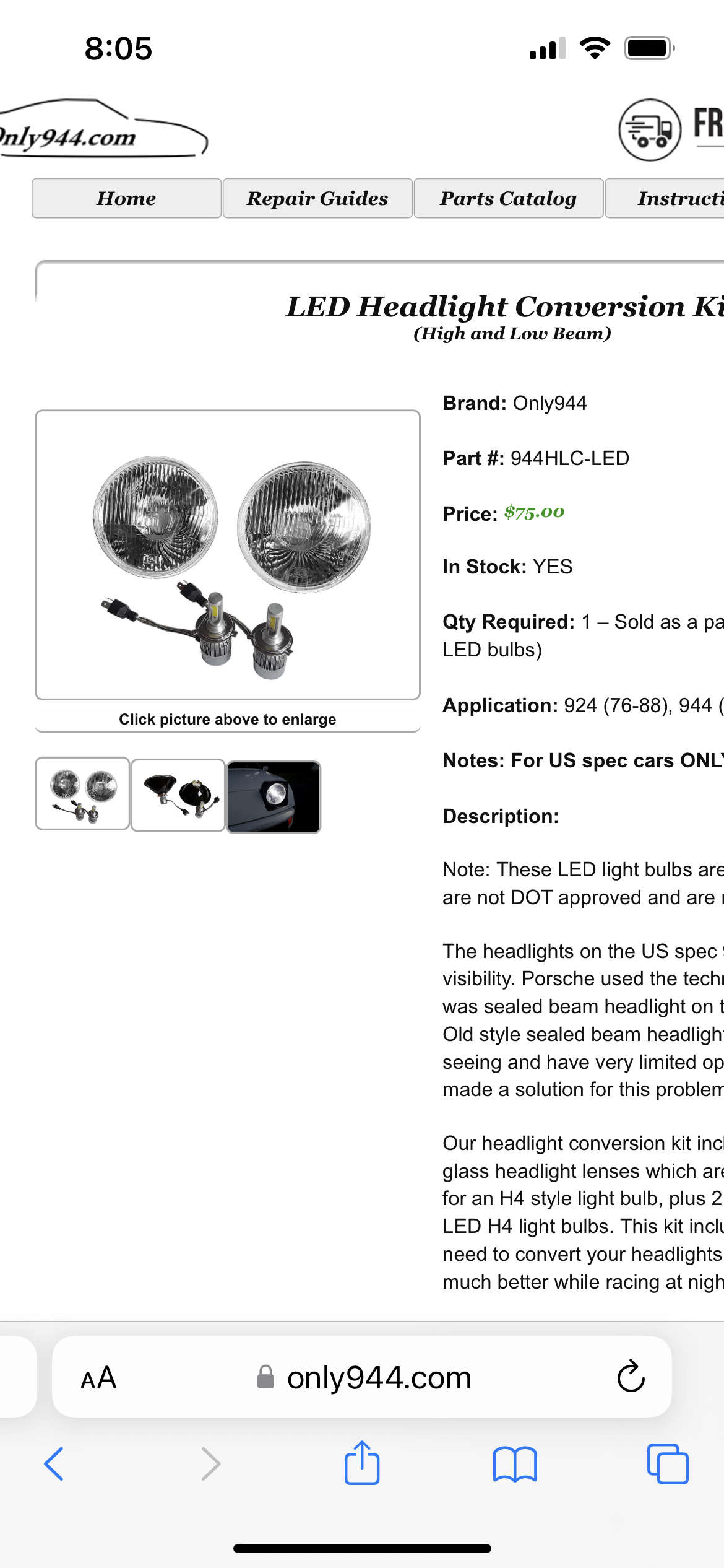 LED's are a huge improvement, I agree on the aesthetic even though they're pop-ups. I had the VintageCarLED's on my /4 ( https://vintagecarleds.com/shop/7-inch/vc3500-classic-kit/ ) I sold and it was a big difference. I put some amazon LED's into the Hella H4's on the /6 and they're pretty good but they have a control box of sorts on the wiring from the bulb to the harness and I've noticed that it sometimes gets caught a little behind the light when they go back down because it's getting pinched back there. I like those Holley's and the fact that the light looks very retro yet has a redesigned lens pattern and the very simple pig tail is pretty compelling. I just ordered some because of this thread, but they're on back order for another month so we'll see when they get here.