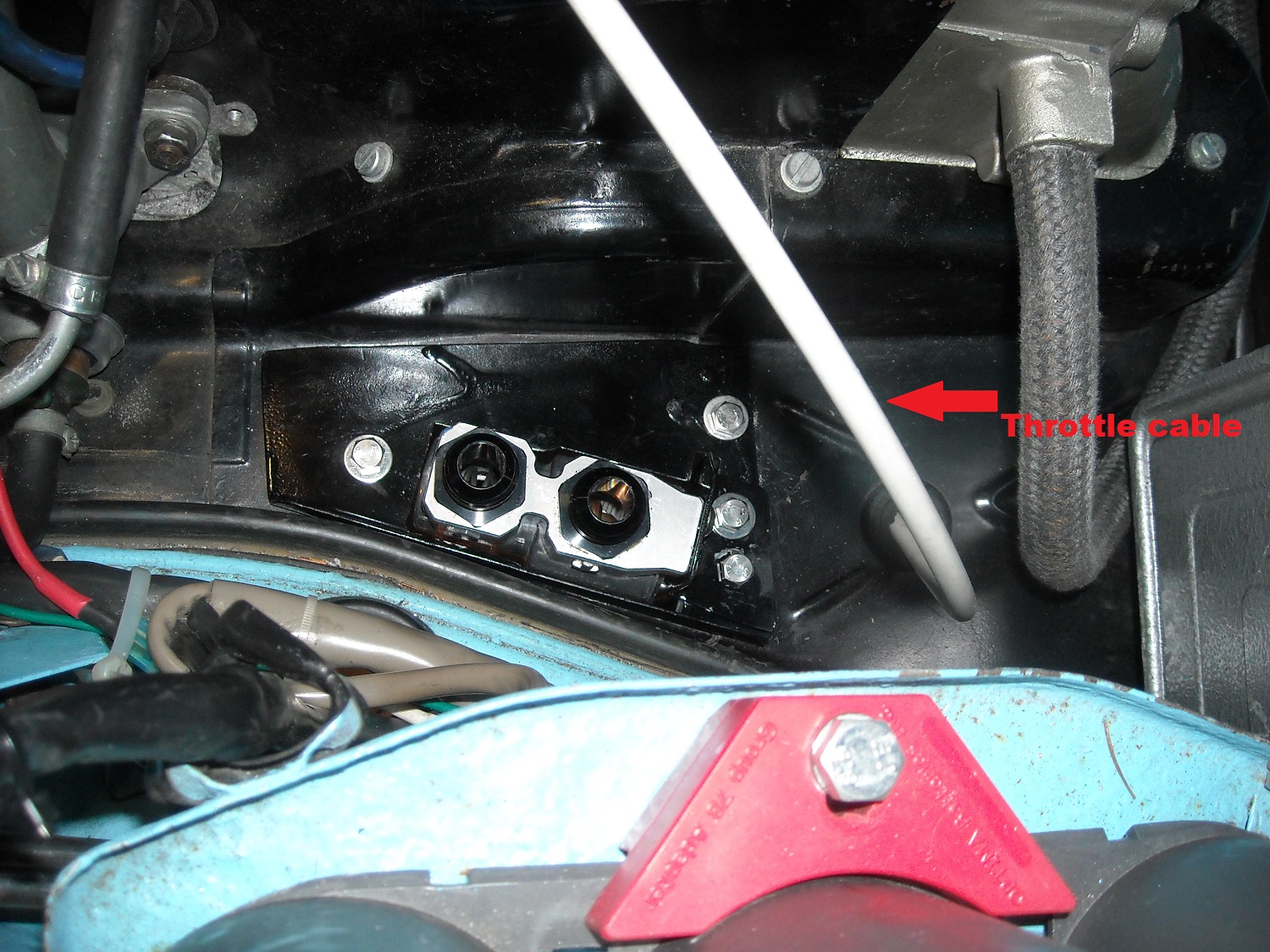 Hi all: As I move through the BB I keep finding things that just don't seem right. This car had AC installed when new and it still in the car. Doesn't work of course but it's staying. It looks like the throttle cable was rerouted and replaced at least once. It should show in the picture that it takes a 90 degree bend straight up and that causes the casing to pop out of the guide tube.