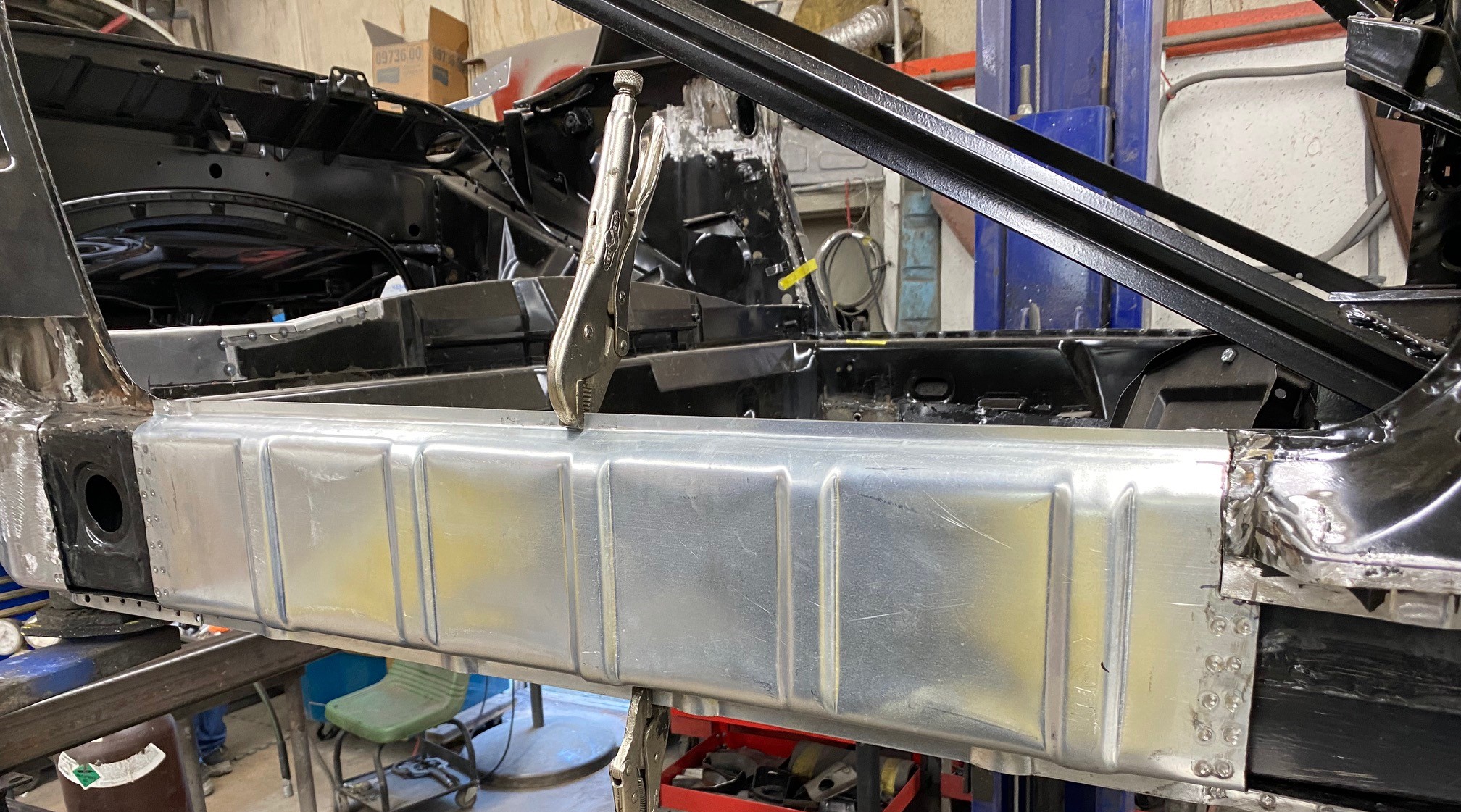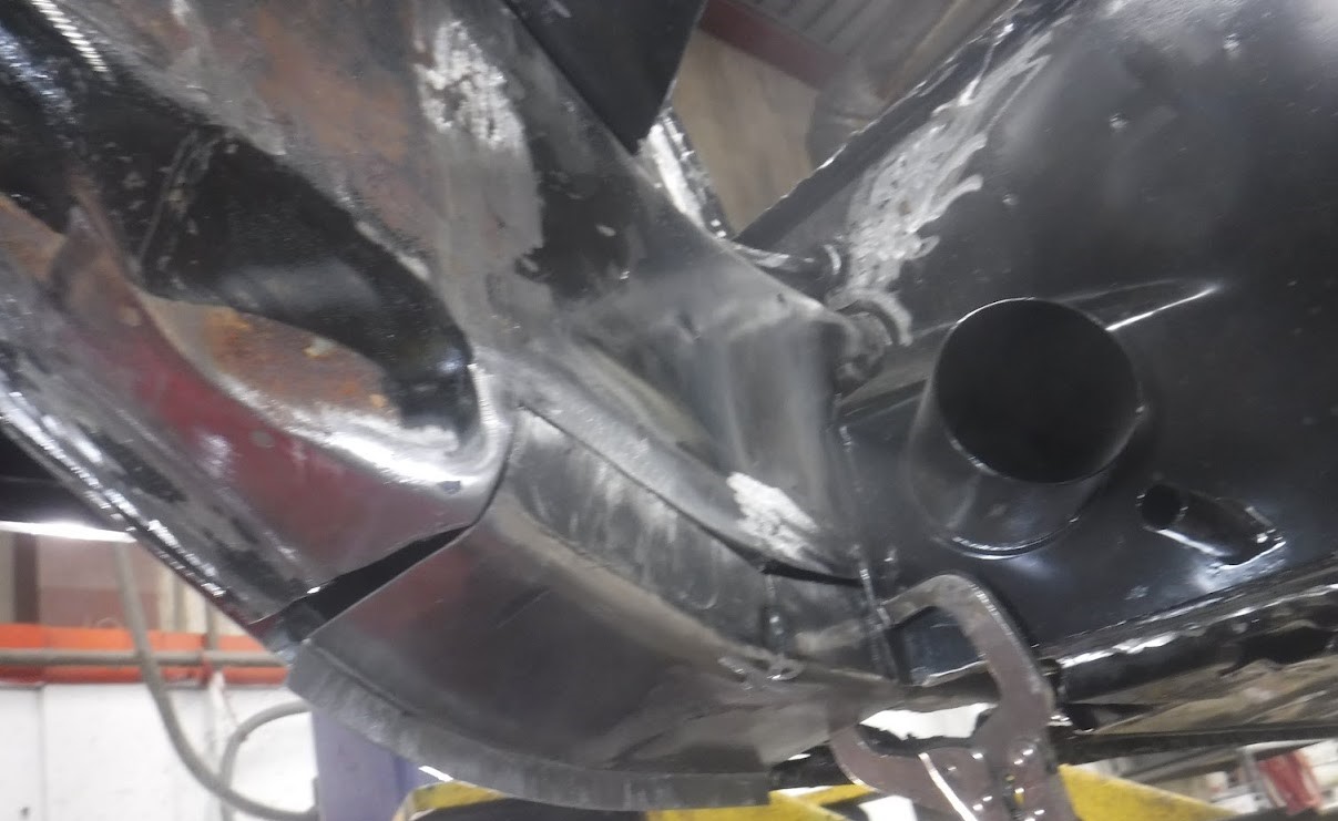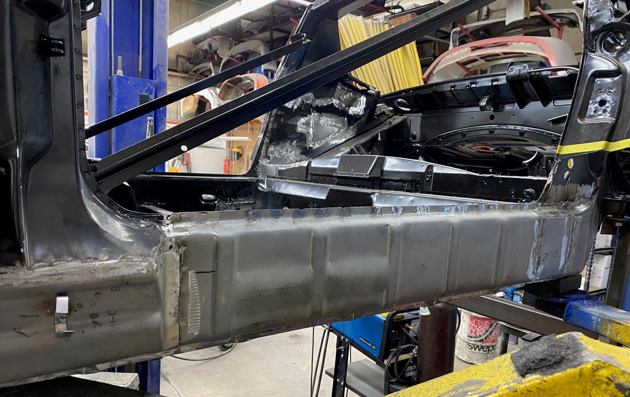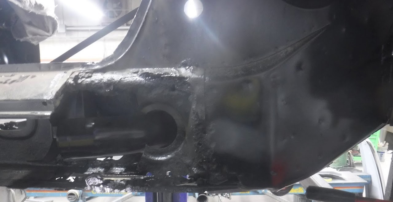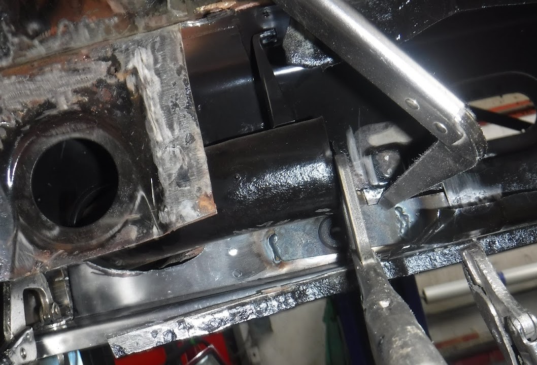 More progress on rust repair at Auto Associates. Engine bay L&R (hell hole) side rust repaired. Heater tubes reinstalled and outer longitudinals being replaced. Interesting note on the acid/e-coat dip. We have found some spots where neither the acid nor the e-coat penetrated. Fortunately, these areas also had only light surface rust.