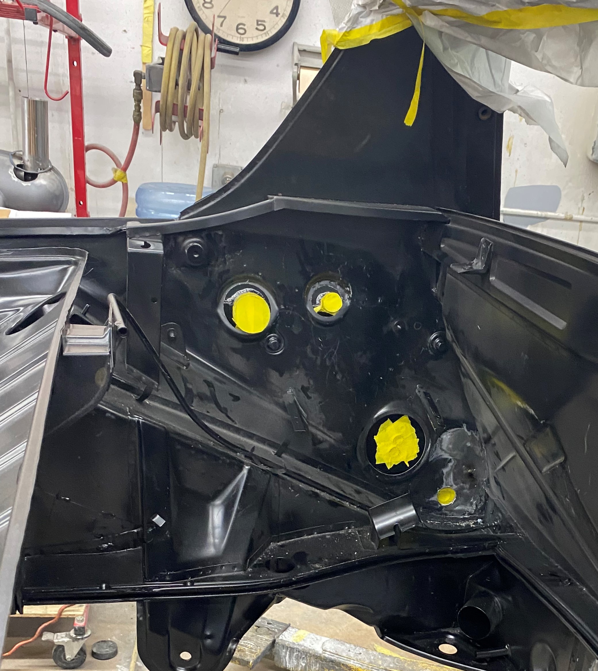 1. GT Roll bar from Tangerine Racing 2. Front cooler ducting 3. -6 Engine mount from Mad Dog 4. Shoulder belt anchors on firewall 5. Engine access panel on firewall 6. Rear suspension pivot point reinforcements 7. Through holes for oil tank & oil cooler lines 8. Front truck mods for Mittlemotor GT headlight cable release system 9. Modify and install 911 steering column 10. Paint bottom side, both trunks and cockpit in Lizard Green The car will then come back to me for partial reassembly including electricals, engine and gearbox, suspension and interior components. Then back to Auto Associates for mounting of the flares and final body and paint. ![]() ![]() |