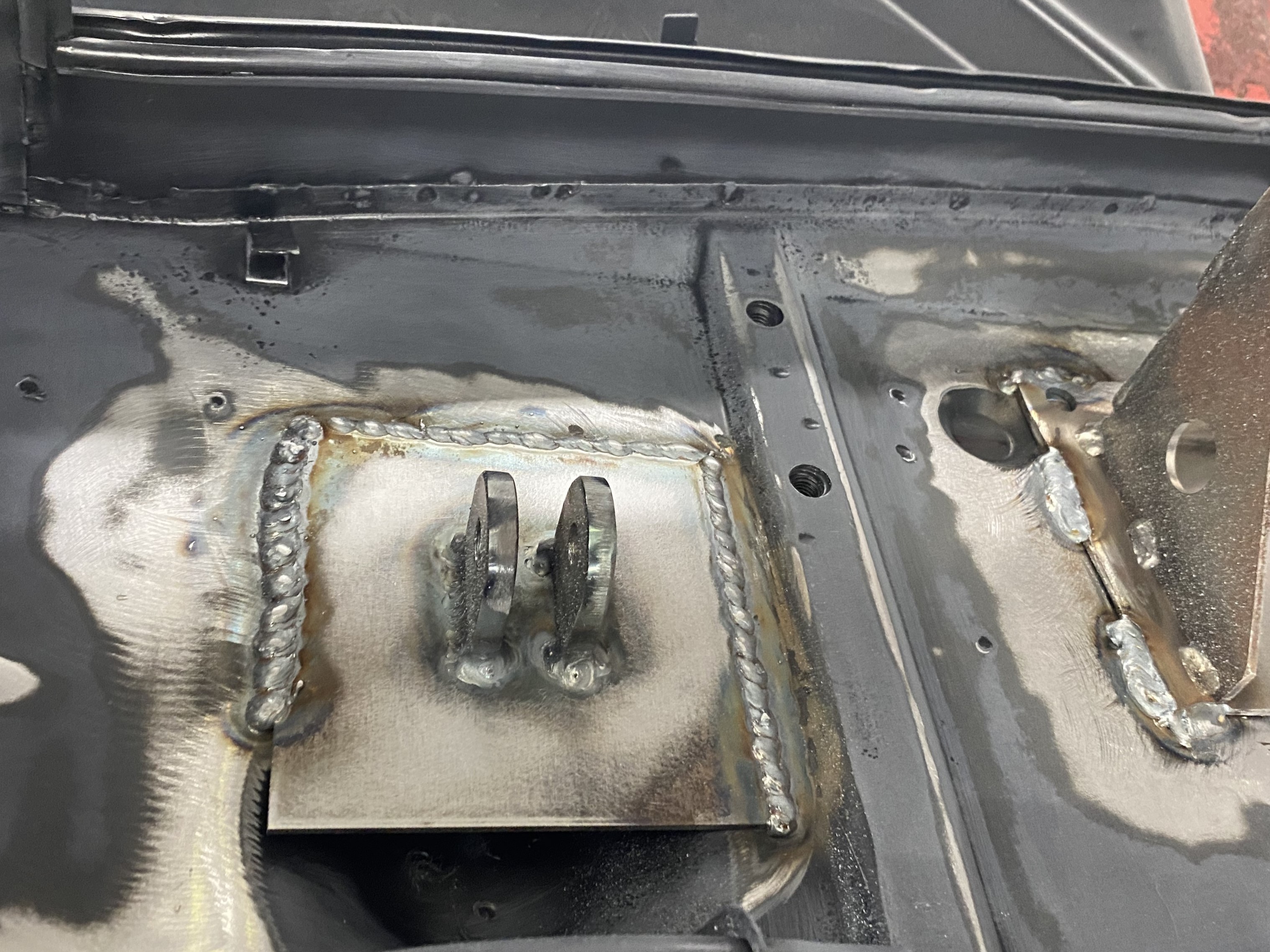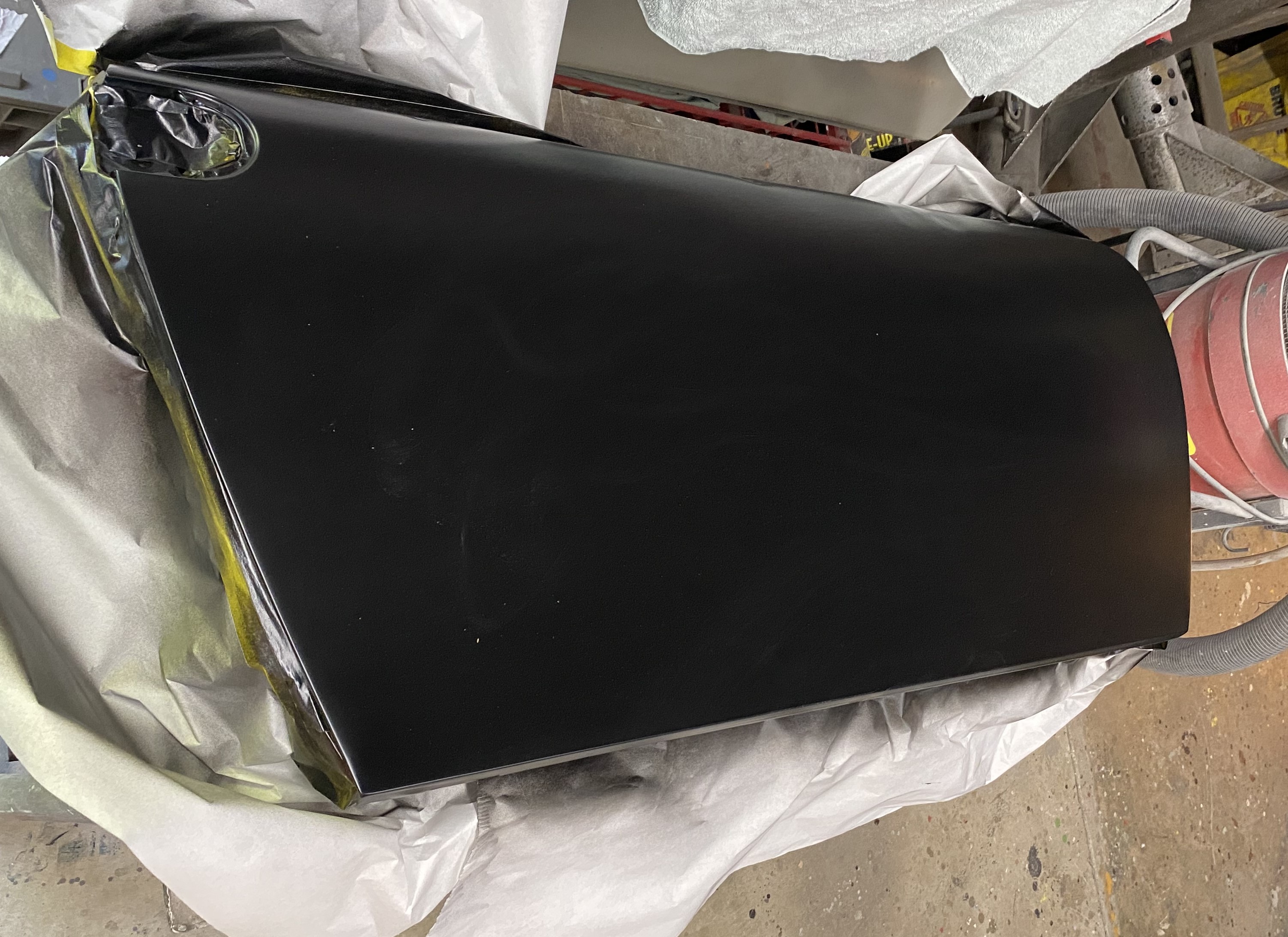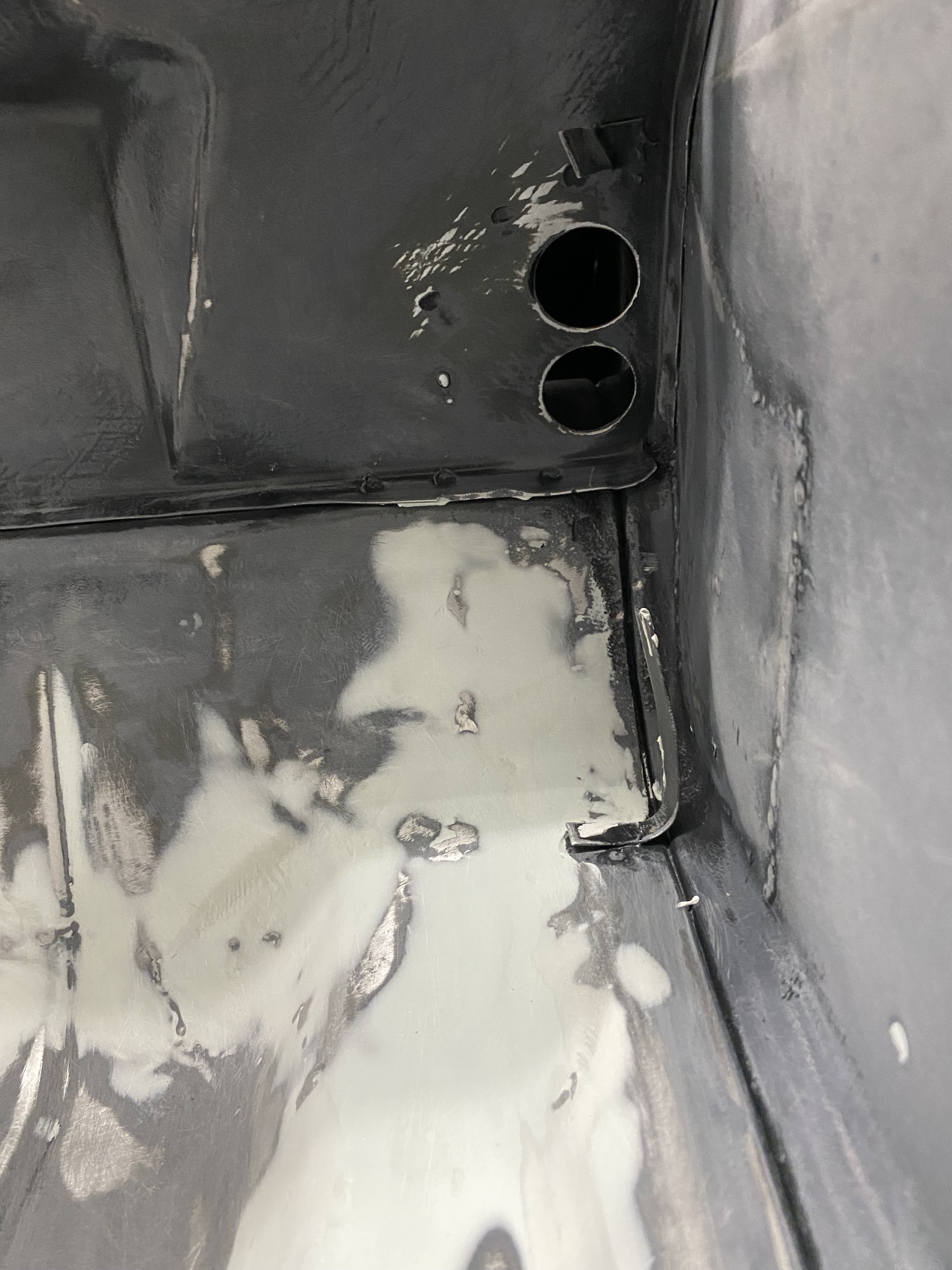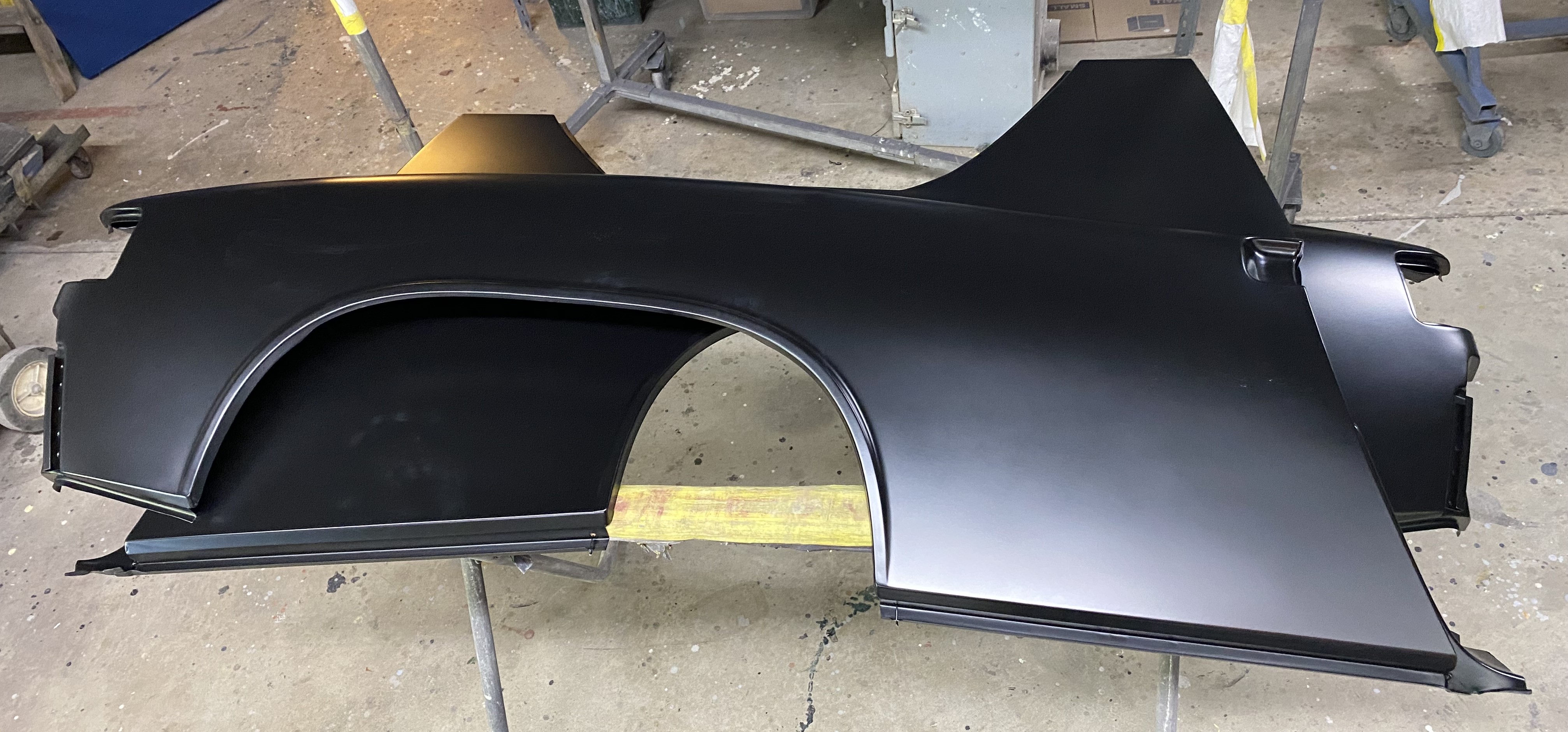 Another trip up to Auto Associates today to check on the project. The chassis is getting some final touch up before another coat of epoxy primer, then light undercoating on the floor bottom and backsides of the inner fender wells. Then the undersides, front trunk, engine compartment and rear trunk will get final paint in Lizard Green. After that, sometime in October, the car will come back to me for mechanical and electrical assembly including the engine build and installation. The plan is to get the car in running condition before it goes back to Auto Associates for final body work and paint including the installation of the GT flares, both trunk lids and doors. This will ensure the flares are properly aligned with the wheels & tires and the door gaps are set perfectly.
