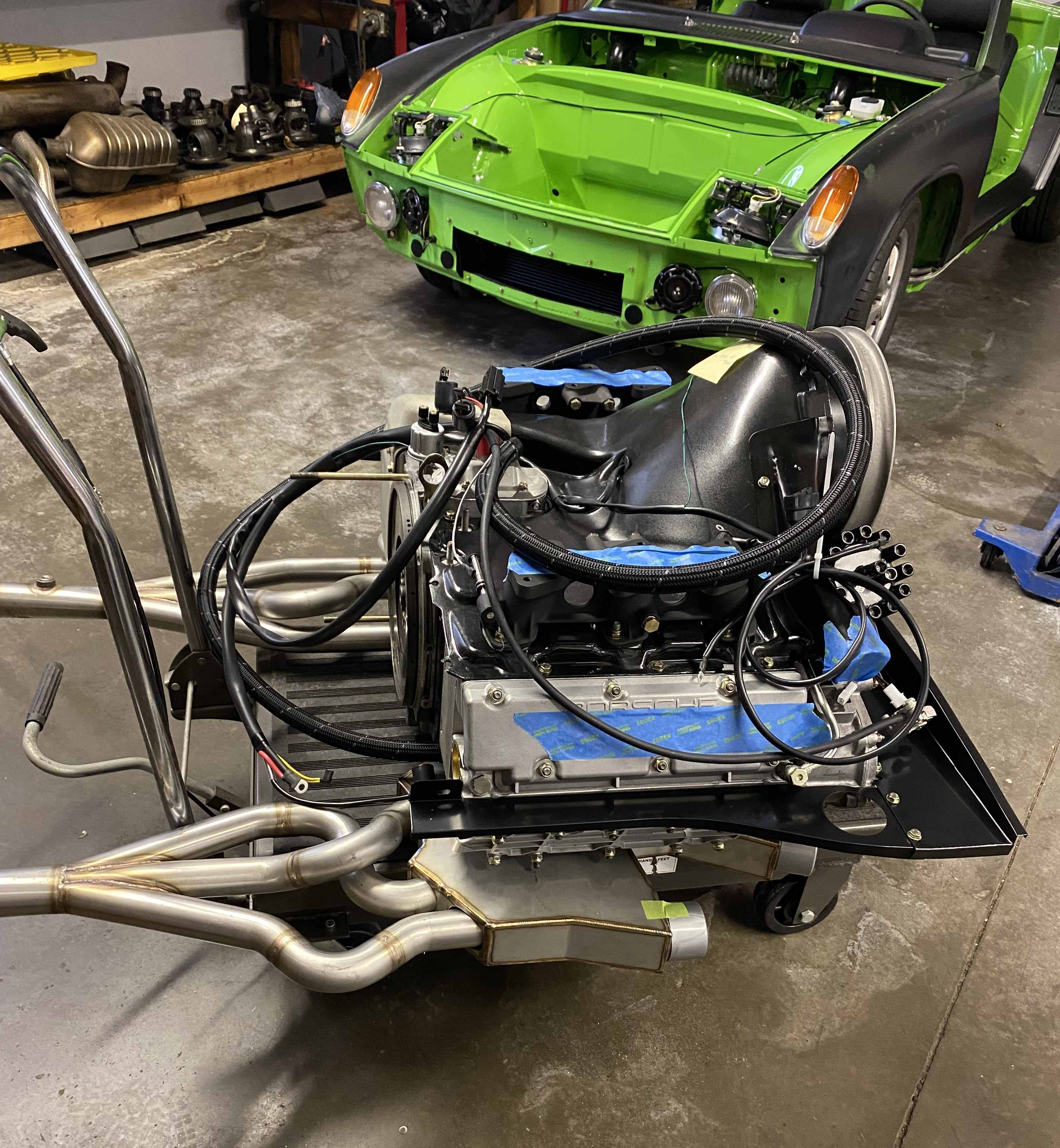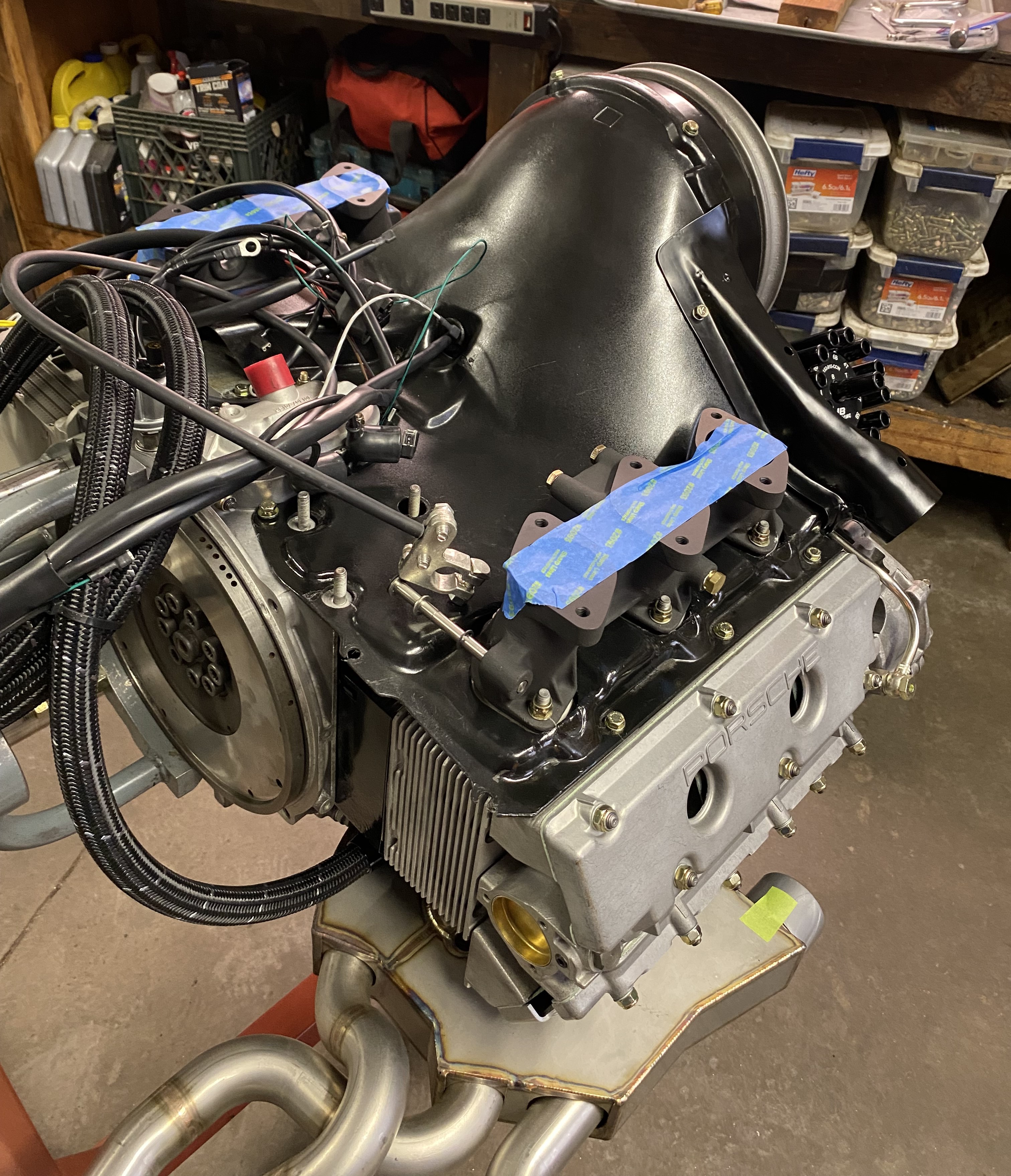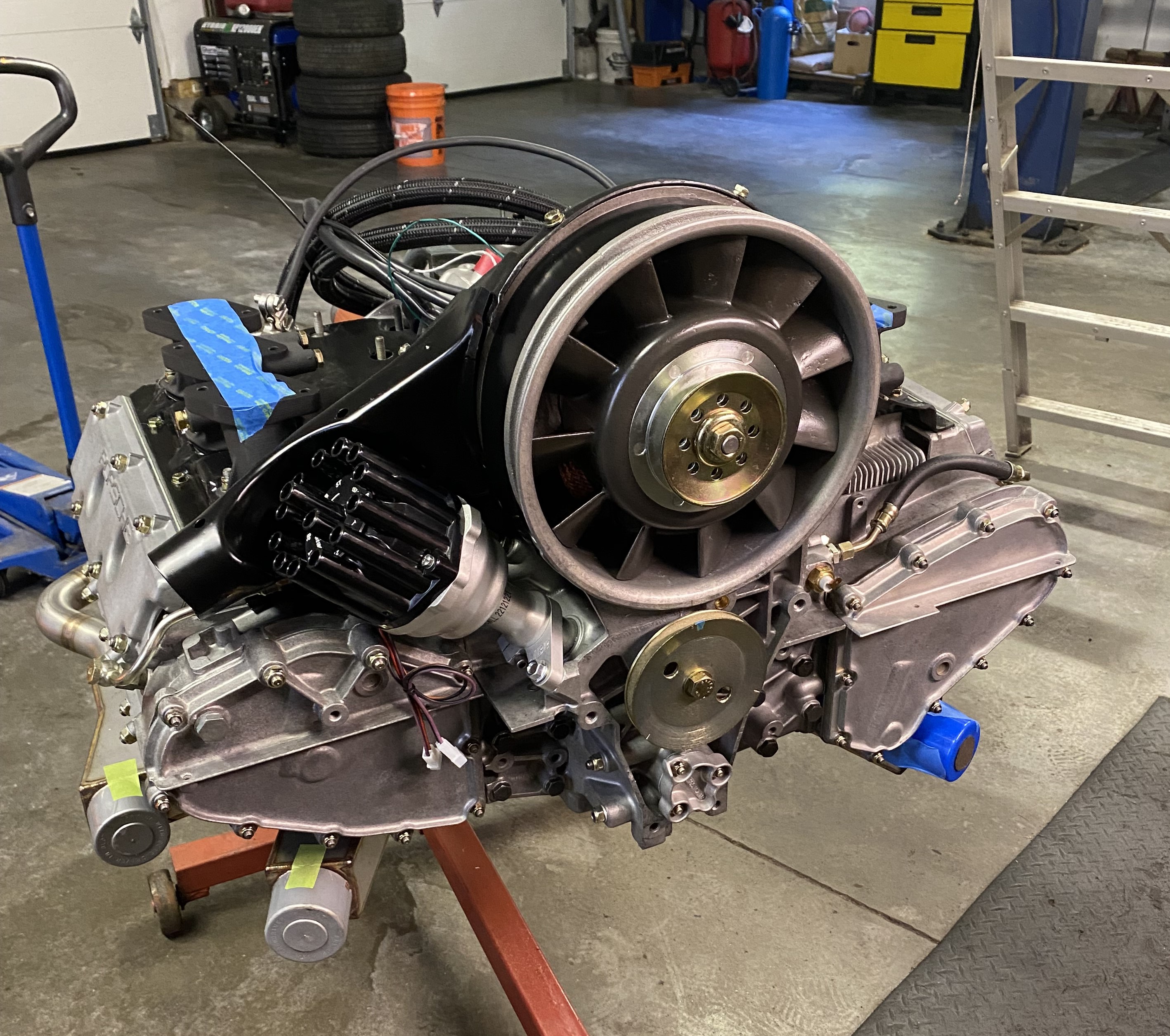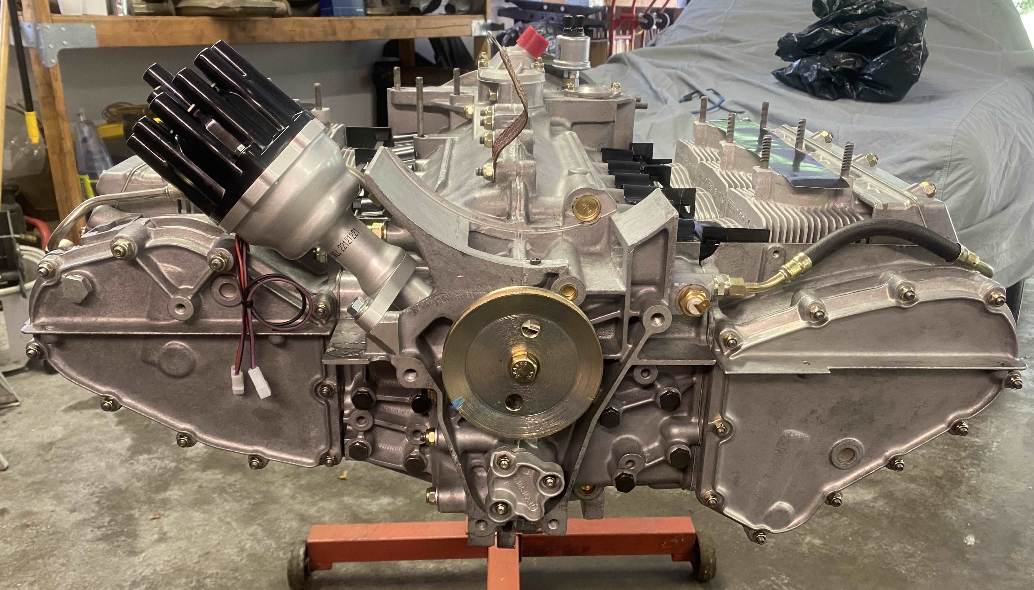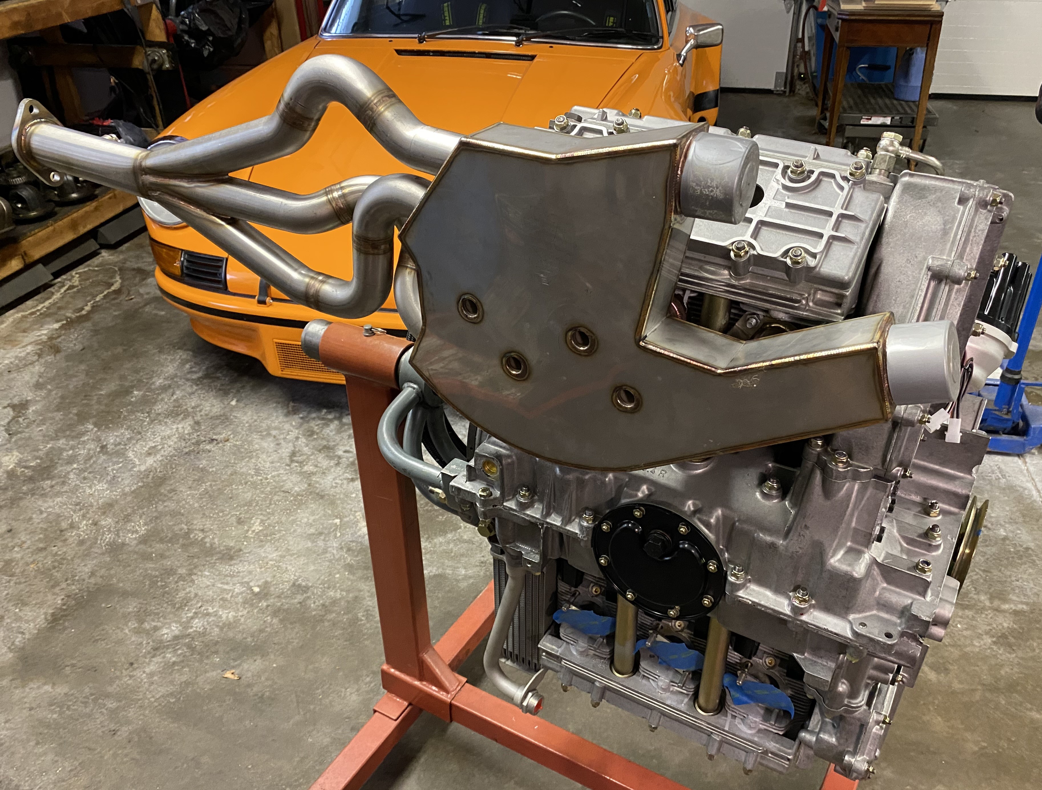 Some more progress on the engine. Installed the oil scavenge line. I plan to run this over the rear of the engine/transmission to the external t-stat much like the early 911. I also installed the RHS heat exchanger. Thank you, Ben McFarland, for the beautiful workmanship on the heat exchangers and for the oil line hardware and plumbing suggestions.