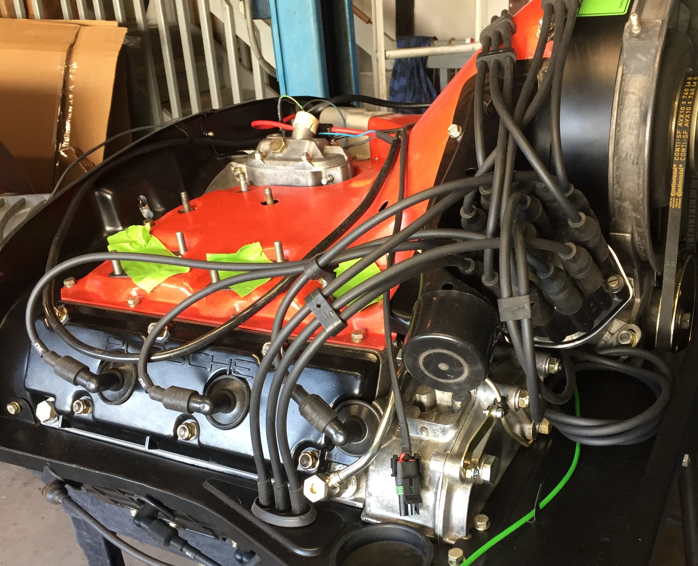A bit more progress. I did a preliminary fit of the engine sheet metal. It took a little fiddling with some enlarging of the mount holes and some tin snip work but it seems to fit well. I'll still have to drill some through holes for the lower plug wires.