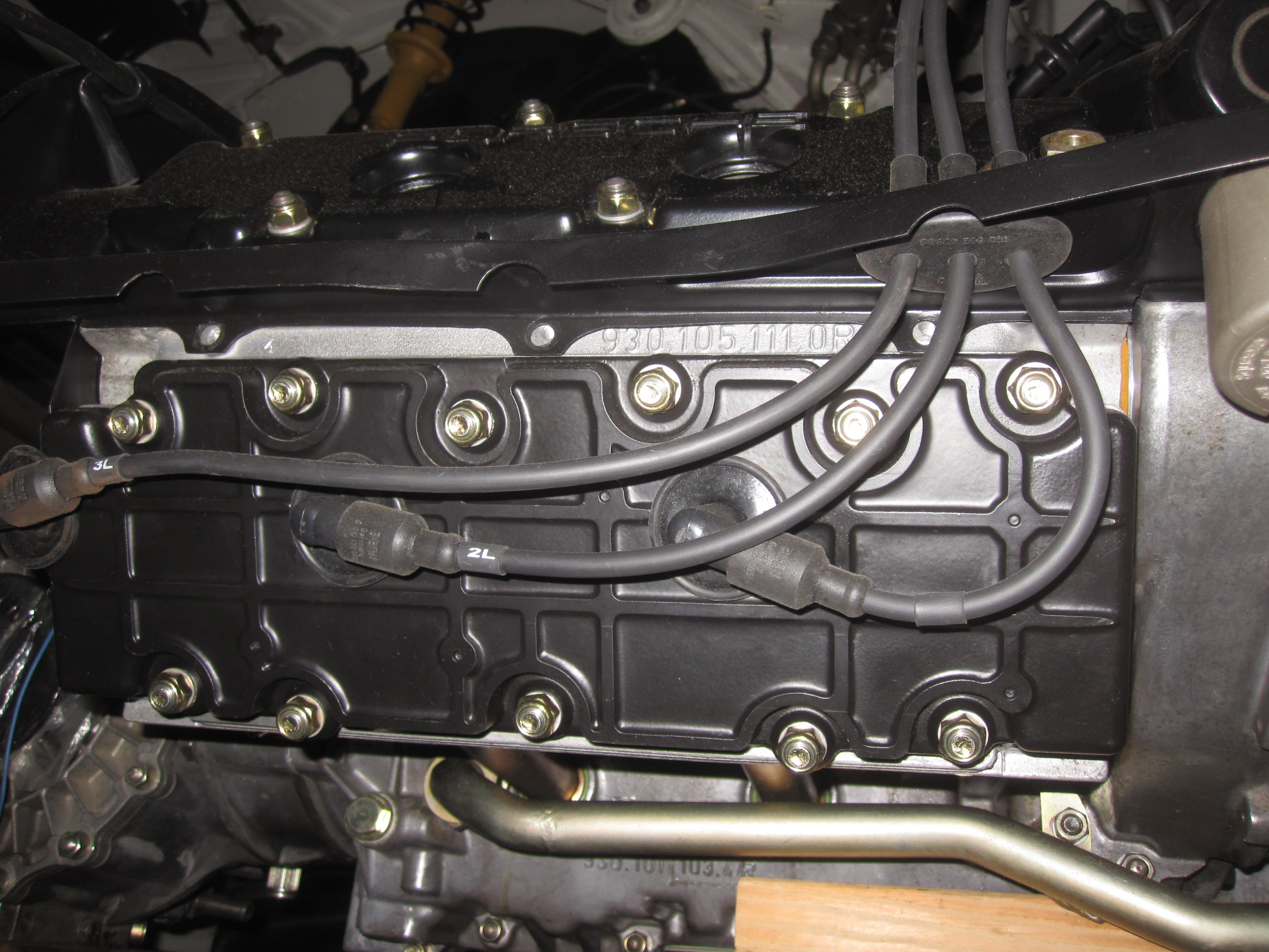 Your project is coming along beautifully. See pics of my lower ignition wire routing. The grommits are 993 or 996 OEM I'm away at the moment so can't provide the part # Also, I used full size lower spark plugs and found the only plug wrench that would work was the one included in '69-'73 OEM tool kits. I also used 12 point cyl. head nuts for additional clearance. The lower valve covers are milleded 996 items with the rubber perimeter seals. Attached thumbnail(s) |