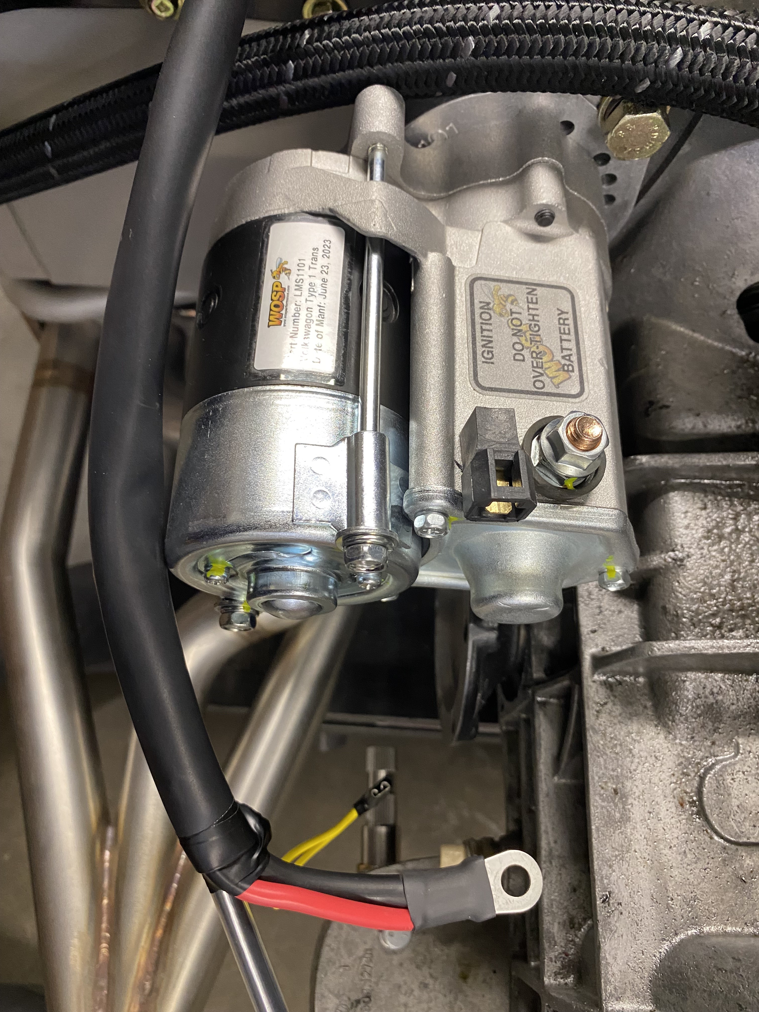 I mounted my new WOSP high torque starter after checking the position of the drive gear relative to the flywheel ring gear. The only way the stater fit was with the electrical connections on the top. Rotating it 180 deg results in interference with the gearbox exterior gusset. I am wondering if there be enough clearance between the top connections and the bottom of the rear trunk floor pan?