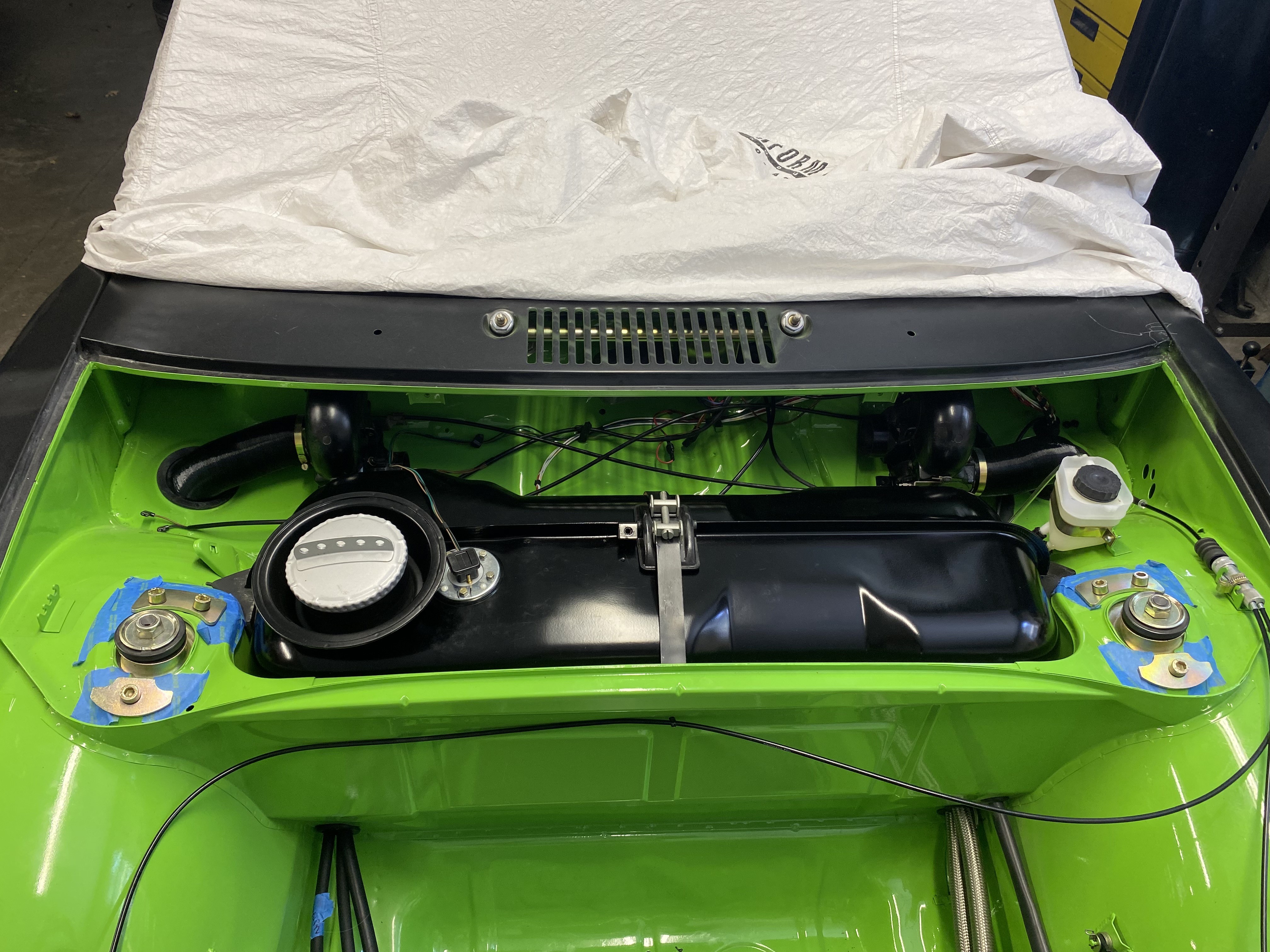 Looks good to me and 2 fuel pumps that seems like overkill but looks great (IMG:style_emoticons/default/agree.gif) I saw the two pumps and thought the same. Every time I've seen someone using two pumps (at the same time) they haven't worked like the owner wanted. Pumps seem to fight against each other, and one always wins. Your installation is the first use of a "dummy" for appearance I've seen! (IMG:style_emoticons/default/smilie_pokal.gif) Now, if you're really looking for "period correct" shouldn't the fuel hose have a cloth braided outer covering? Your car and the work you have done to it is World Class IMO! Everything is too perfect to use! (IMG:style_emoticons/default/ninja.gif) Thanks for the compliments. I will drive and enjoy this car once it is done. I’m actually planning to cover the entire pump area with a protective grate like this GT rally car. https://pbase.com/9146gt/image/54417625 |