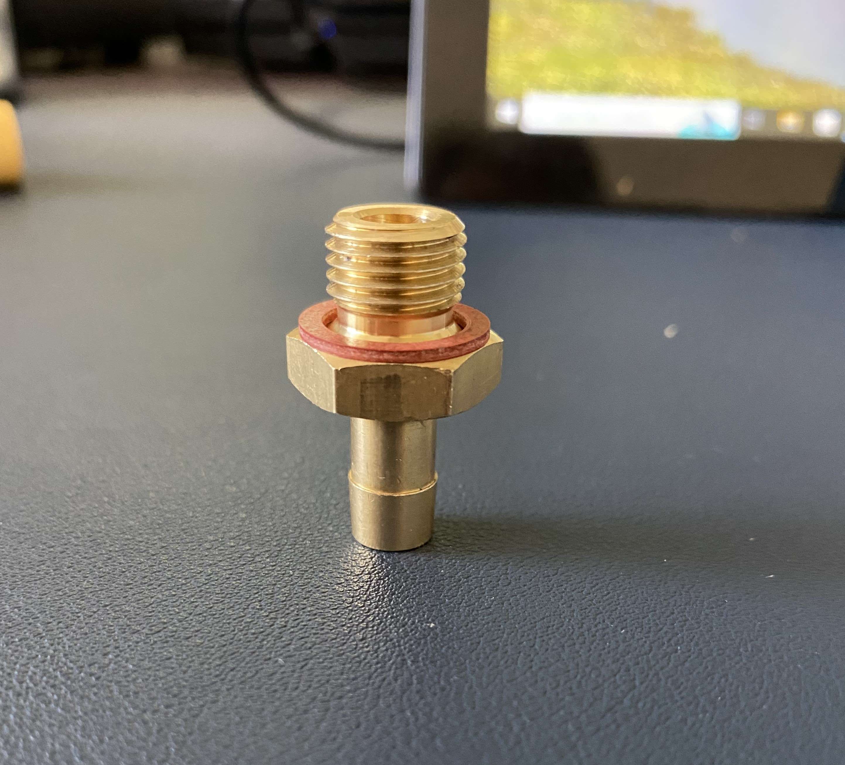 One issue I am having here is that the fuel delivery line is 10 mm ID and the input line on the regulator is for an 8 mm line. I tried locating a new fitting for the regulator inlet with a 10 mm barb but I am having trouble determining the male thread type on the inlet to the regulator. I need a fitting with a 10 mm barb with a male thread to fit the regulator. The dimensions of the original 8 mm barb fitting are shown here. The inside thread diameter is about 10.9 mm and the outside diameter is about 11.9 mm. Anyone know what type of fitting this is and where I might find one with a 10 mm barb? |