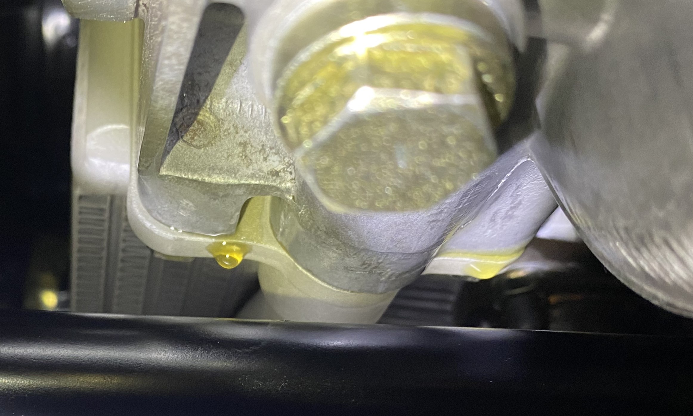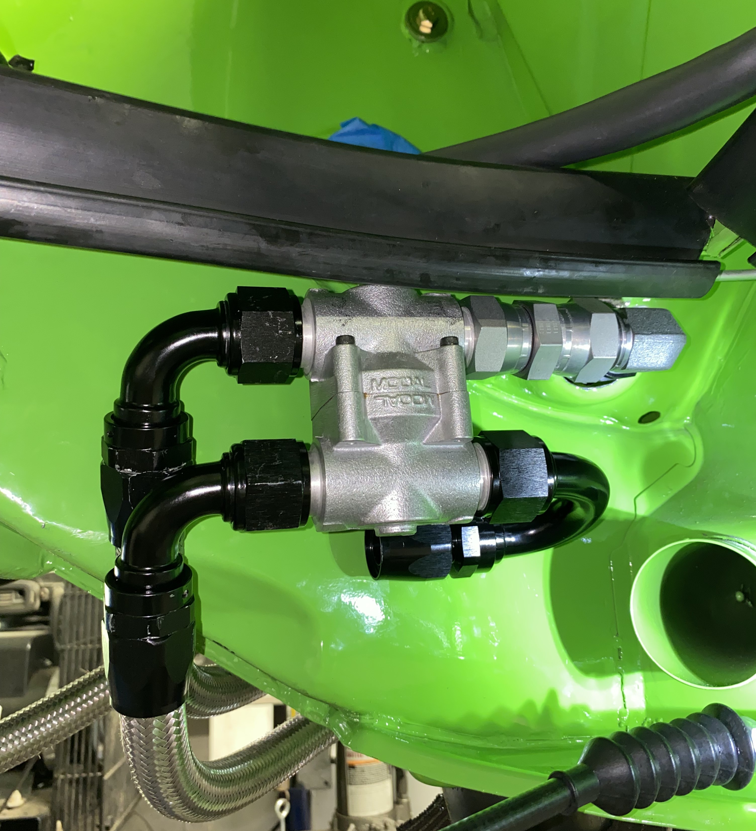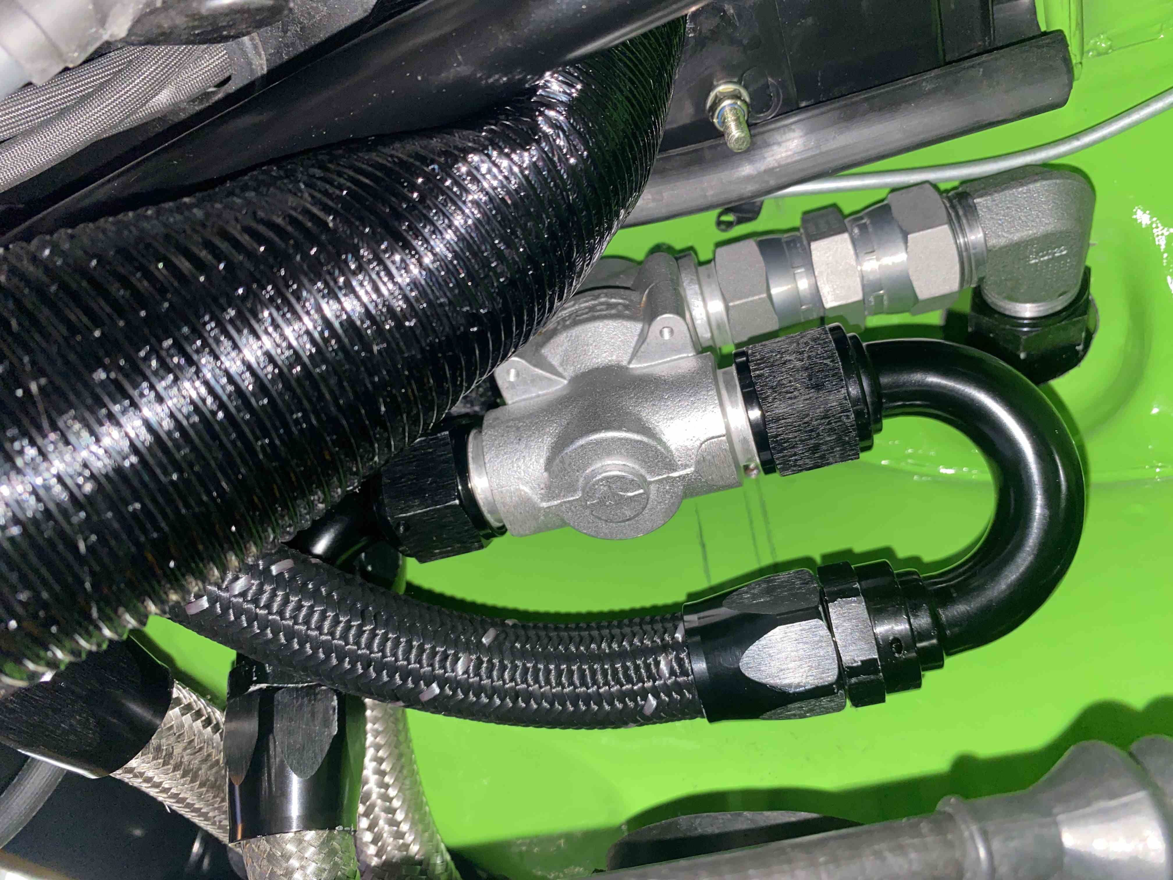 So I ran into a problem today. Cranked the engine over for 30 seconds twice (with no power to the MSD or fuel pumps) to build oil pressure. Checked for leaks and found an oil puddle on the garage floor. The source seems to be the new CSF engine oil cooler.