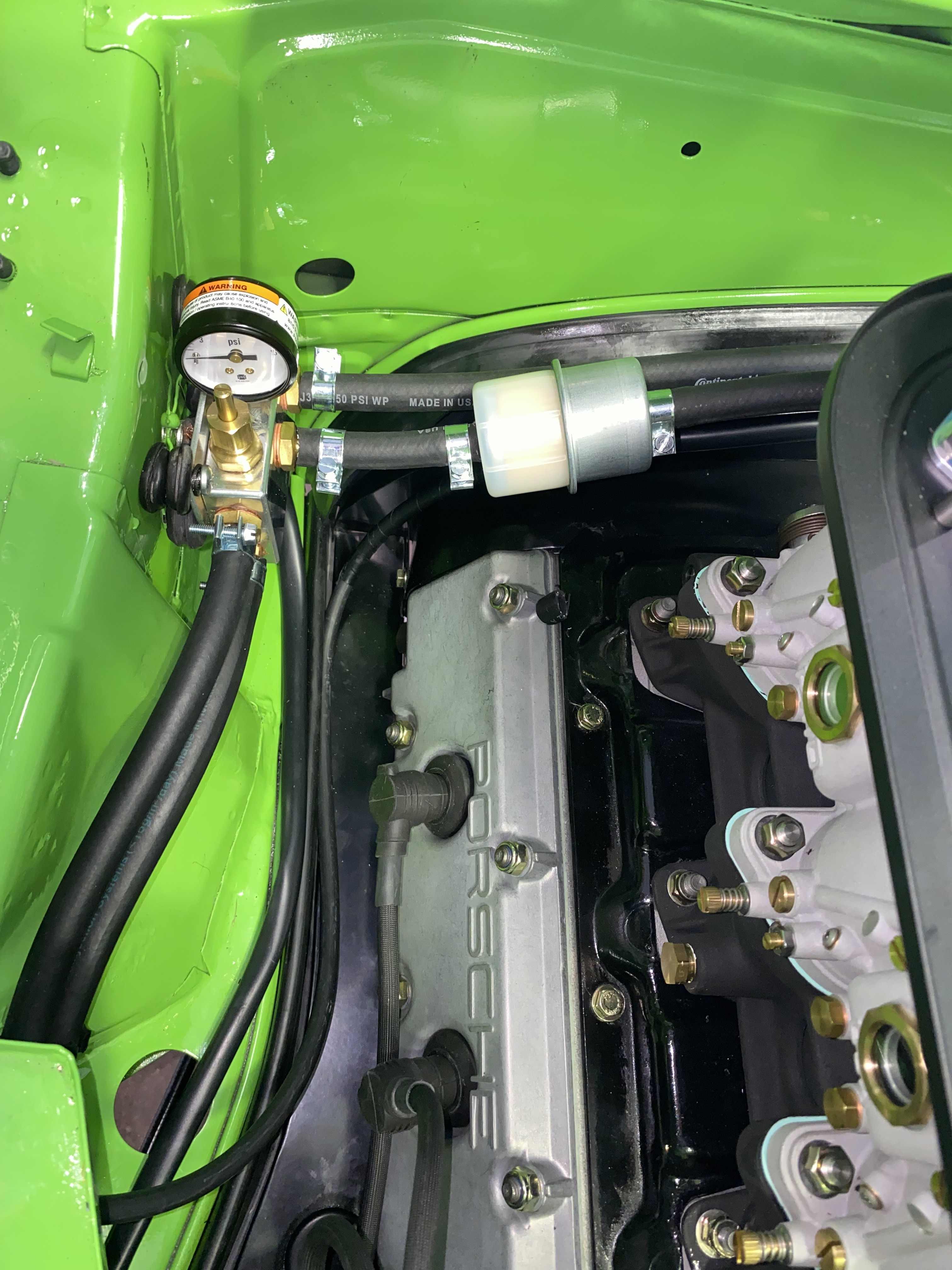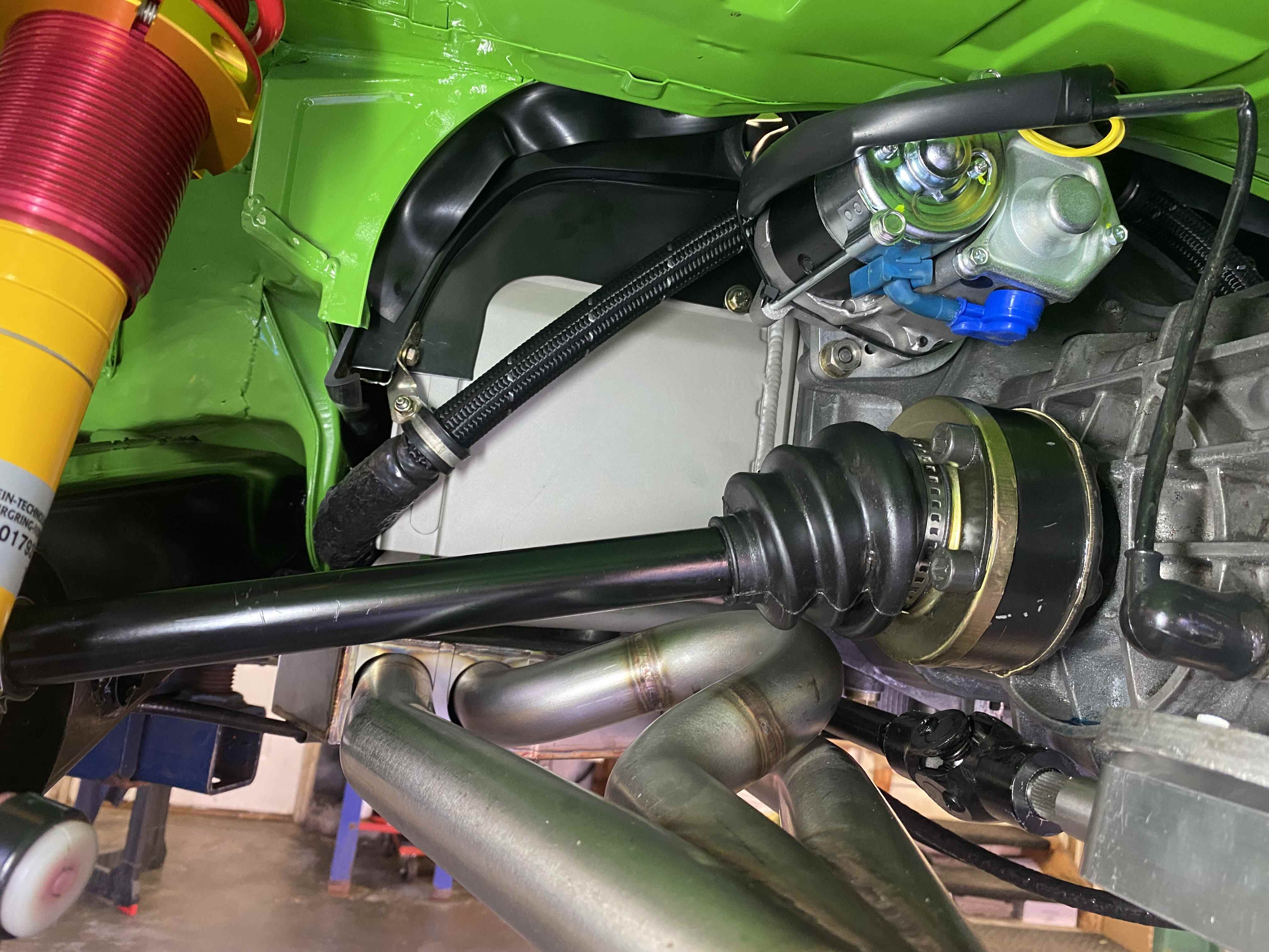 I installed the CV/Axle assemblies. A little finicky especially doing it after the engine has been installed. Got lots of good suggestions from members here: http://www.914world.com/bbs2/index.php?sho...=372298&hl= I ran the fuel system and after fixing some small leaks, I attempted to adjust the fuel pressure. Pressure was running much too high and adjusting the PMO regulator had no impact. I had to lift the fuel tank up out of it's home in the front trunk to discover that the return line was kinked around the sway bar. I re-routed it and reinstalled the tank. This eliminated the restriction and allowed me to set the regulator to 3.5 PSI fuel pressure. Currently waiting on a new Interstate AGM battery so I can crank the engine over. |