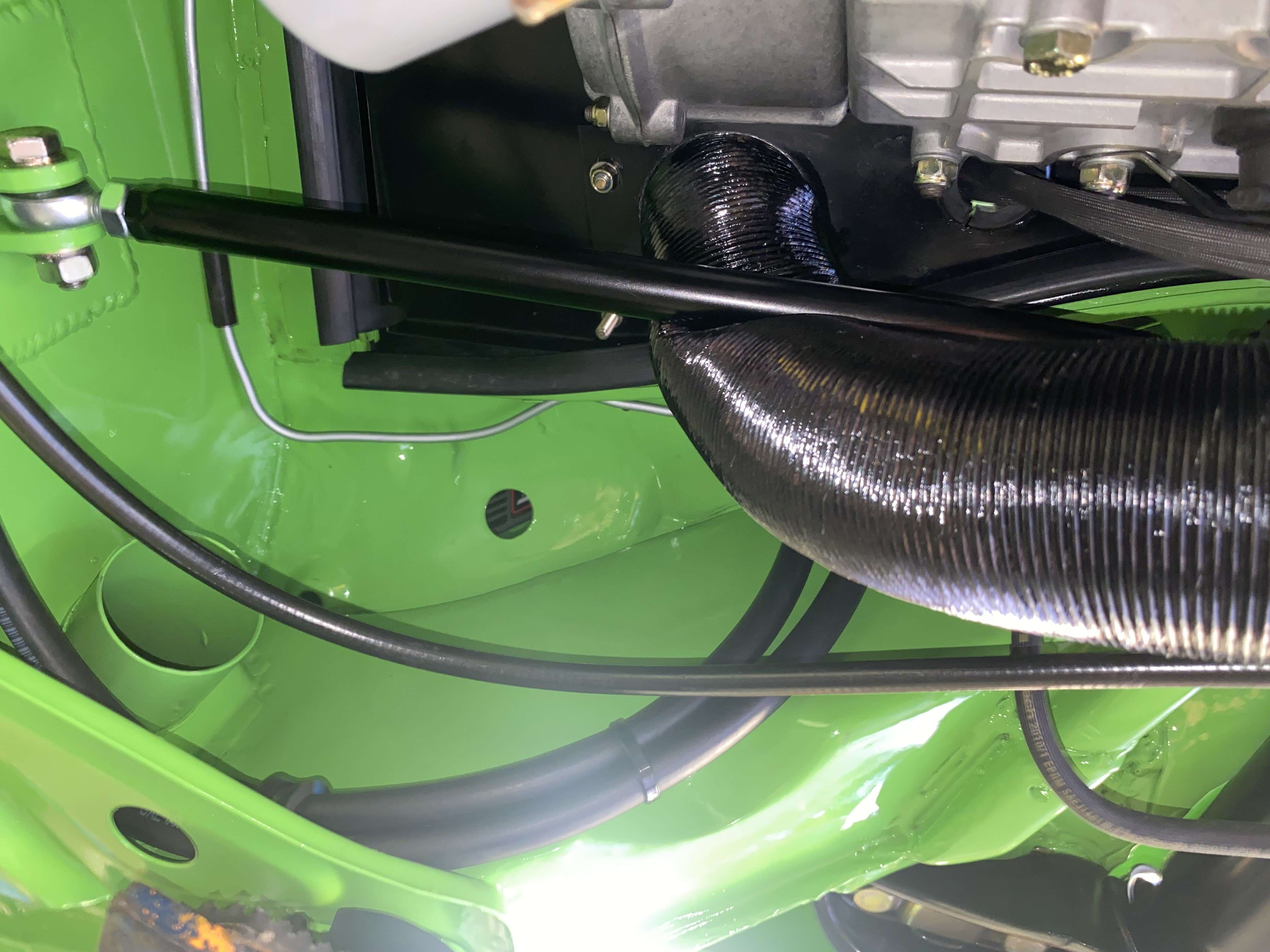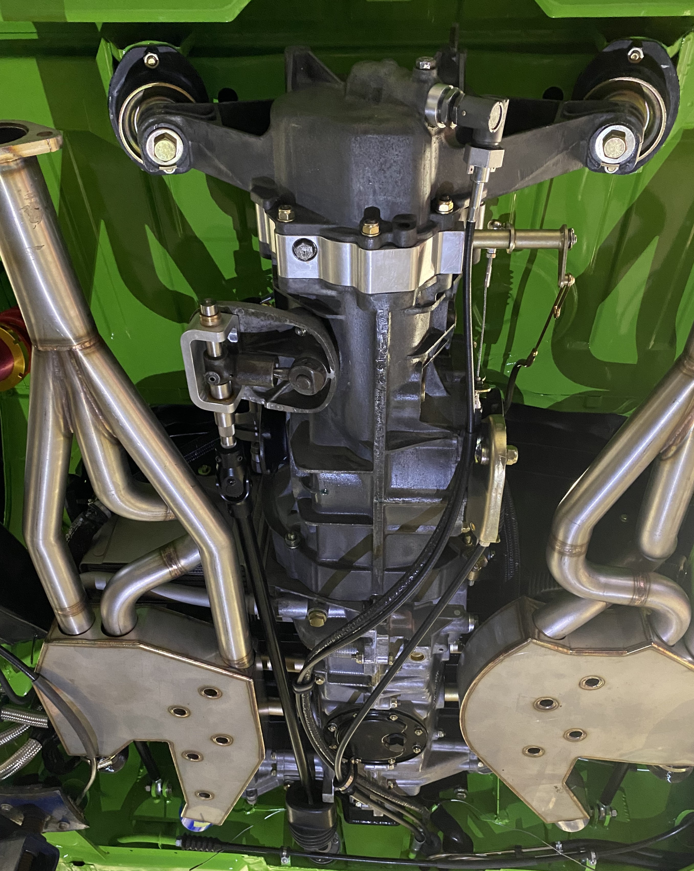 Most recent progress...Installed the speedo, clutch, gearbox and accelerator cables and linkages. Did a first pass at adjusting the clutch and accelerator cable/linkages and neatened up the cables. Good news...No interference between the Tangerine shift rod and Ben's heat exchangers with the Mad Dog bulkhead motor mount.