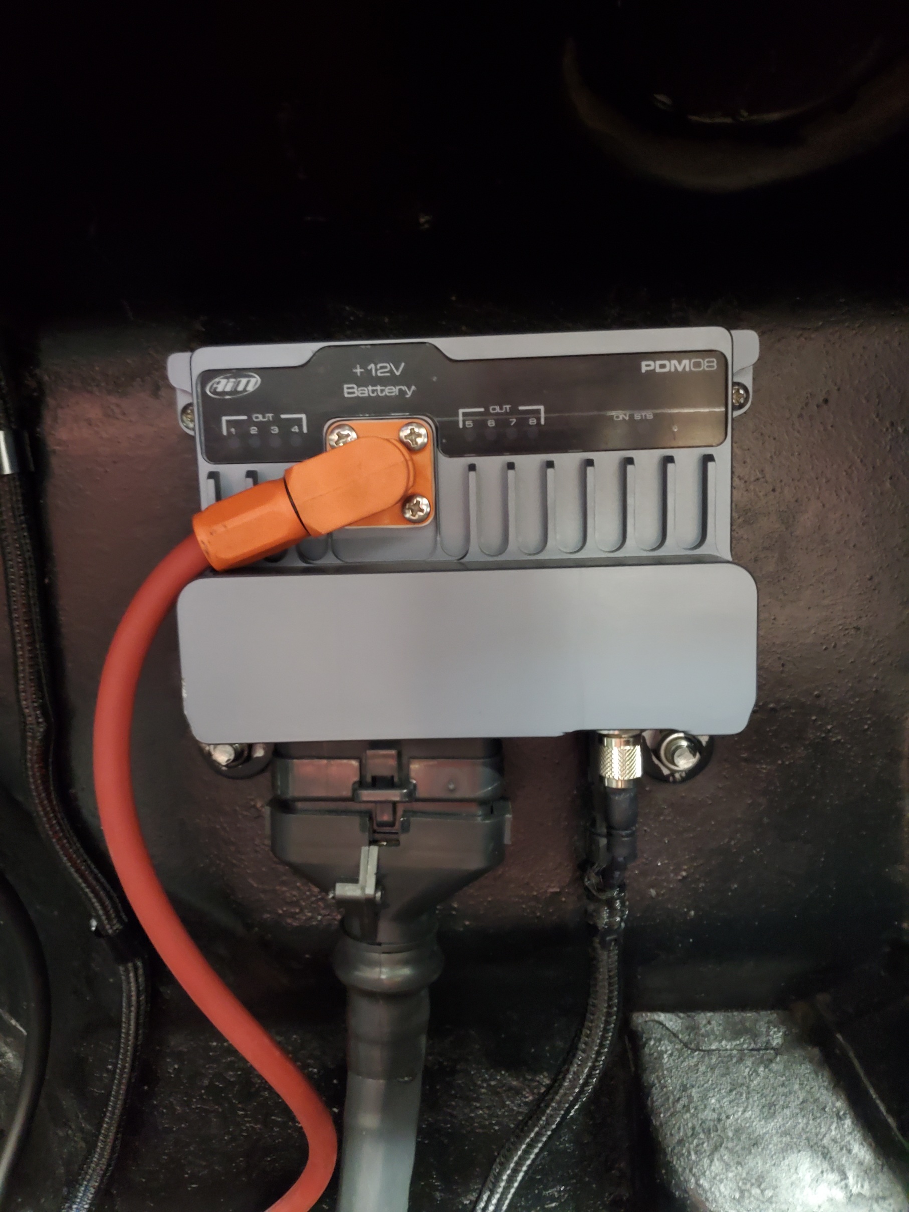 So the decision for what to do for the electical system? Choice A was to patch the melty wires and keep rolling. Choice B was to install brand new -6 harness. Choice C was to install aftermarket harness kit. Choice D was to go with an AIM PDM, dash, and smartycam setup. Choice A was pretty hack and i really didnt want to have things done part way. B was very attractive but at a price point of $3600 gave me some pause. Option C i actually acted on and purchased a harness by Bare Bonz from JEGS. However I ended up going with solution D as, for around the price of just the original style harness, i could get a full plug and play setup for the track that was custom built for my needs. I need only a small fraction of wires and kept headlights, wipers, brake lights. Major components are the Power Distribution module that serves as fuse block and central brain of the system, the Dash which is really configurable, and the smartycam which autorecords when you go faster than 25mph. Attached thumbnail(s) |