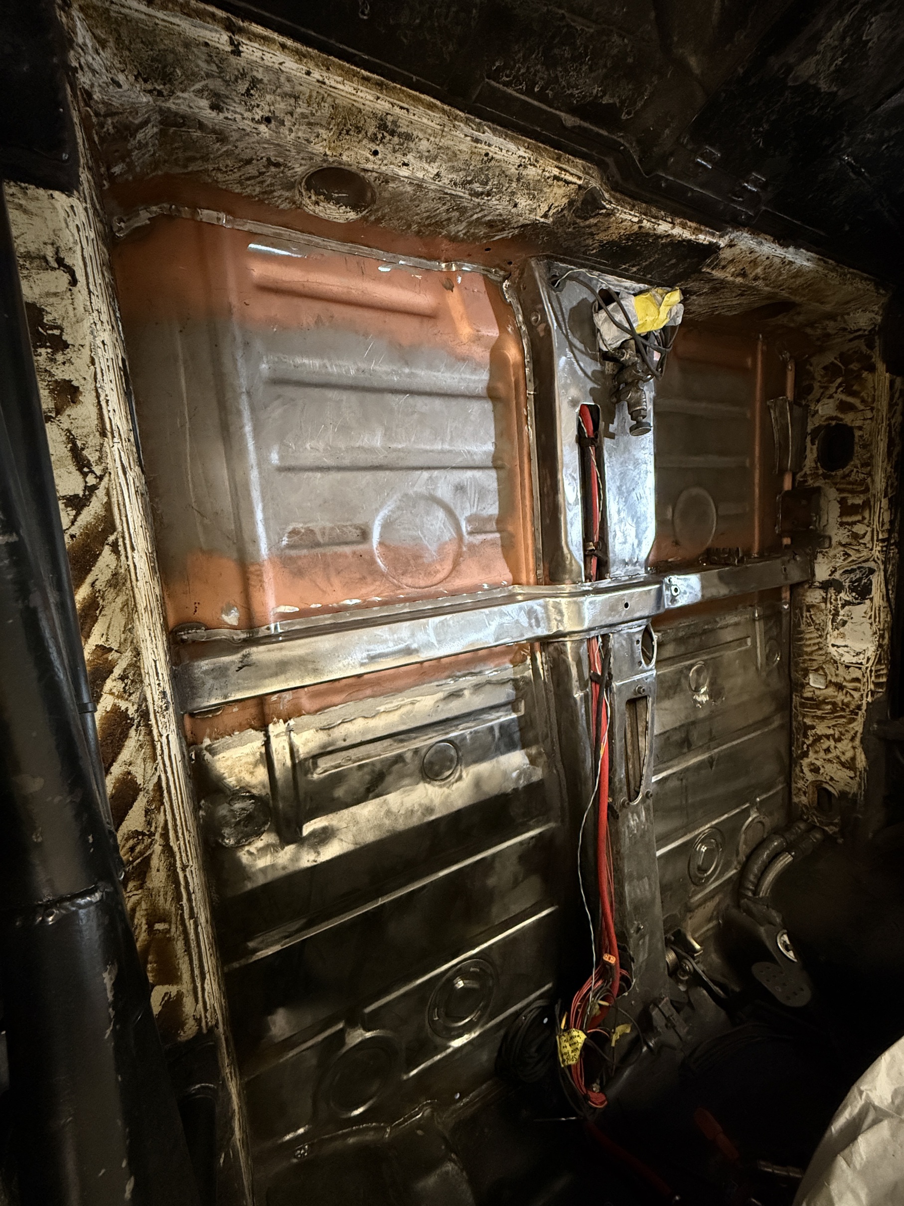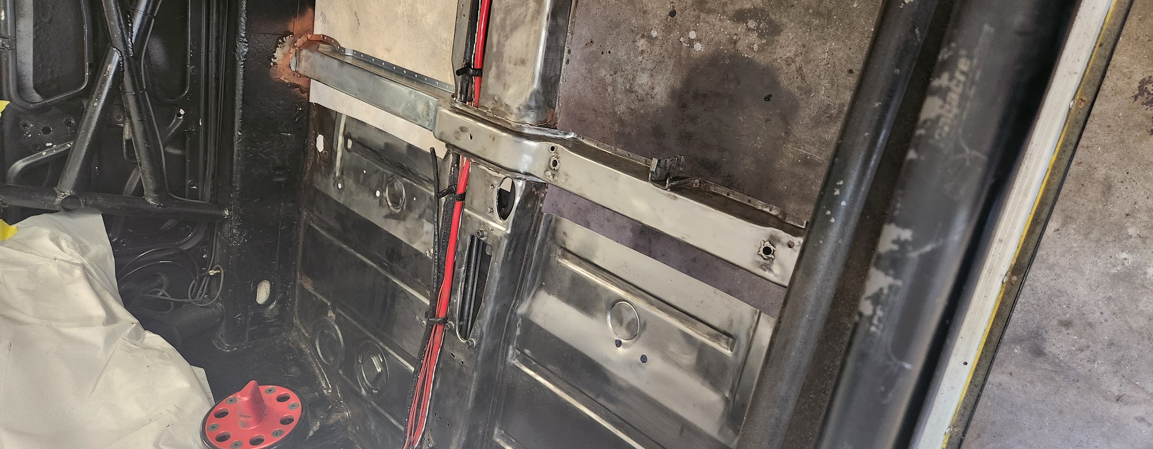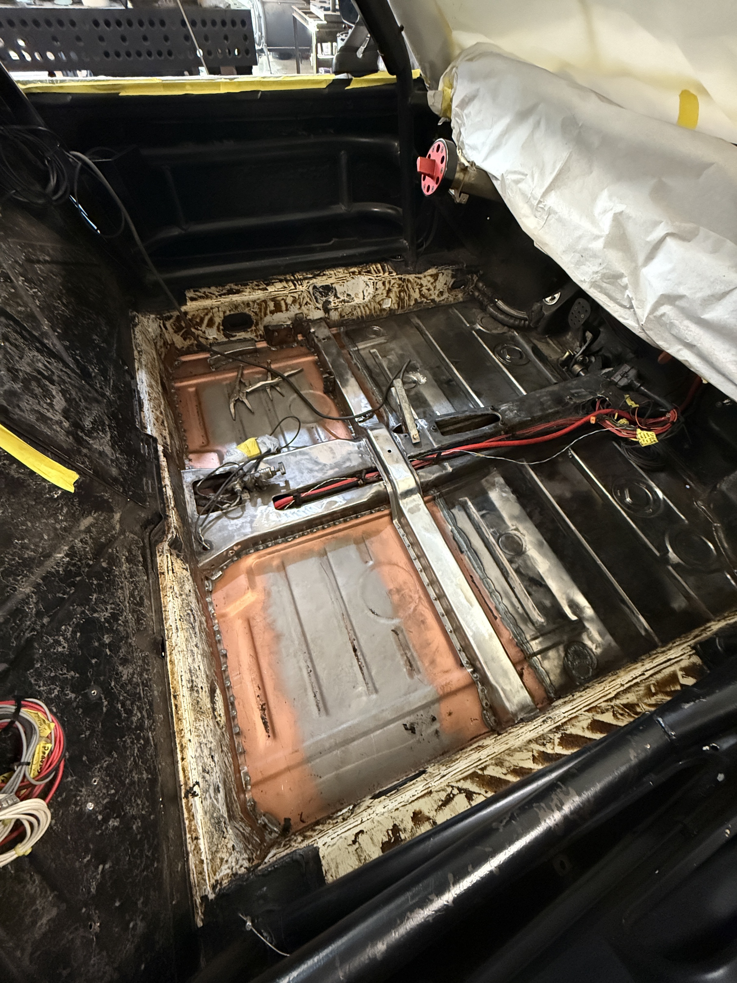 So engine not quite ready and sent the car over for rust abatement. There was a small hole in the floor passenger rear corner l, some other spots on back sections, and various seat and extinguisher mounting holes from 40 years of track driving. So pulled out the offending sections after a thorough inspection and replacing the rear half. Using restoration design panels and a local craftsman familiar with our cars. Really pleased with the progress so far!