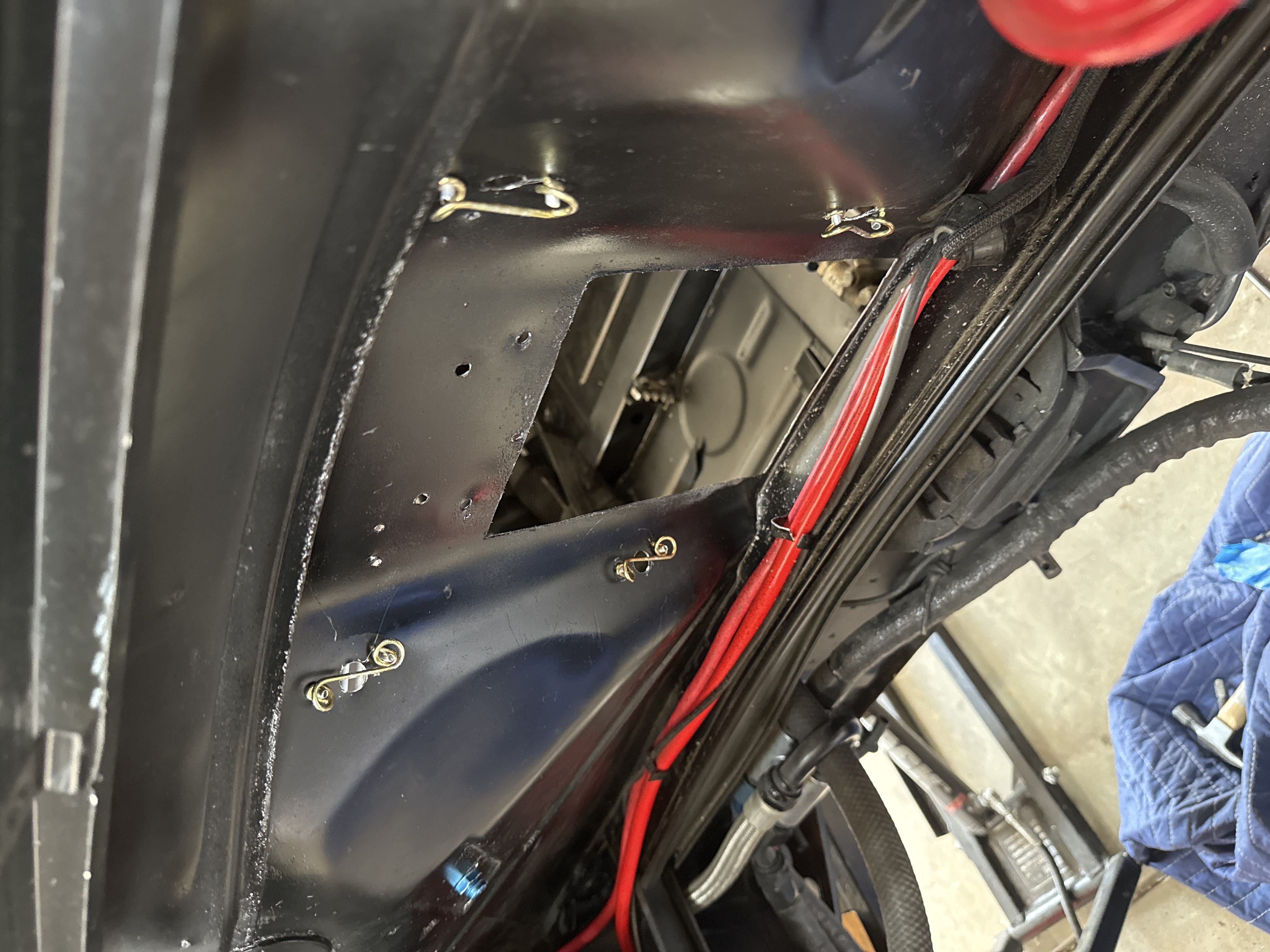 Installed anchors on inside of engine bay