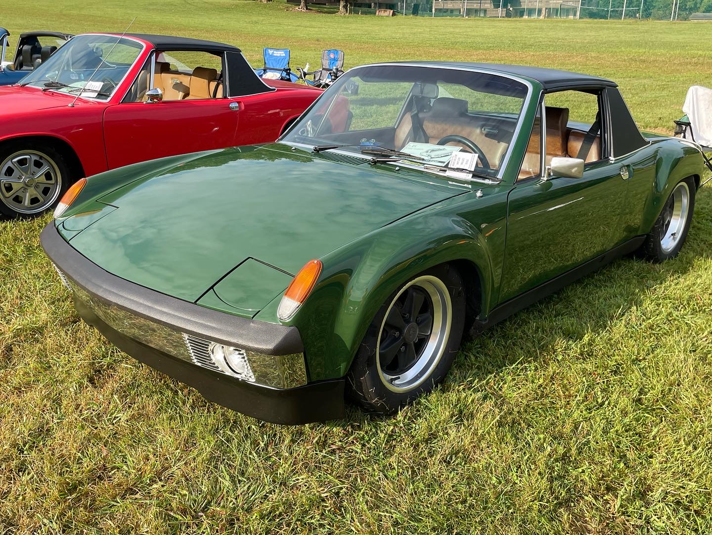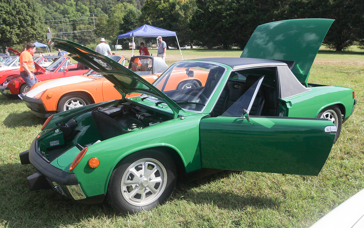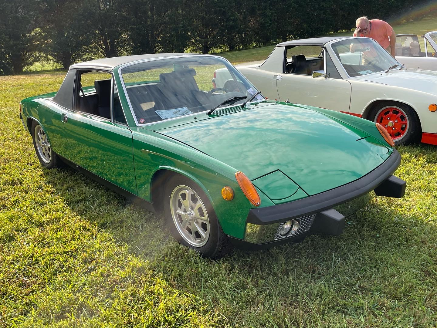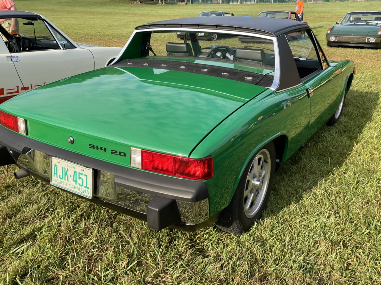 Also, hopefully someone else took some pictures of Chip's beautiful 1974 2.0 Zambezie Green car that took first place and best of show. Chip brought this car down from Blowing Rock about 3 hours drive, he drove it which is awesome considering its the former Brumos Museum car he bought 3-4 years ago that at the time had only 5.000 miles on it!! It now has 7500 I think he said and is like a time capsule. anyway if anyone has pictures please post them. Phil Chip's 914 on the drive (posted previously by DrPhil) ![]() |