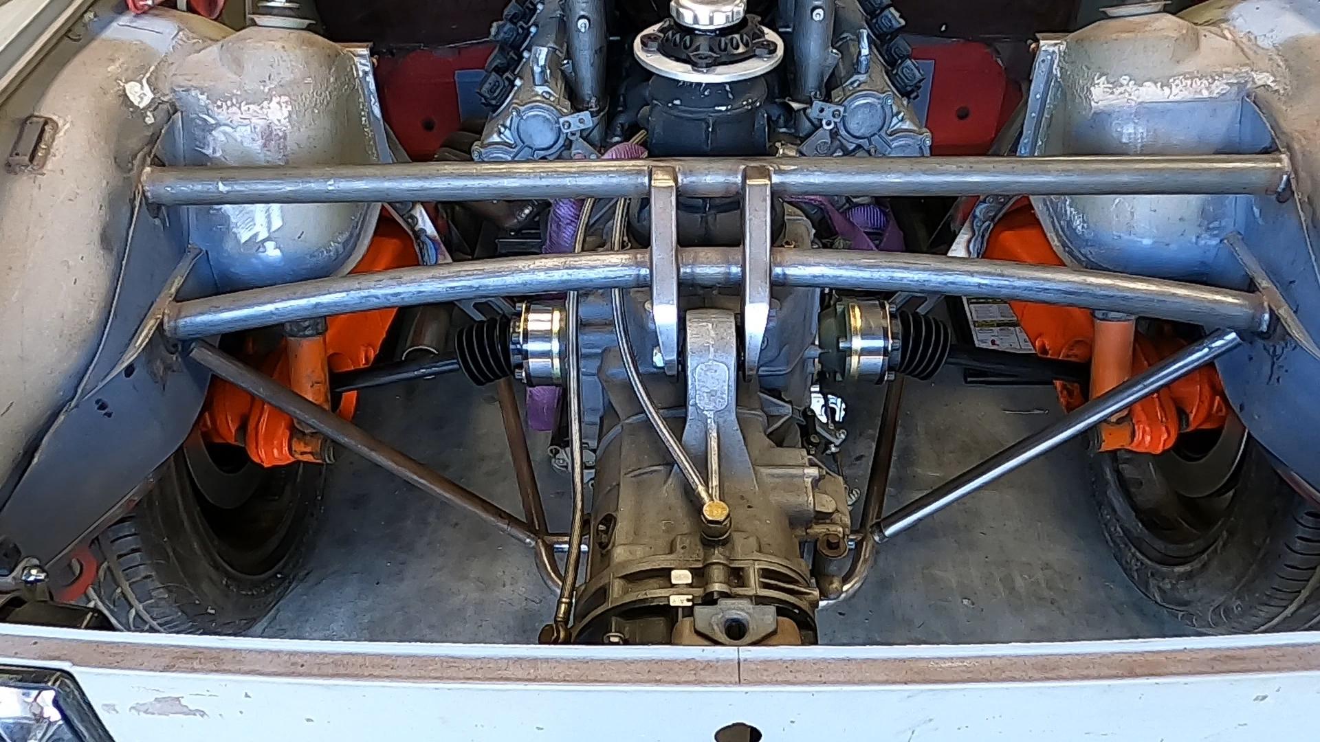 Both axles in and looking very cool! Next, I need to work out the bracing for that rear trans mount "pivot link" mount - that's what you're seeing with those two V-bars. I wish there were a more elegant solution but this one likely makes the most structurally sound sense.