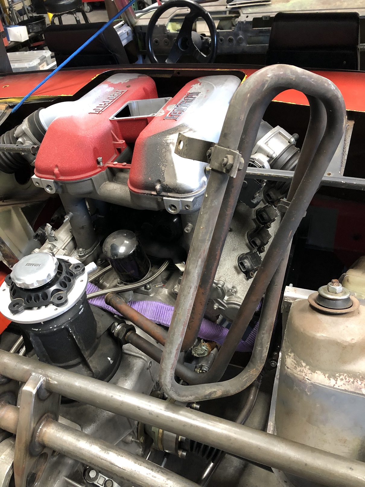 Another happy coincidence! Porsche trombone oil line fittings are the same as the Ferrari system. One less thing to chase down. Look closely, it's connected - well, one end anyway. Attached thumbnail(s) |
