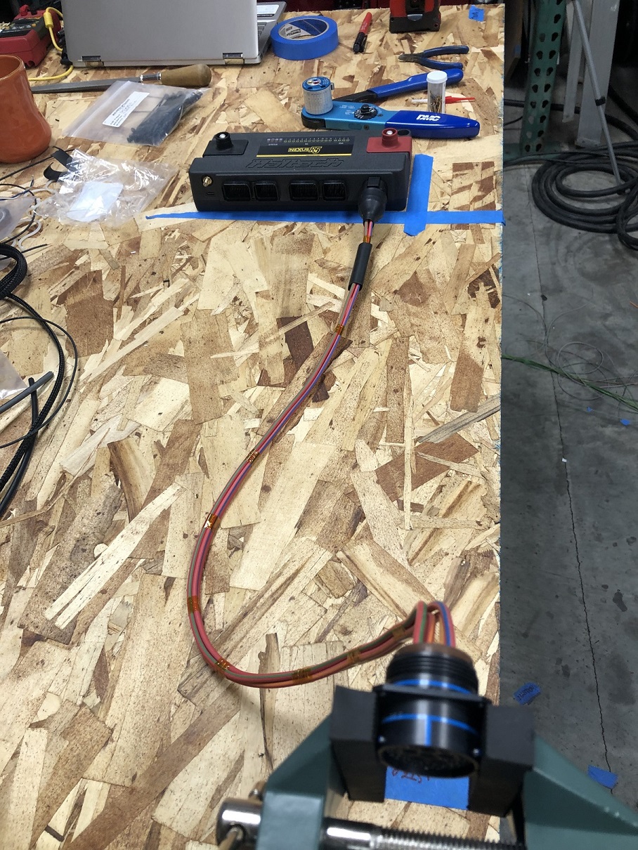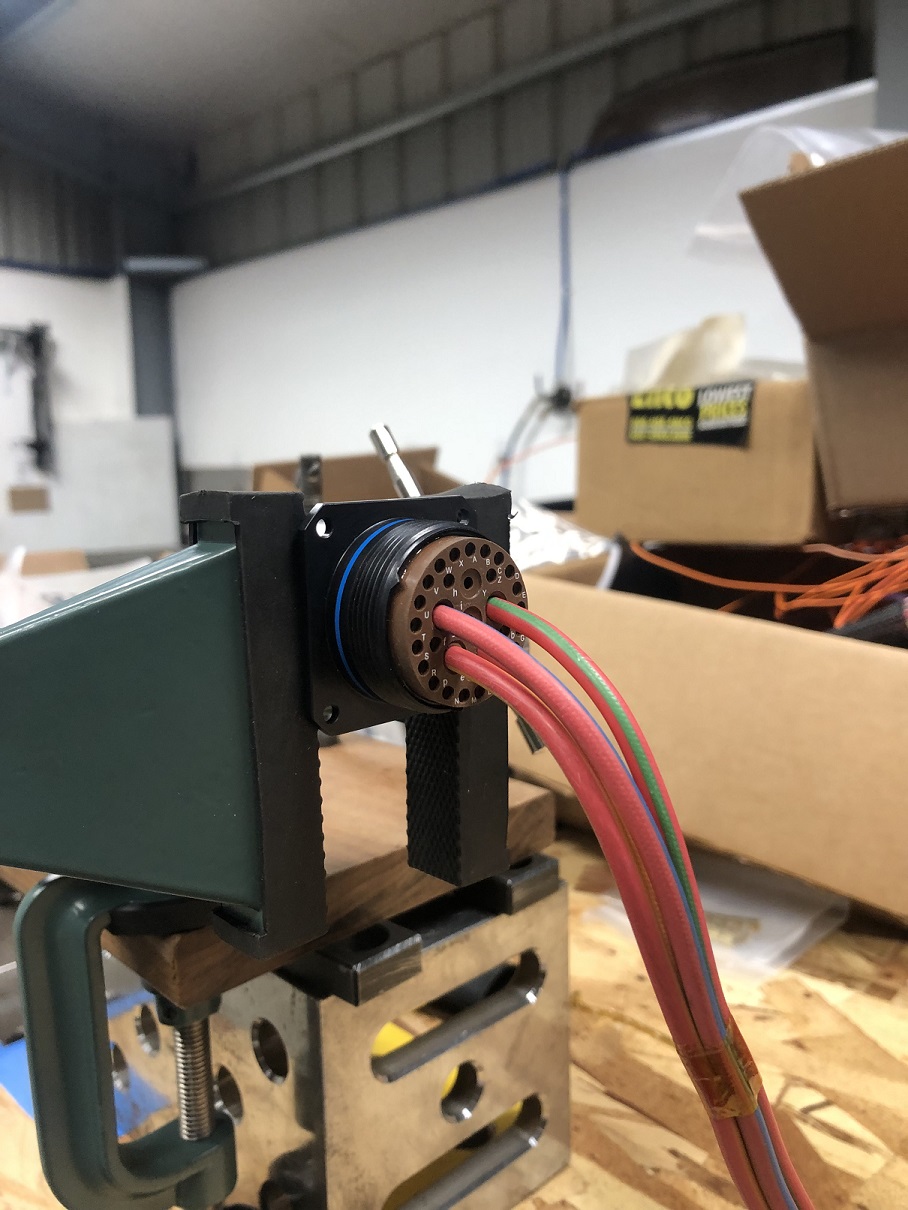Let the connector connections begin! As I was getting started, I remembered that when I did the harness in my LS car, I struggled with change of direction when the harness went up and had to go the 90 degrees into the bulkhead connector. The wires that were pinned into the upper positions of the connector need to be a bit longer than those in the lower positions. Mistakes in these lengths forces some wire length back into the main trunk and it just looks messy. I'm not doing service loops anywhere so I need to be as accurate as possible. So I did some measuring and mocked up an in-space replica of the relationship between the ECU and the connector so I can "build to fit" and I should be good to go. I started with the four, 25 amp, 12 ga wires that'll feed: - coils - injectors - electric water pump - starter Attached thumbnail(s) |