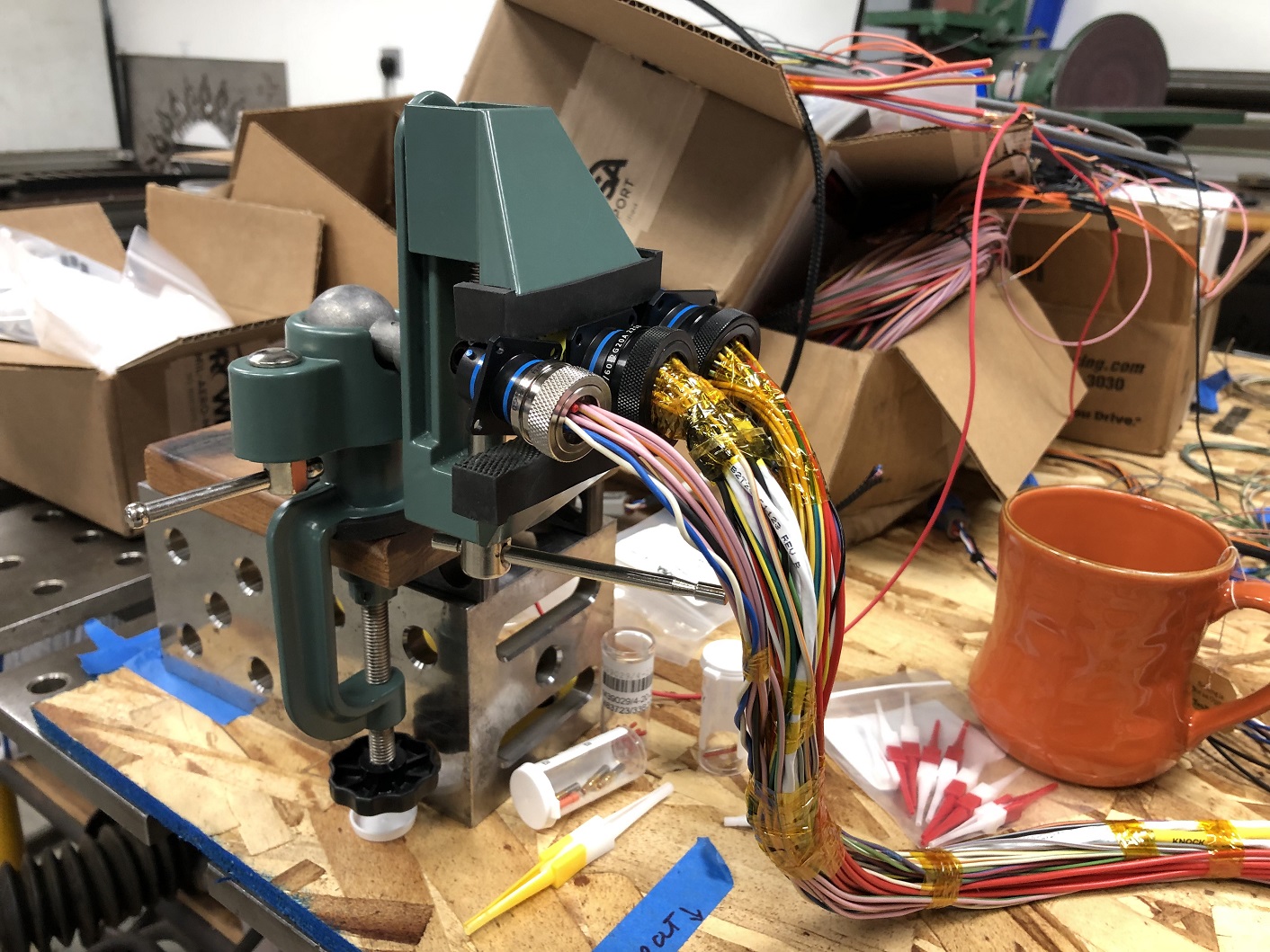Wiring, continued. At least I get to drill some holes and mount the connectors.