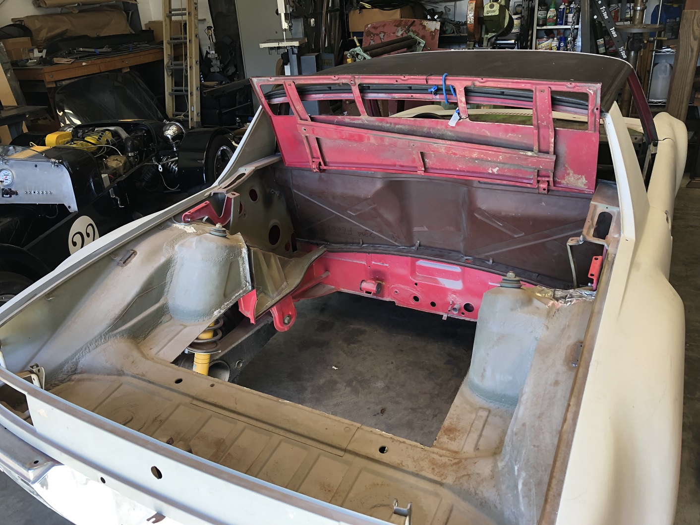 The pristine chassis has been sliced and diced - and haters gonna hate but I did it anyway. Some before and after to get things going. I'm going to try and preserve the rear section of the trunk and use the factory metal to build an abbreviated sorta golf bag sized trunk area so there's at least some sealed storage/luggage capability. Attached thumbnail(s) |