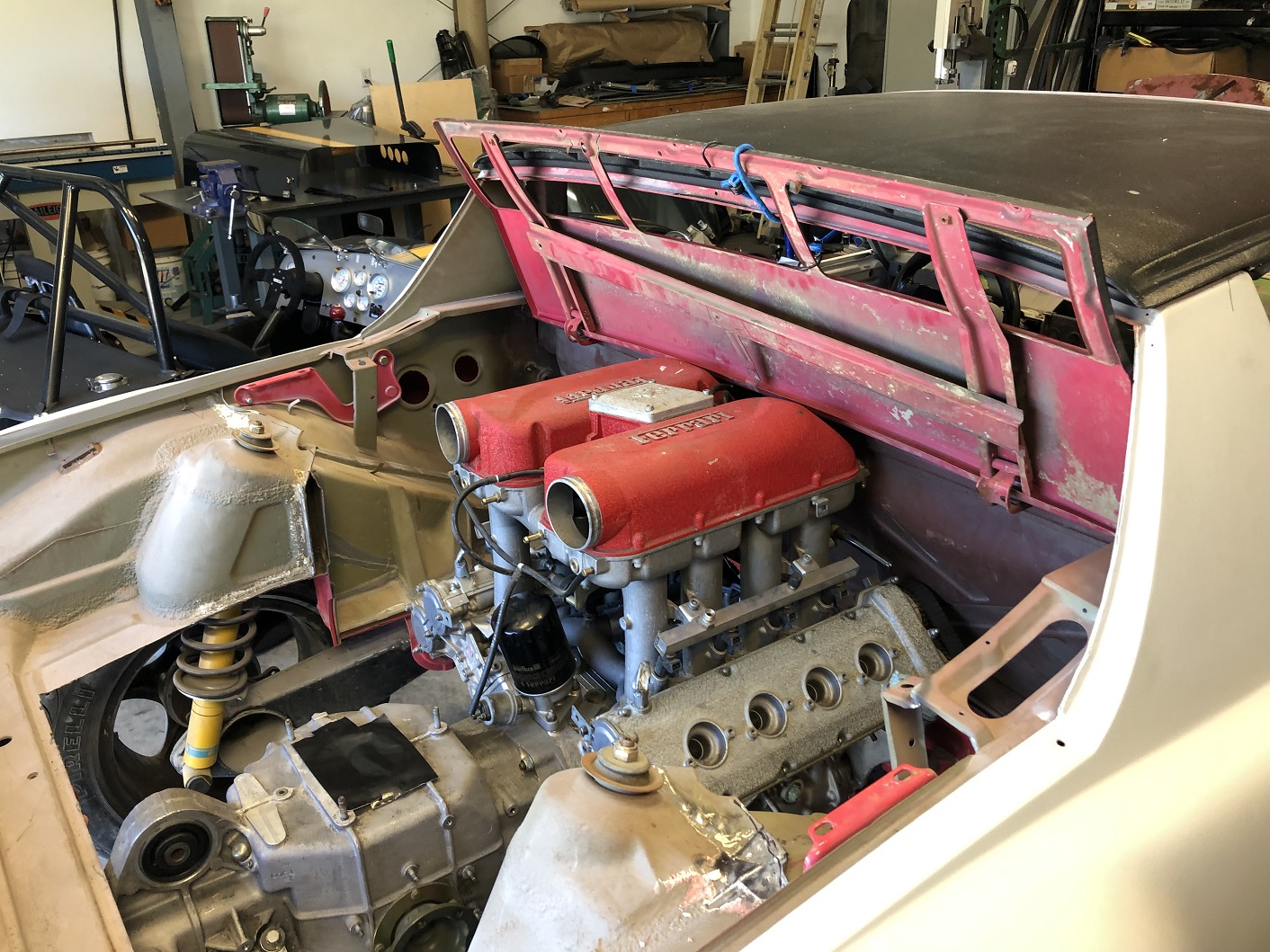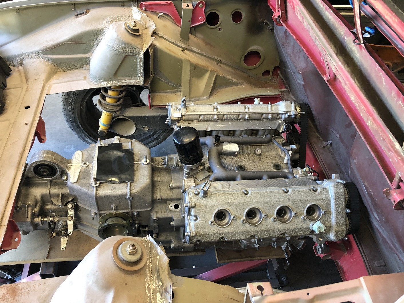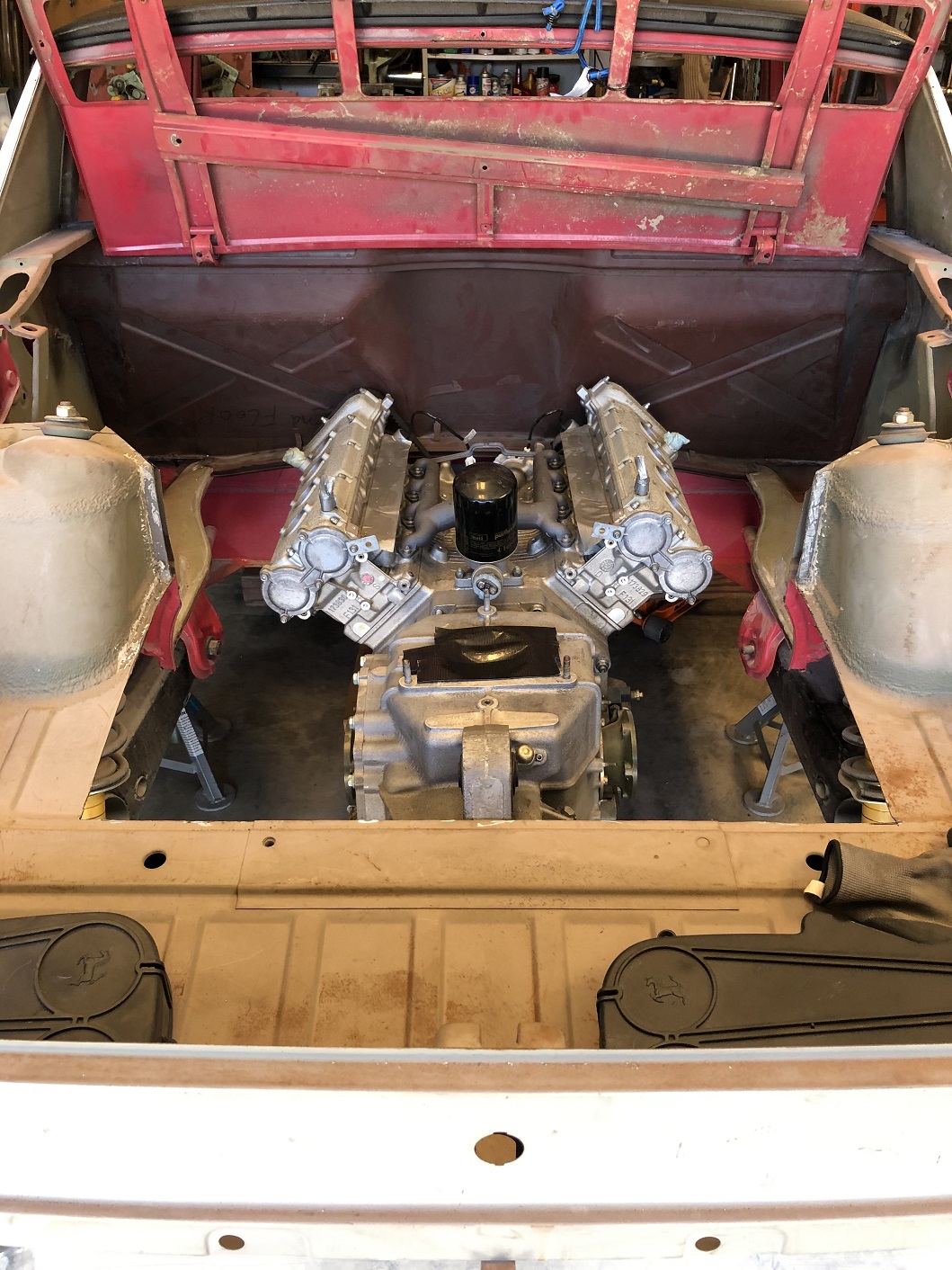 - the whole thing needs to come up about 2" which means the 914 trans cross bar and the trunk floor immediately behind the Ferrari trans hanger mount need to be notched and raised maybe 3-4". - the cam belt drives are contacting the firewall so either the drive train moves back or the firewall gets notched, or a little of both. - the axle angle is great and I can move things forward or back and still be well in range of acceptable to the CVs. - it looks awesome! Attached thumbnail(s) |
