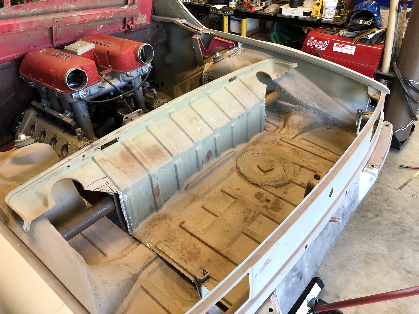 Let's start with the obvious: No, I likely won't keep up this pace. I'm just so excited to be back to fabrication and noodling on design and "engineering" (IMG:style_emoticons/default/lol-2.gif) But I was back at it bright and early this morning and rough cut the rear of the trunk so I could get the drive train to final height. Here's where we ended up at the back. I didn't fully remove that floor piece as I was thinking I may be able to bend it and retain the factory seam where it attaches the the rear panel. It'll need cutting at some point but I want to do as little re-work as possible. Attached thumbnail(s) |