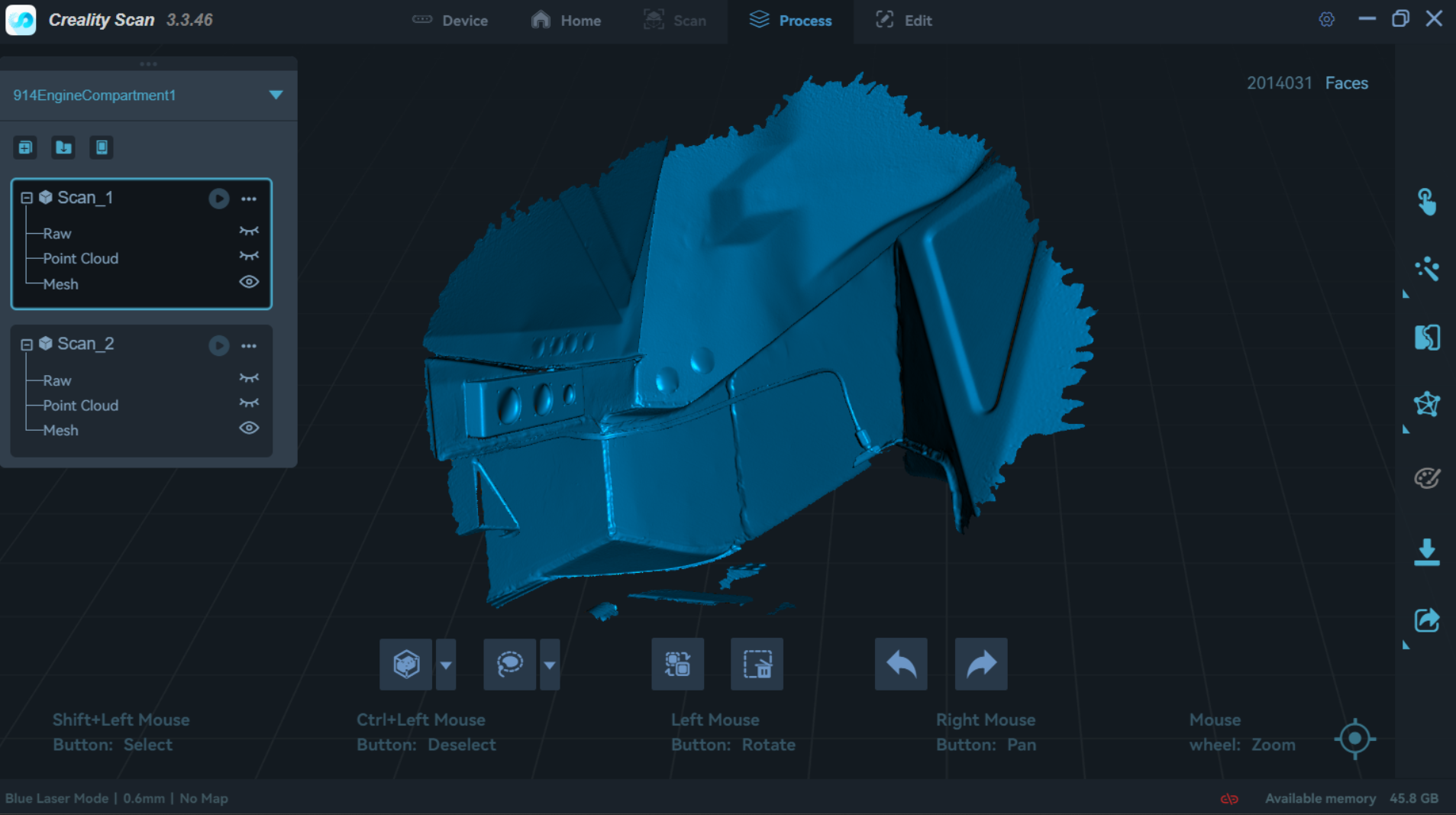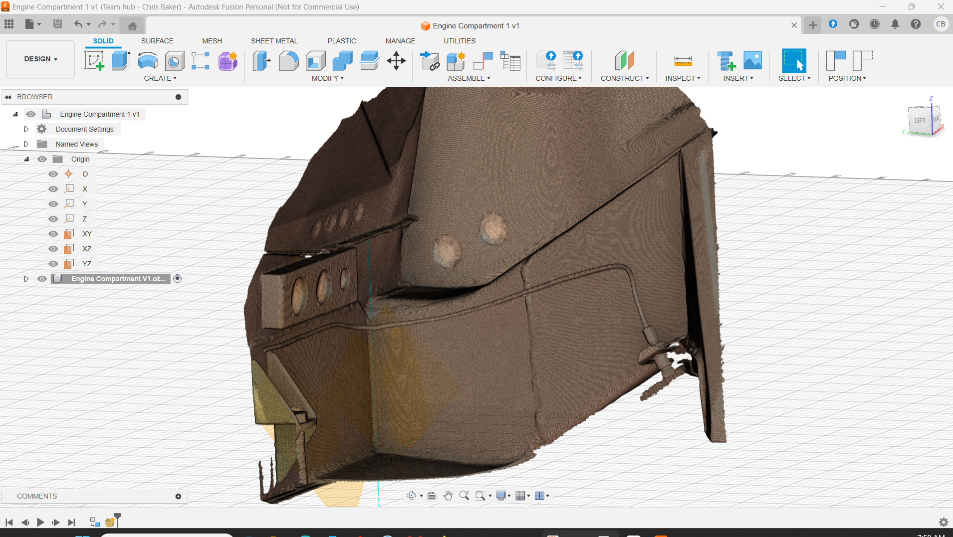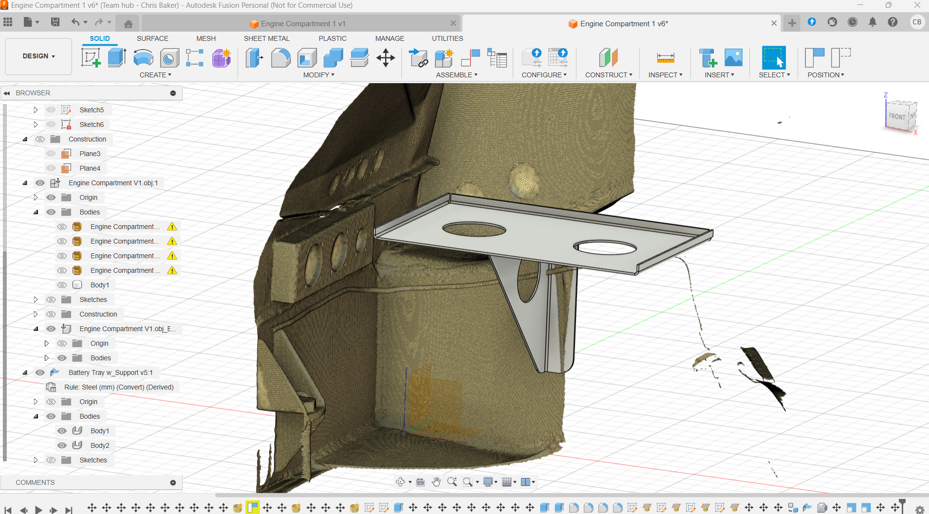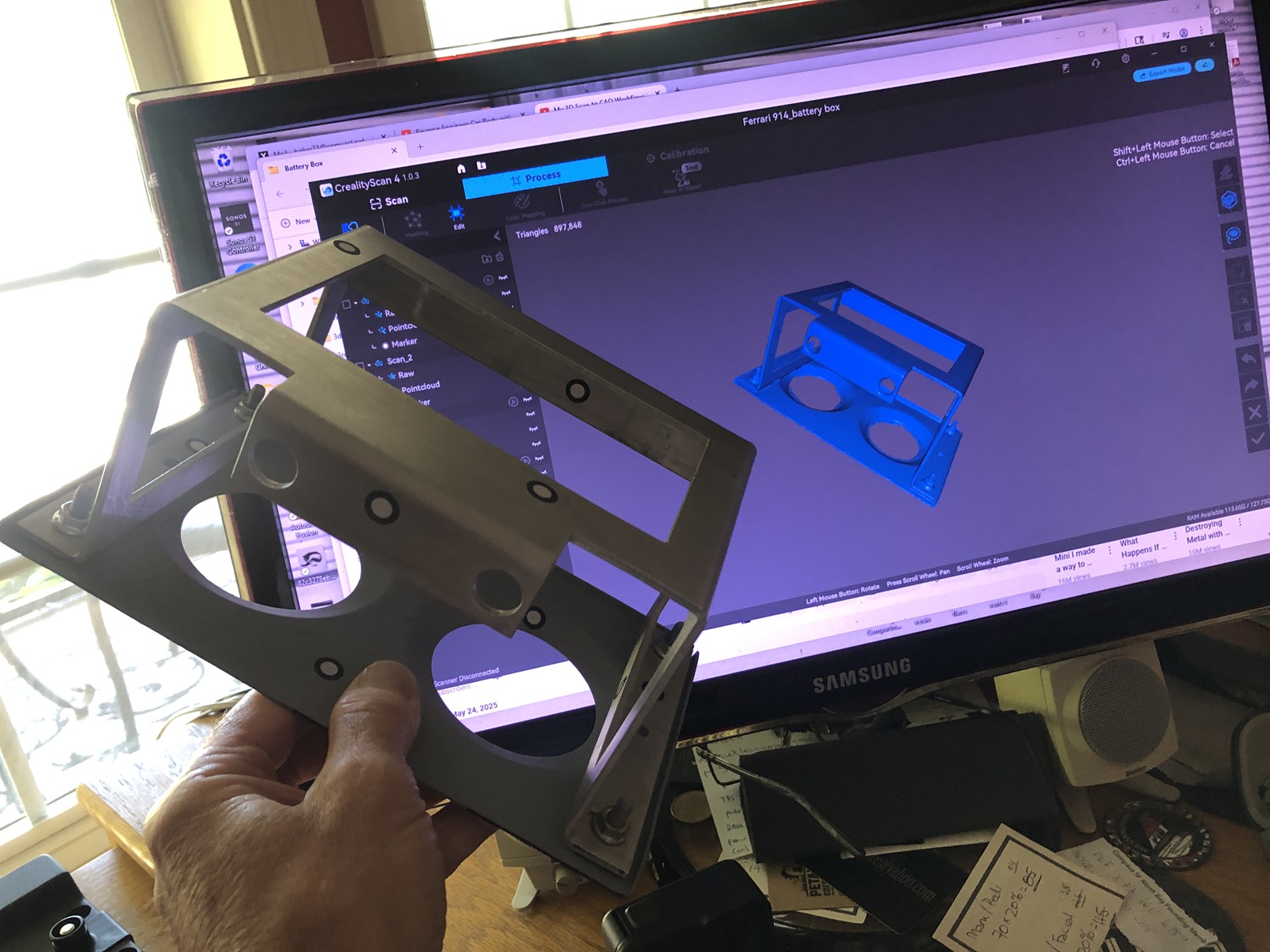 Here's my first go at scanning the (hell hole) area I need to understand so I can fab a battery tray and support. Yes, I could do it manually but again, future me needs to be proficient with this tech in order to make all the cool components I have in mind. Attached thumbnail(s) |