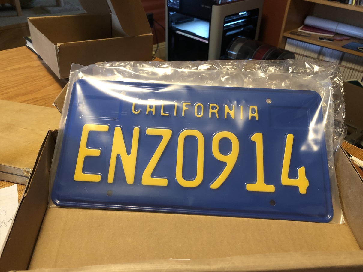 Very cool plate! (IMG:style_emoticons/default/smile.gif) Was it obtained through DMV for street use or just a fake? @Montreal914 - Through the DMV so that's the plate assigned to the car. I ordered them in the 1960s black/yellow and since CA doesn't do personalised plates in the proper year of mfg. blue/yellow, I ordered that "fake" one and plan to run it on the car. I'll carry the state issued plate with me, just in case. |