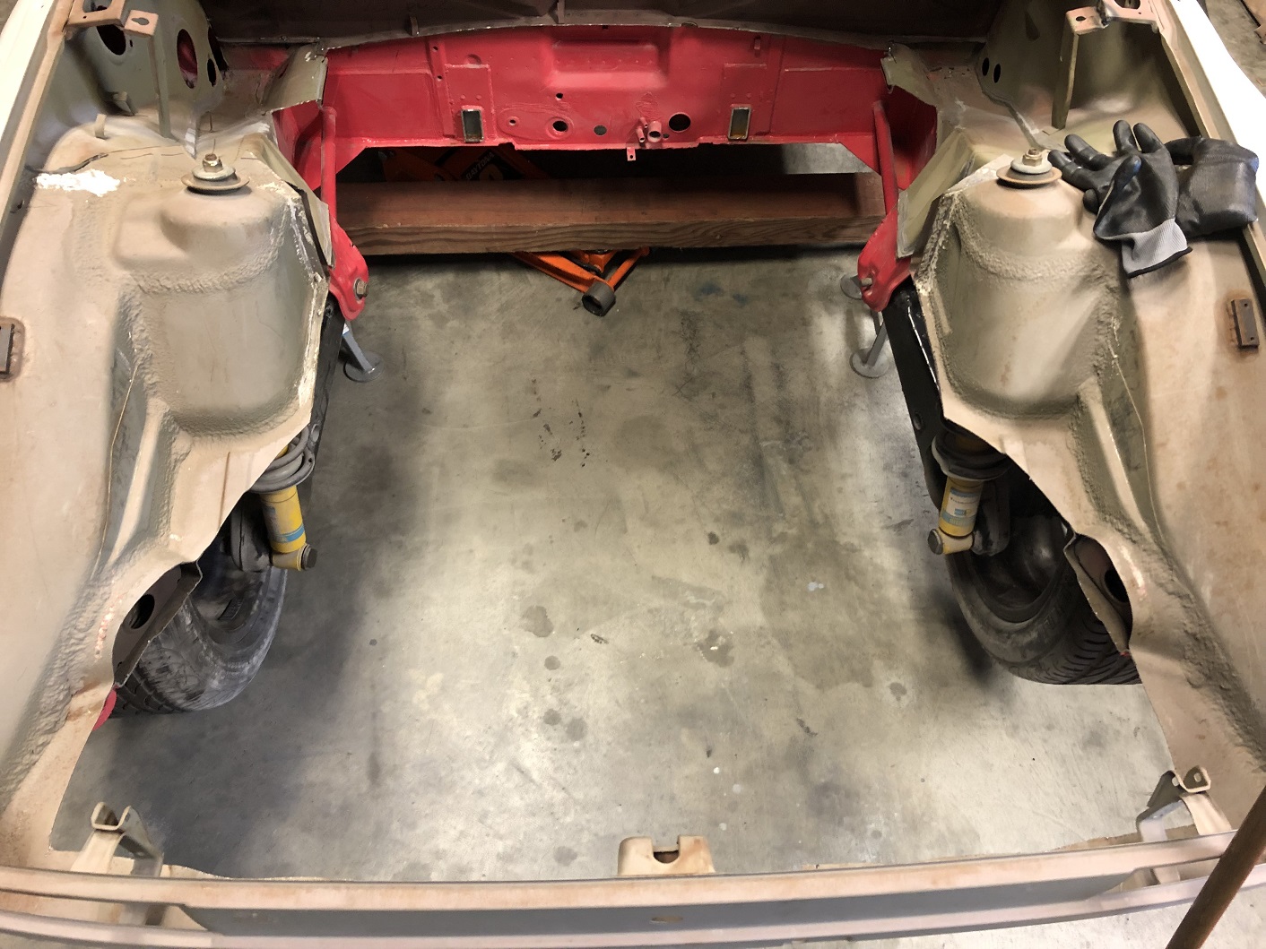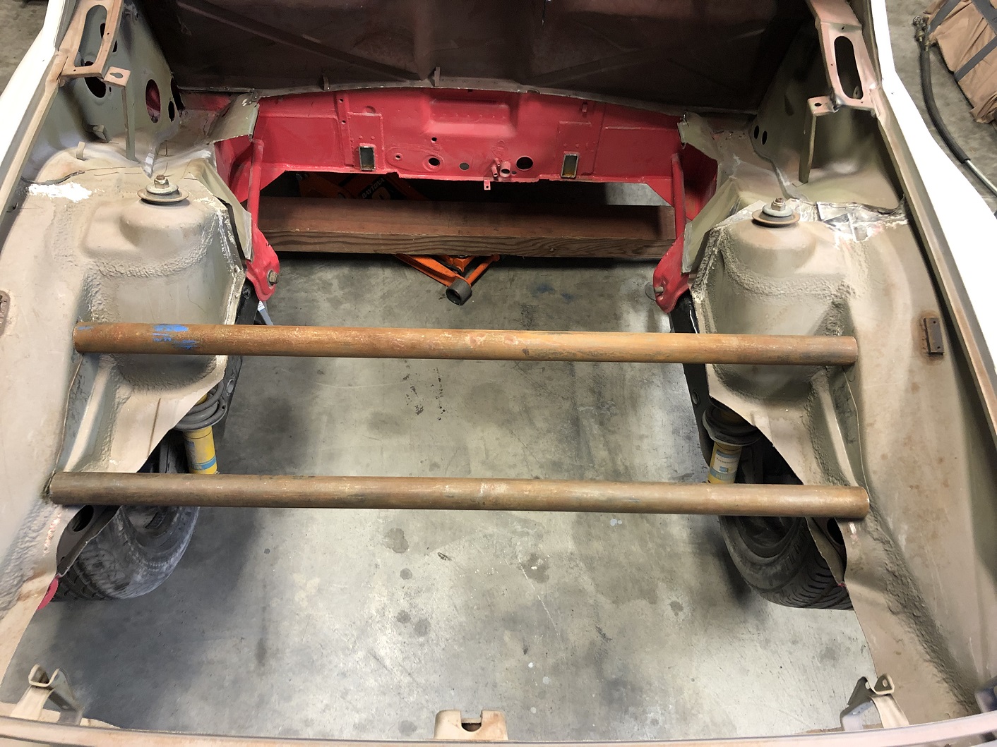 To optimize the Ferrari trans hanger mount, and with all the other stuff planned for this build, it started making more sense to lose the factory trunk and trans cross bar. So out it comes. Attached thumbnail(s) |