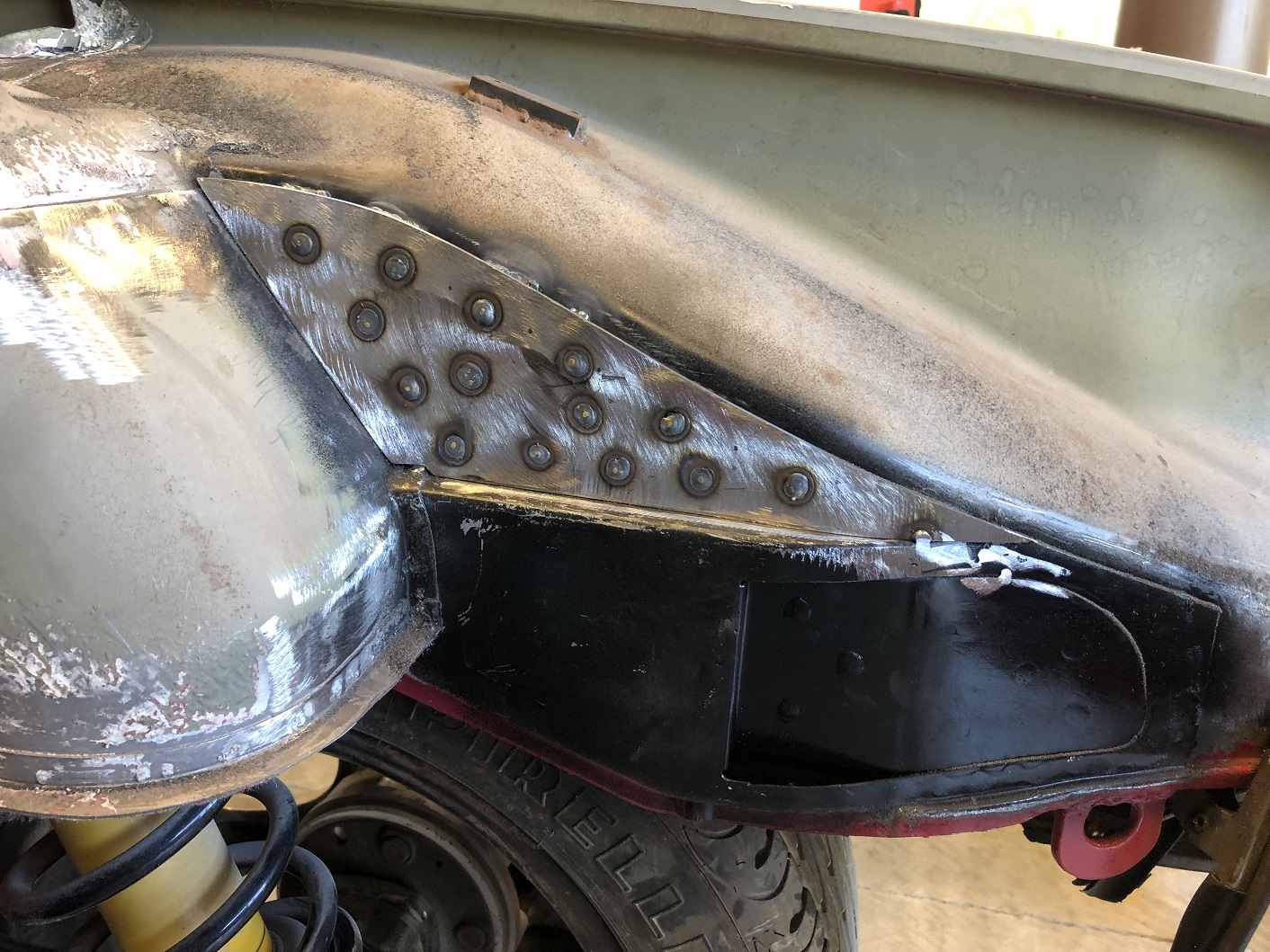 And to appease the fabrication gods so they ensure nothing fails, at the completion of any particular area, it's always a good idea to say, out loud, "OK! That's not going anywhere!" (IMG:style_emoticons/default/pray.gif) Note that all the plug welds will be sanded smooth and all edges will be seam sealed. Attached thumbnail(s) ![]() ![]() |