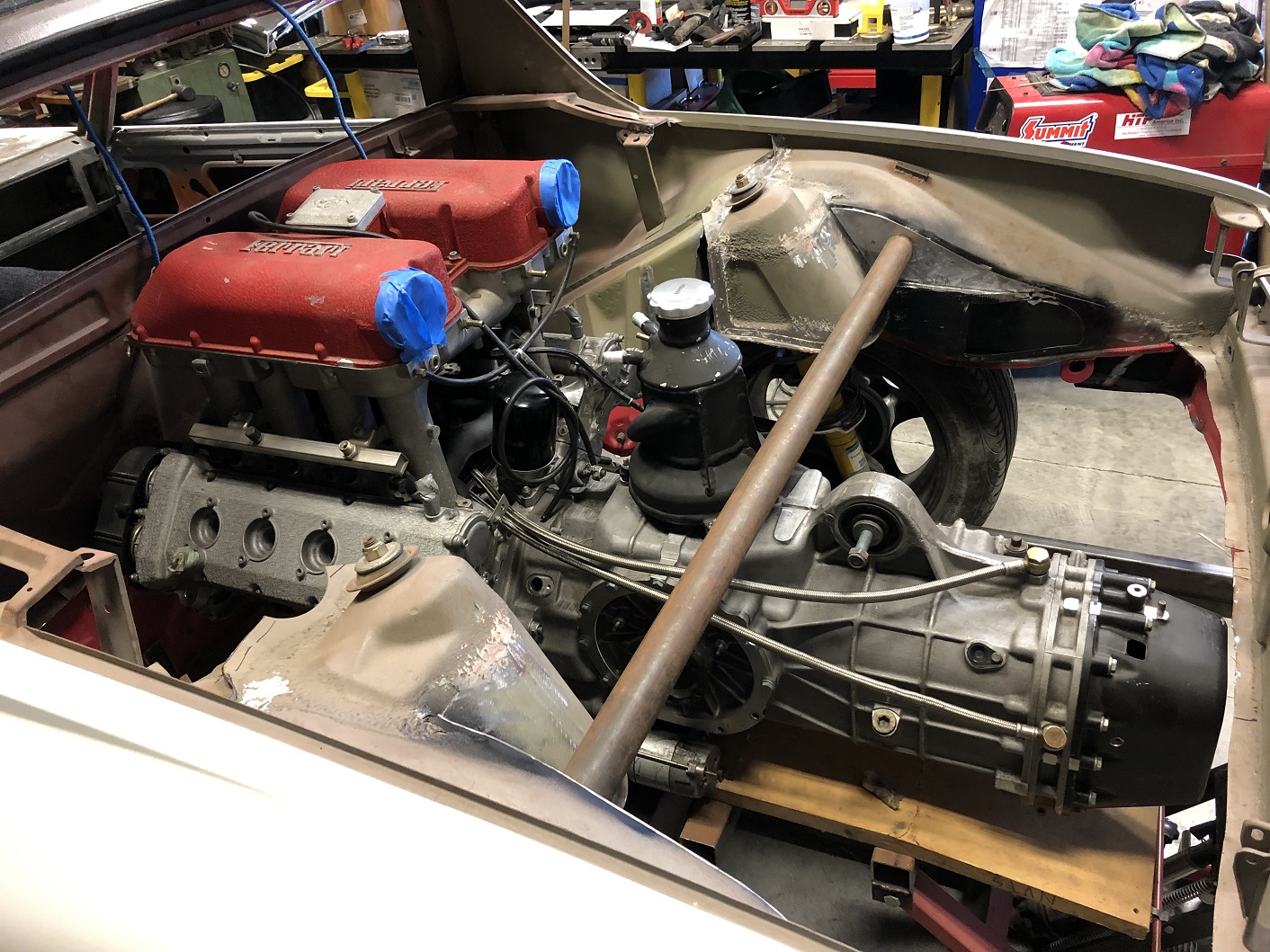 (IMG:http://www.914world.com/bbs2/uploads_offsite/live.staticflickr.com-431-1661723087.1.jpg) Random suggestion: you should count all the times you had to put the powertrain in place for mock ups. I’ve often wondered how many times should be expected for a custom build… probably close to 100 or more by the time it’s all done! I only did it a handful of times. Once the trunk was trimmed and the motor was is in it's final place I cut and welded the crossbar together in car. Helps that I kept the 914 trans and had room under the motor for a typical crossbar. I had the trans bolted in and a crossbar on top of the car with the motor suspended by straps -- plenty of room under to move around. HTH |