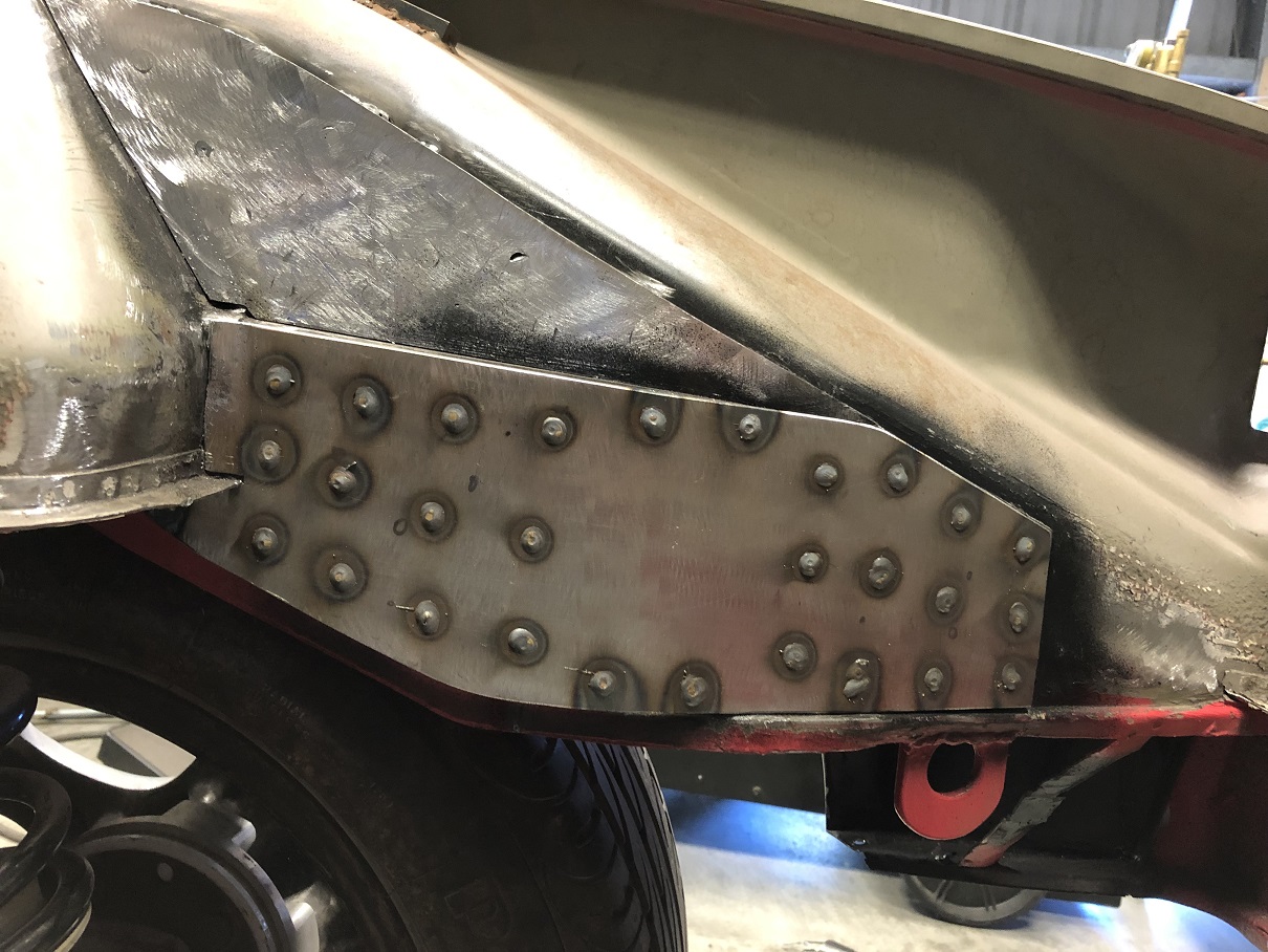 On a simpler note, the left side, lower rear spreader plate has been completed.