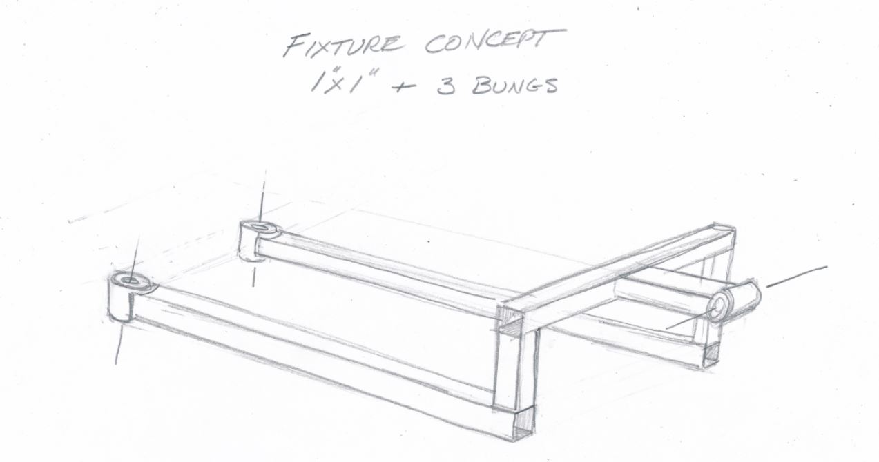 With a pretty good idea of the trans mount design, I started in on how to make it as simple as possible to locate the engine mount "landing pads". Rather than deal with taking the drive train in and out 100 times, leveling it each time, etc, etc, etc., the approach is going to be to make a fixture that replicates the locations of the transmission hanger tab and the engine mounts. The drawing shows the basic design. This will be made level to the engine so when it's level, I know the engine will be, too.