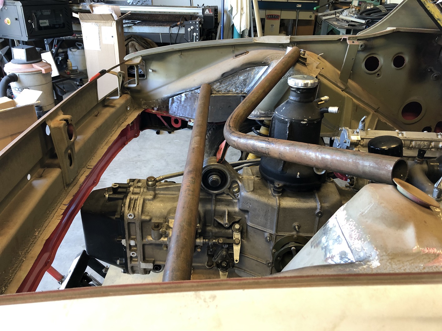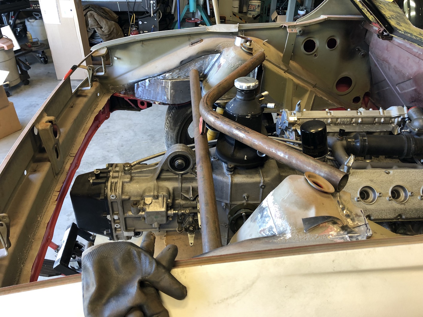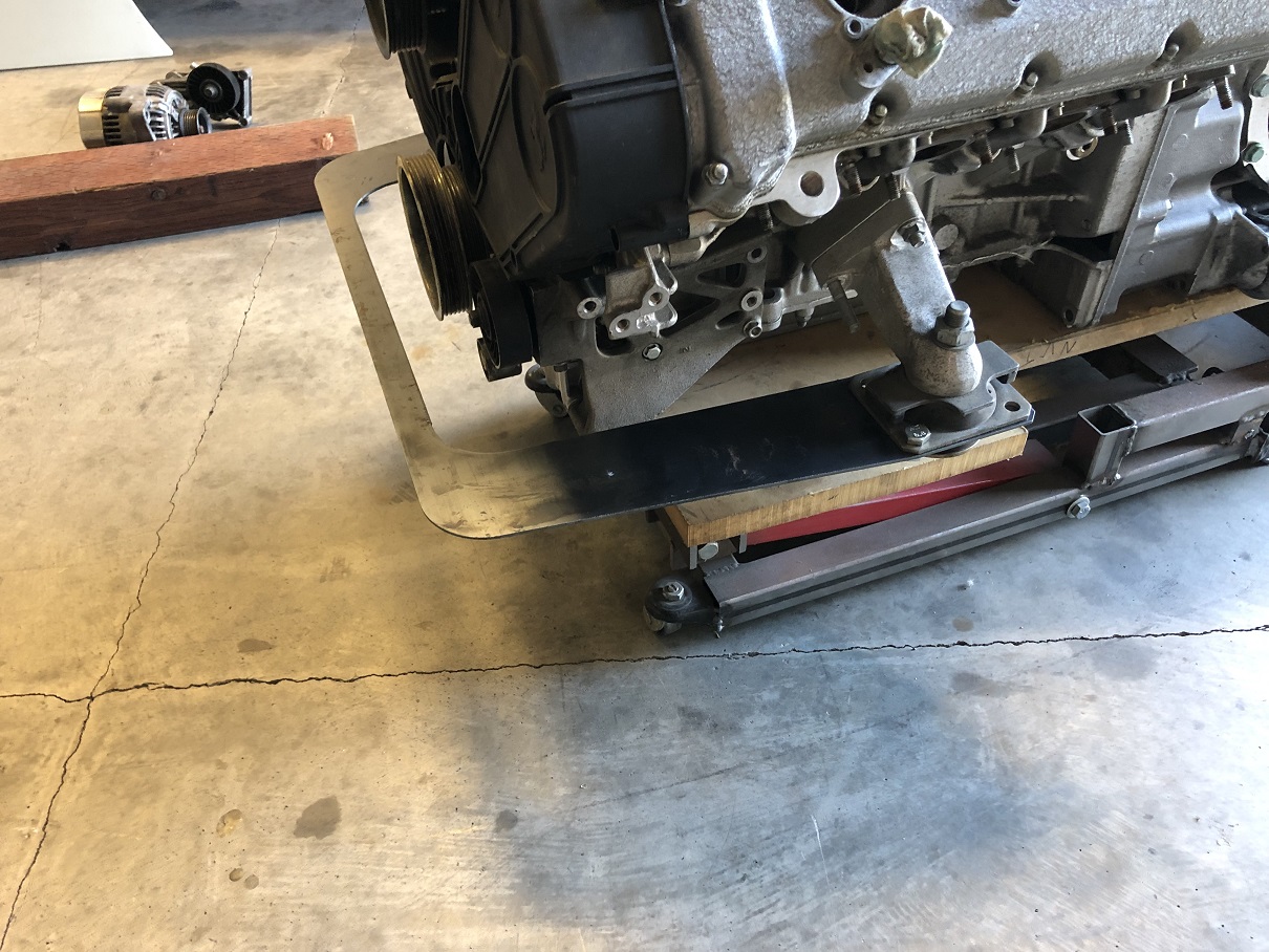 Then "all I have to do" is: - Level the car (fore/aft and side-to-side) - BIG IMPORTANT PART: locate the engine fore/aft and up/down and determine the transmission hanger bolt location. Not that hard really... - fab and install the transmission cross members and hanger brackets to support the above location. The trans tab is dead center in the car so getting things properly located is reasonably straight forward - bolt the fixture to the trans mount and swing it up until it's level I'll then have the locations in space that represent where the Ferrari mounts need to be. See how easy? (IMG:style_emoticons/default/laugh.gif) Attached thumbnail(s) |