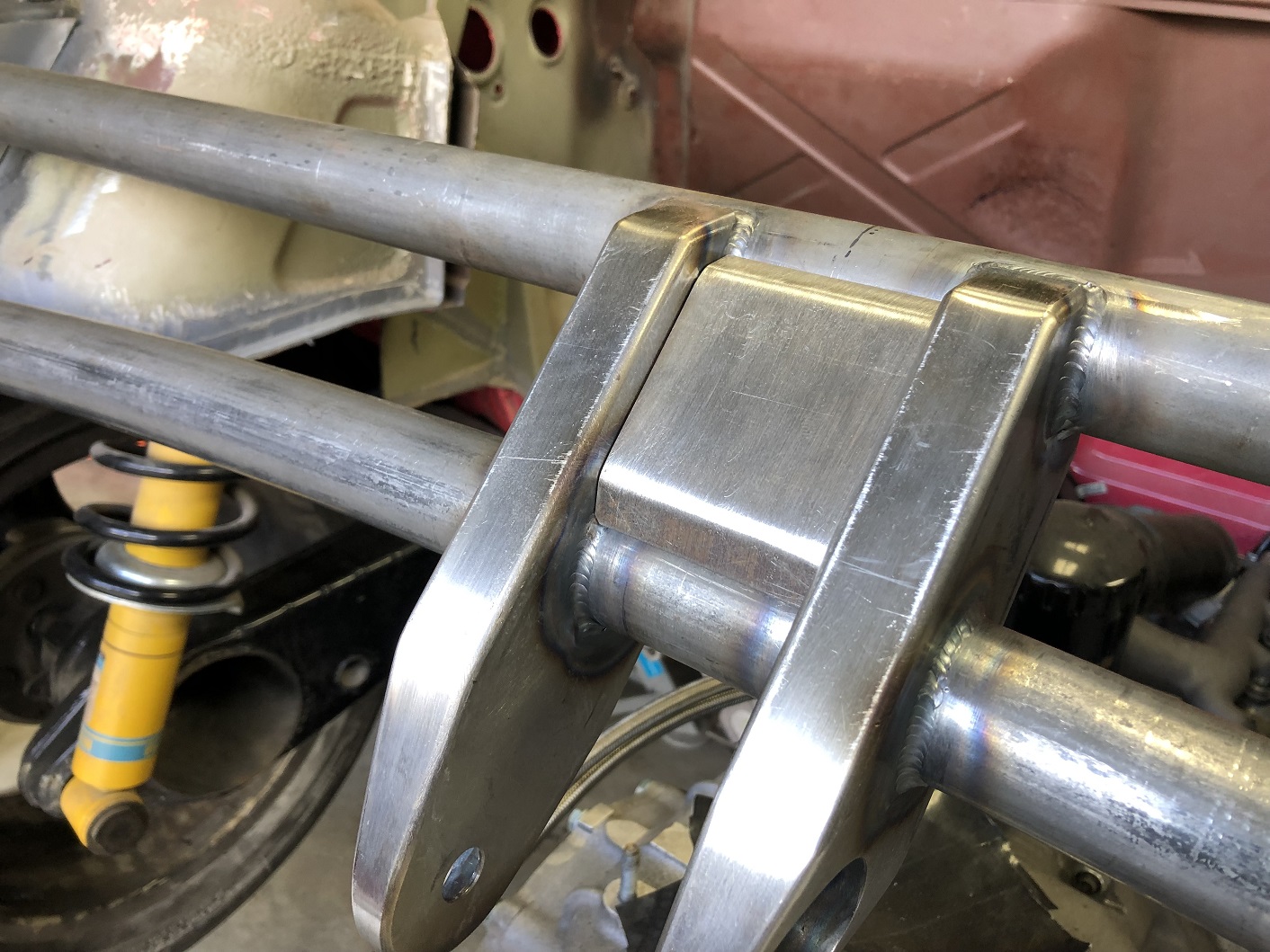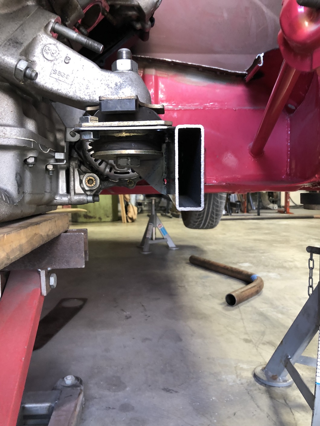 So there it is. After a ton of head scratching and numerous design changes, the car has its first "Ferrari specific" mod all but completed. There are a couple inches of welding left to do on the underside of the cross bars at the chassis but things are plenty strong to safely work on the car. Major milestone, for sure. Phd. in Fabrication and Welding Stupendous. |