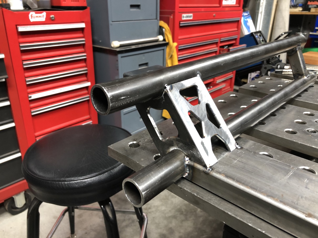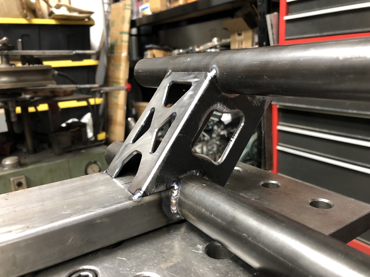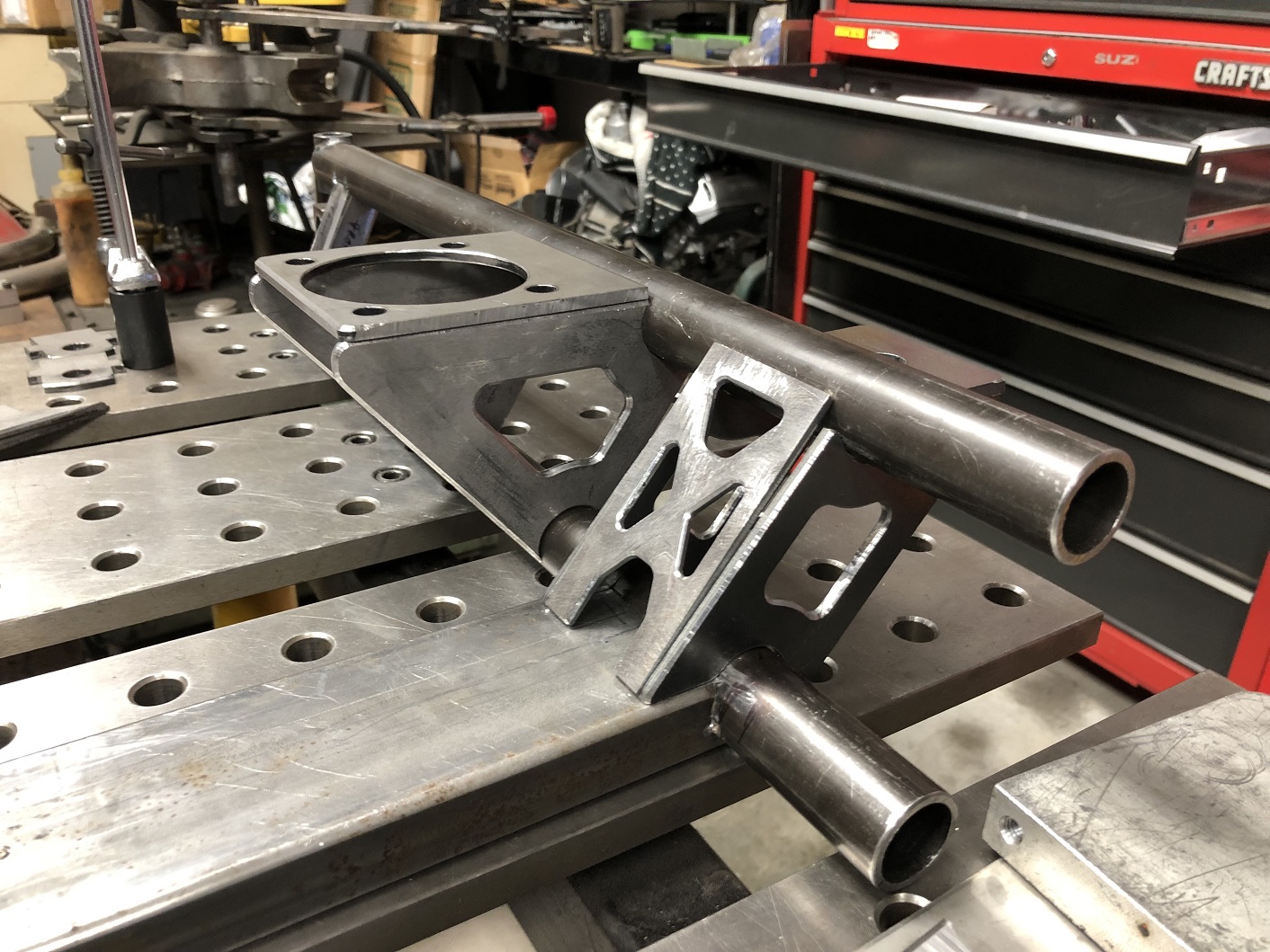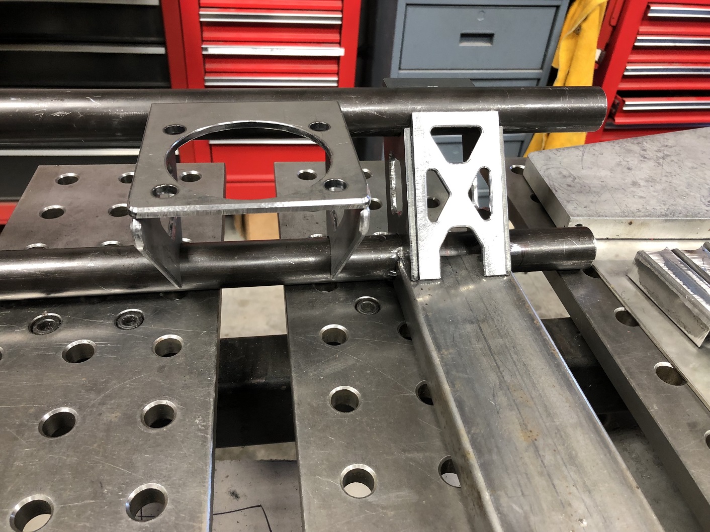 Today was getting the cradle's rear mount components all fit and tacked in. It's far enough along as an assembly that it can now be used to position the fire wall tabs. That's on the docket for tomorrow.