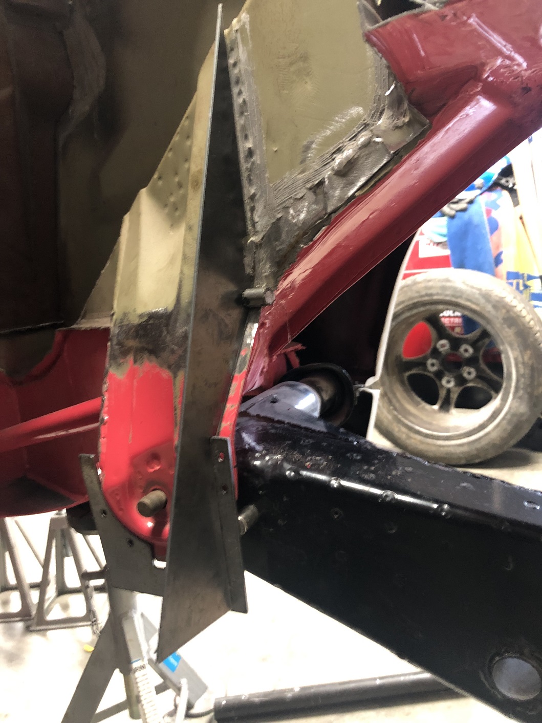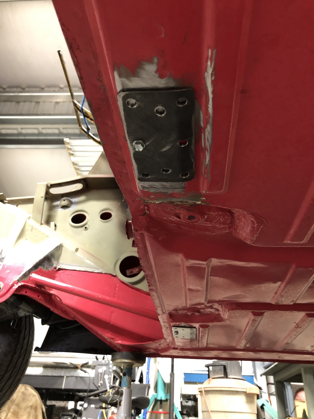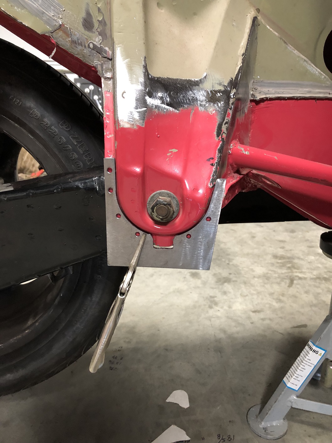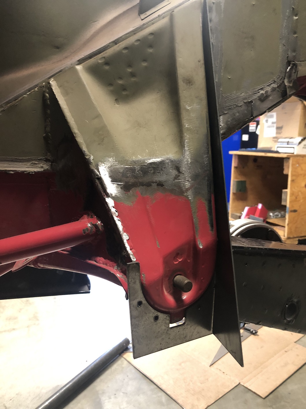 Last night, around 2AM, I wake up thinking: "Wait a second, if the firewall tabs wrap under the floor, I need a spreader plate under there! Bad idea to simply weld 7ga plate to a single layer of 18 ga!" A quick measure and cut (and a bit of plug welding yet to go) and that's problem solved. Critical thinkers will also note this changed the dimensions of the center and inner fire wall tabs. Nothing a bit of band saw and sanding couldn't quickly address. Attached thumbnail(s) |