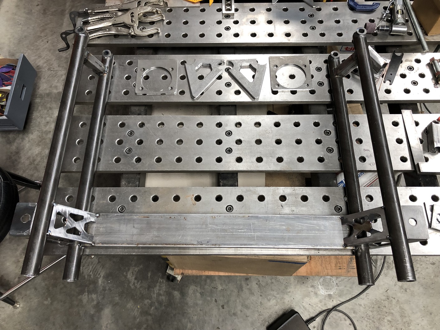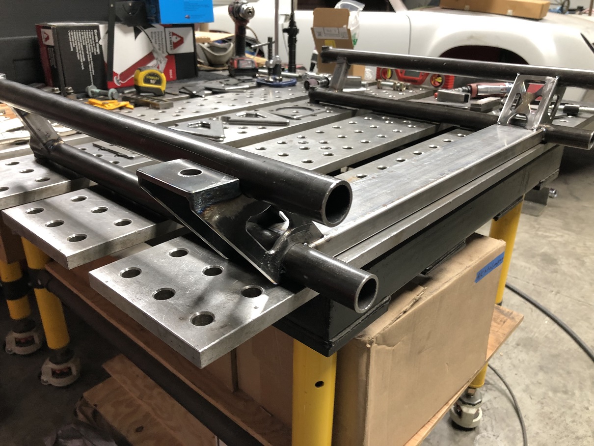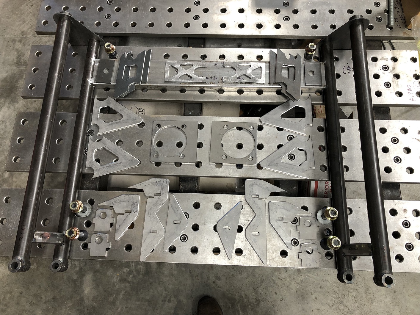 So, after all that, here's a Ferrari 360 engine cradle kit. Some welding still to go, but everything is essentially ready, including all edges routered and final hardware.