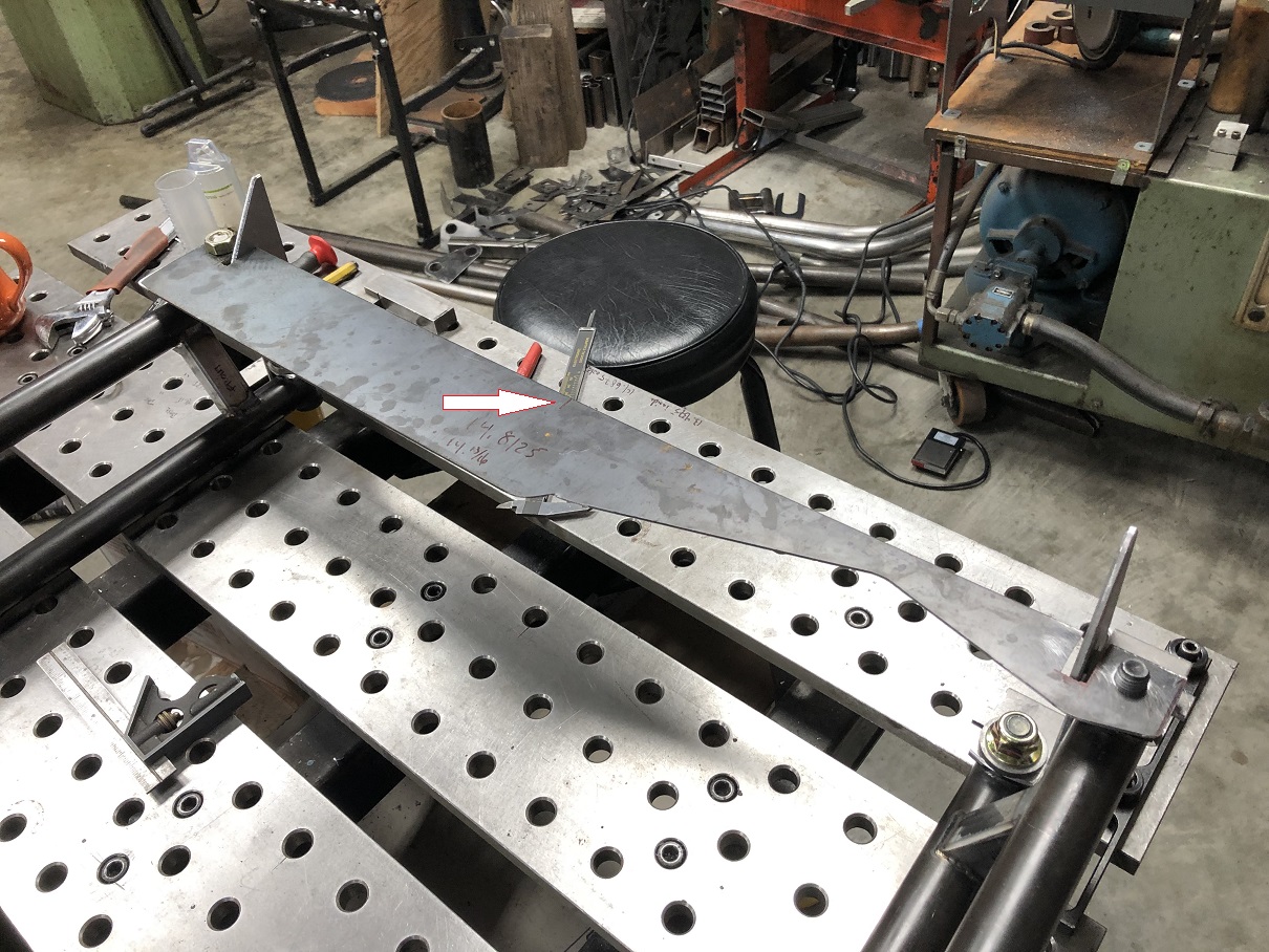 Getting ready to final weld the fire wall tabs. To make it simple to get everything centered, I took a piece of scrap and made up a "centering plate". The center is marked in Sharpie / pointed out with the arrow. This will align with a center mark on the fire wall and set the left/right location. What about up/down, you ask? The fire wall tabs were designed with with a notch that fits the lip on the lower edge of where the fire wall meets the floor. Those locations were determined by eyeballing where I wanted the bottom of the drive train to end up in relation to that lip. Attached thumbnail(s) |