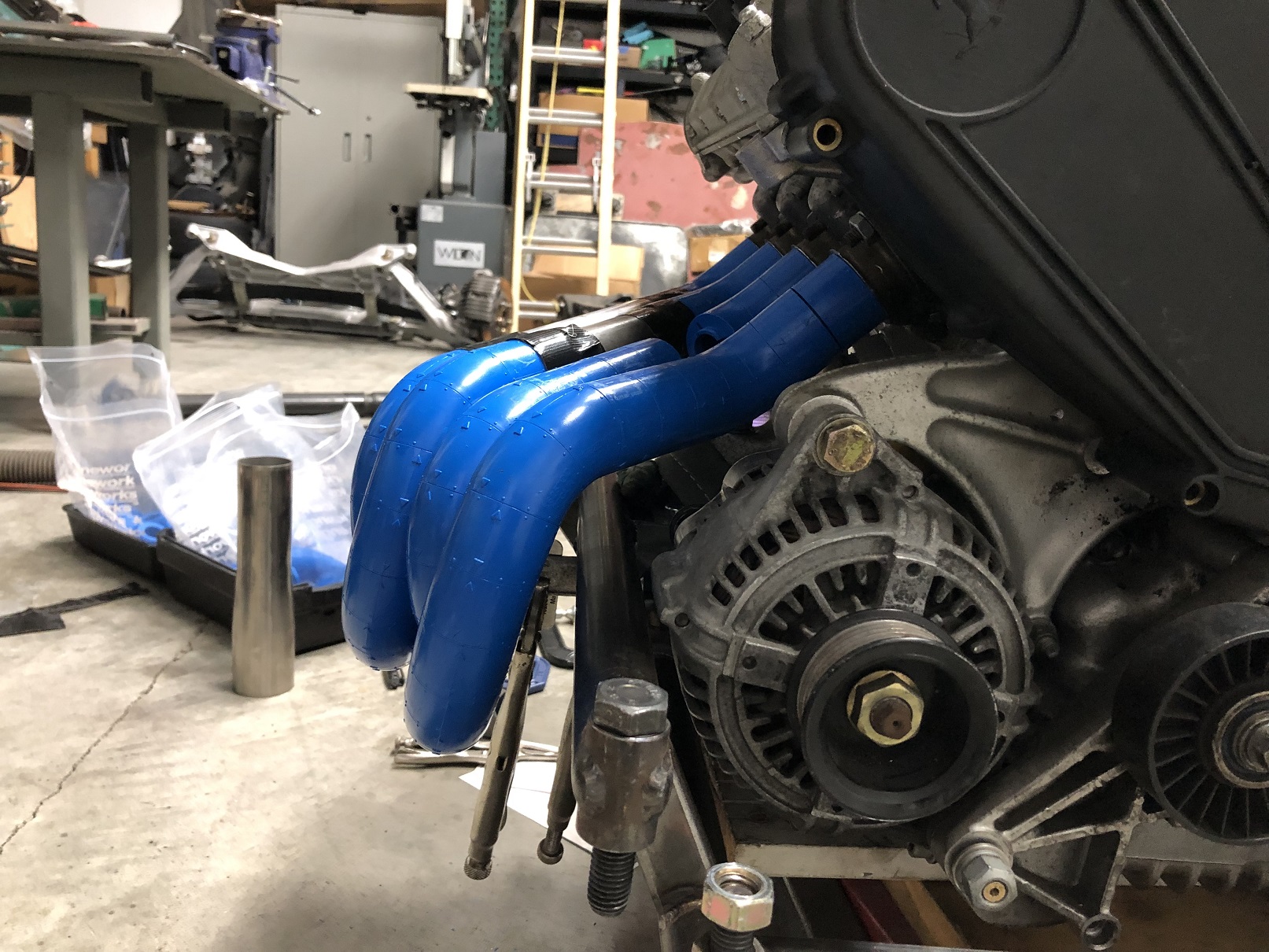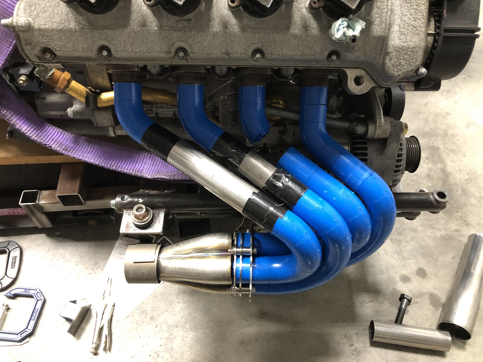 Equal length at 21". I'll add the 2.25" to 2.5" transition right at the collector, take the 2.5" past the end of the engine cradle and add the O2 bung, then a 2.5" V-band connector. Really happy with the ICEngineworks modeling kit. There is NO WAY I could have gotten this without it. And don't overlook the ability to tryout a few different options before committing! Too bad they don't make a 914 hood vent or firewall modelling kit. (IMG:style_emoticons/default/av-943.gif) Attached thumbnail(s) |