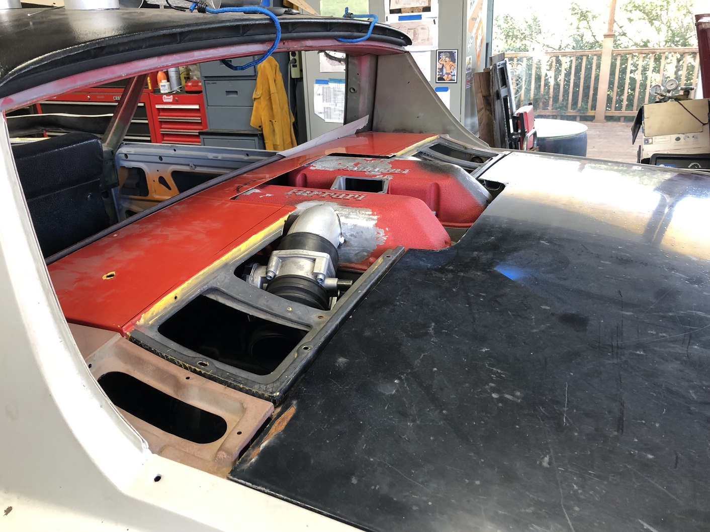 Have you considered cutting the trunk a little further and making a piece to connect the rear halves of the engine cover (following the lines of the plenums). I’m not sure if you have room for that and still clear the targa top though? It would put stability back into the engine lid and would look pretty cool.