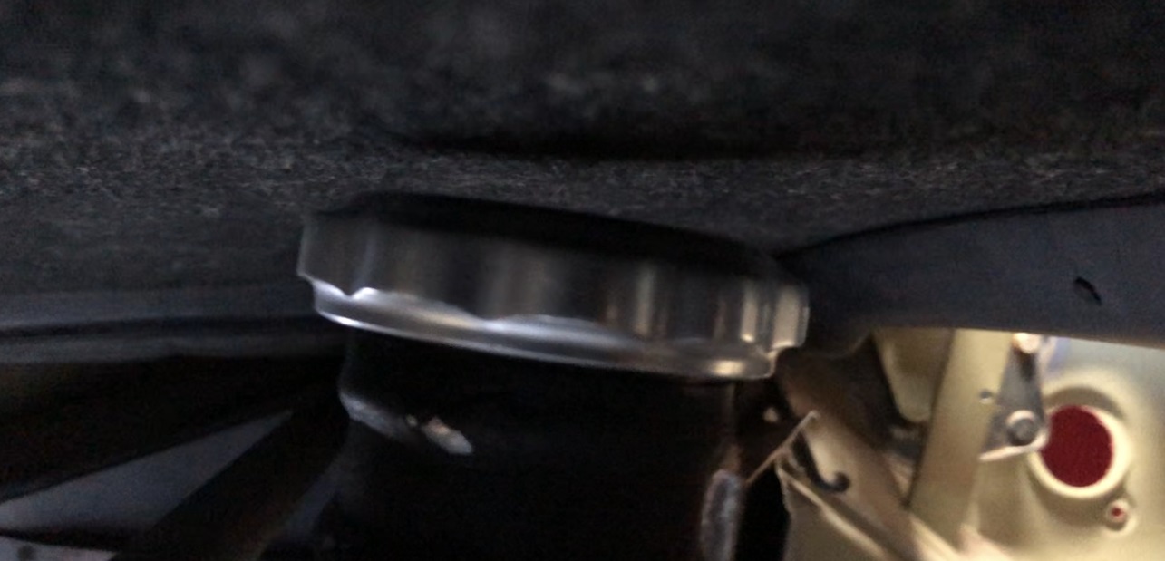 And with everything in position, I have this much clearance from the air/oil separater to a stowed targa top. Have you thought about the fact that with no trunk floor in the way, the headliner is going to get absolutely filthy with road grime every time you drive it with the top off? If it were me, I would cut about 10mm out of the neck to provide clearance so it doesn't rub the headliner. |