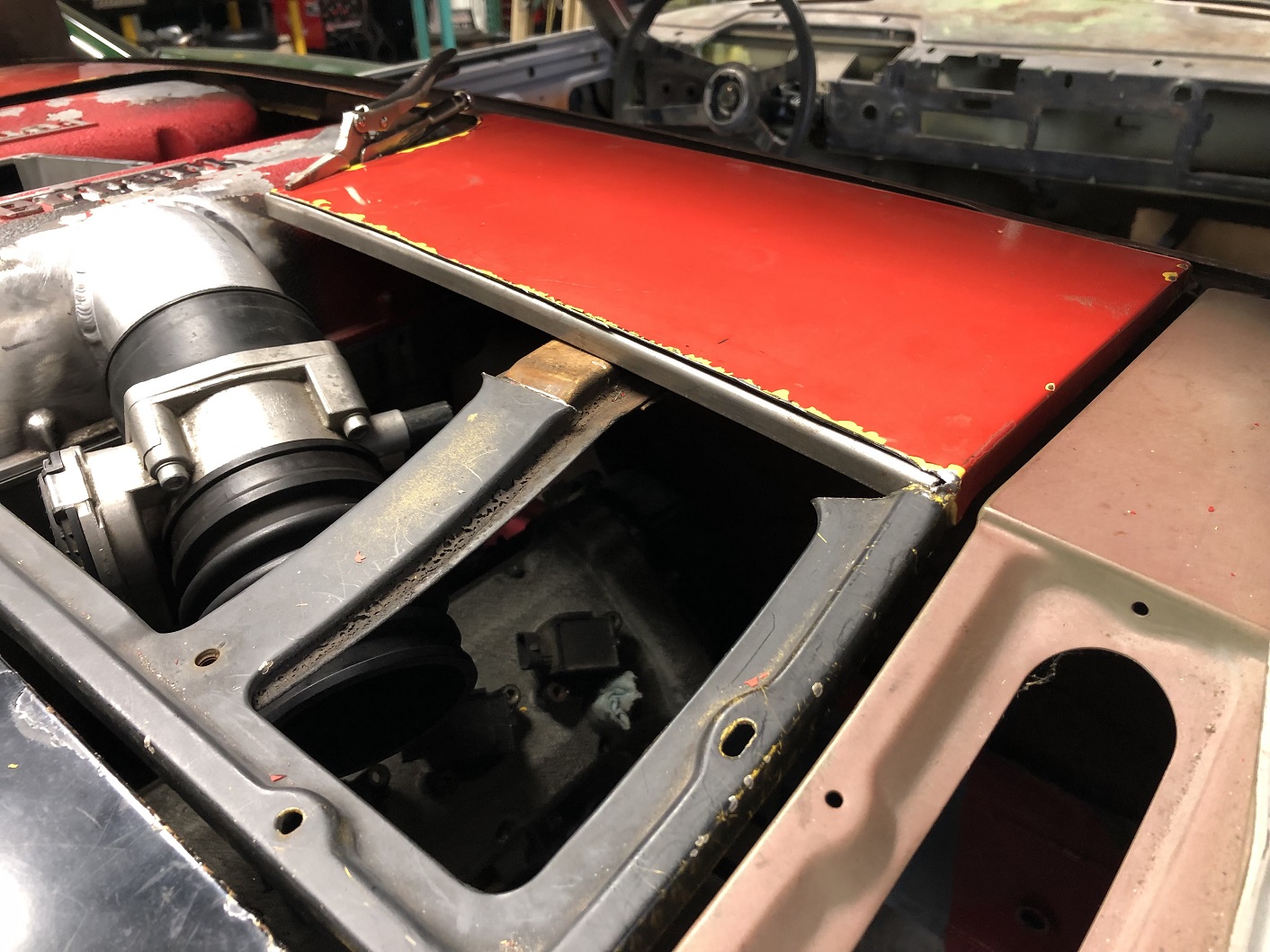 The driver side plenum partch was mostly in place and we couldn't resist seeing what it was going to look like once it's ready for new wrinkle finish. That top section got final welding, some file work then sanded. Yep, that'll work! Attached thumbnail(s) |